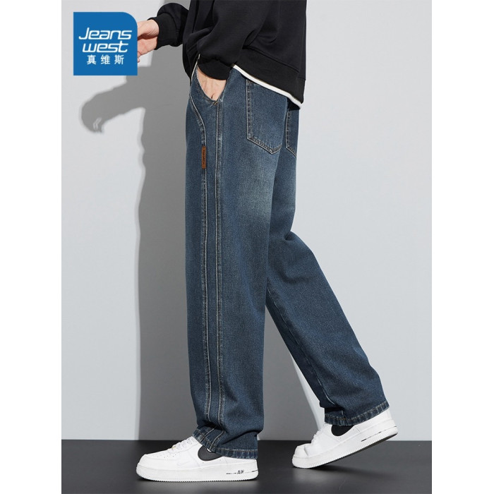 真維斯加絨牛仔褲男款美式高街2025秋冬新款潮牌直筒寬松新塘褲子