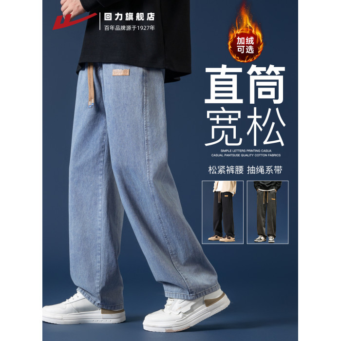 迴力牛仔褲子男款秋冬2025新款美式復古直筒寬松男士休閒加絨長褲