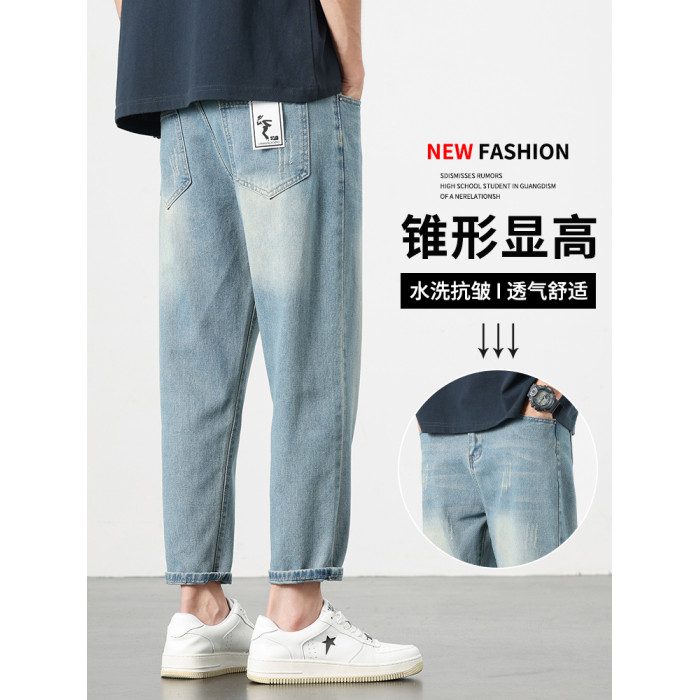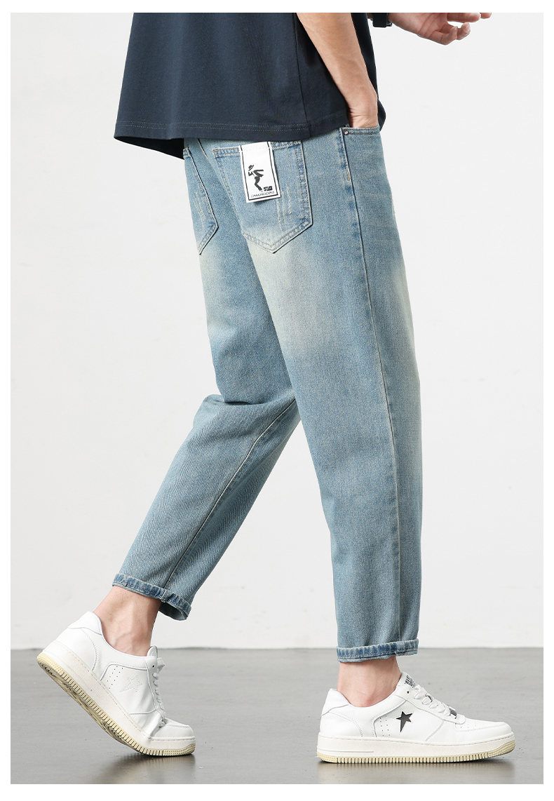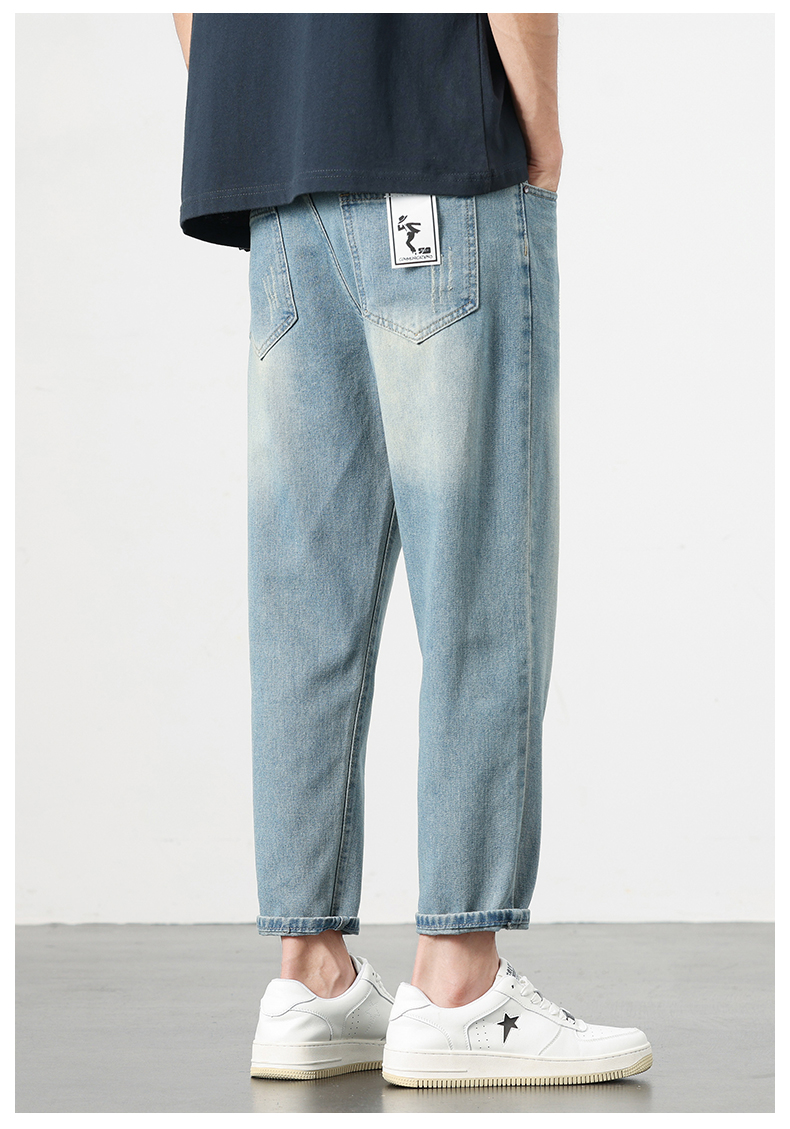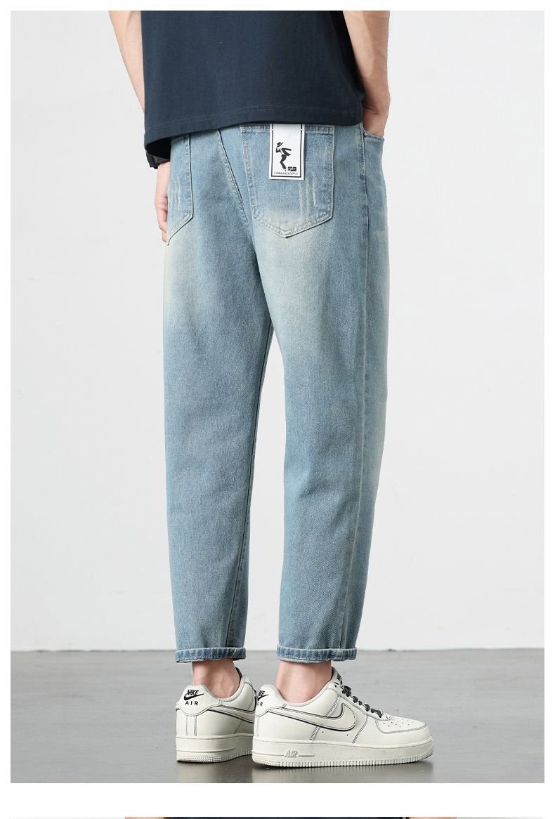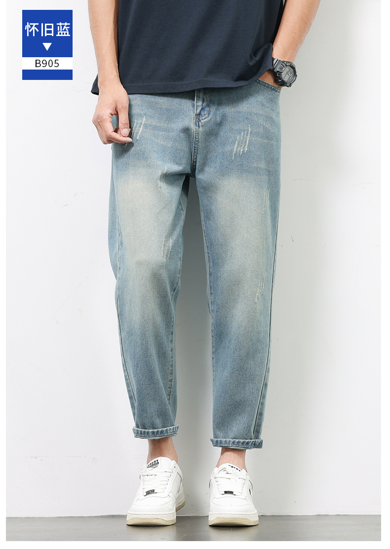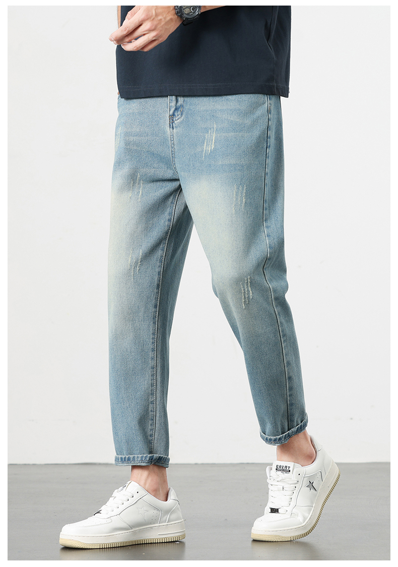 2025春秋季美式高街牛仔褲男款新款水洗寬松直筒休閒破洞九分褲子