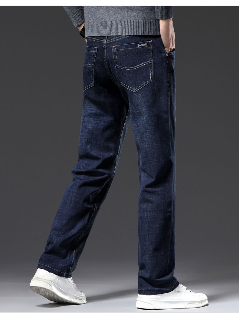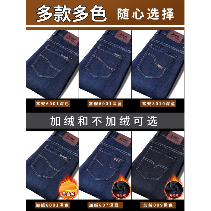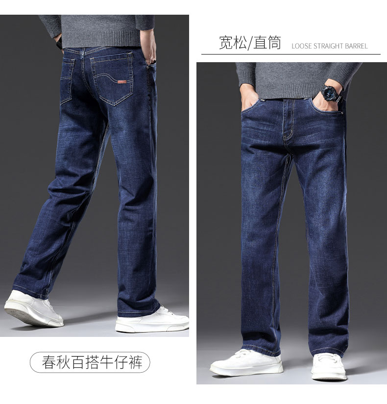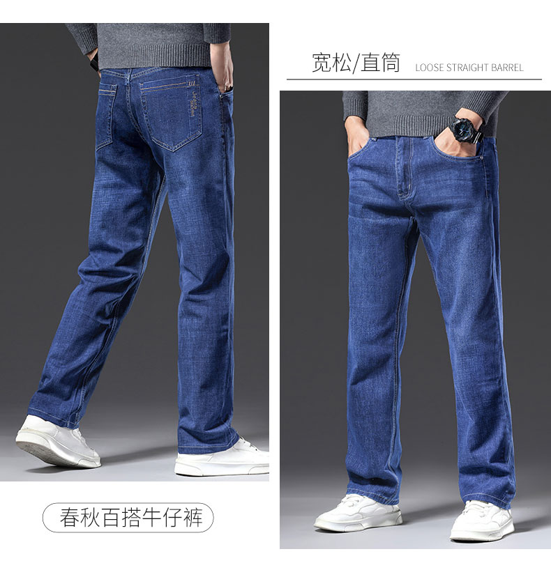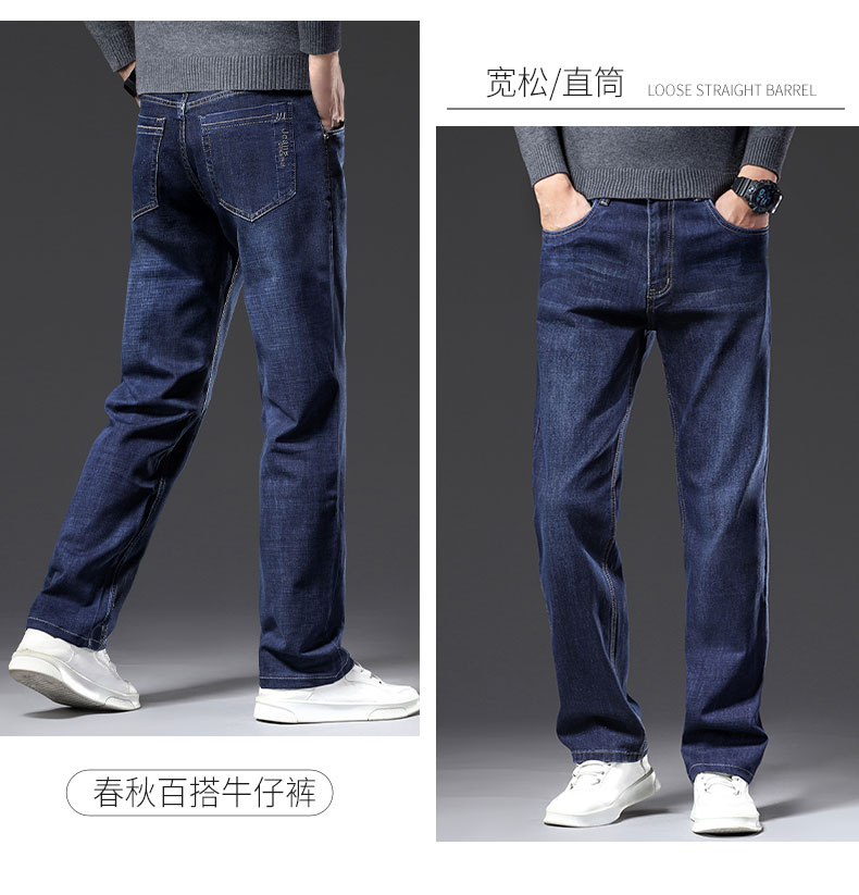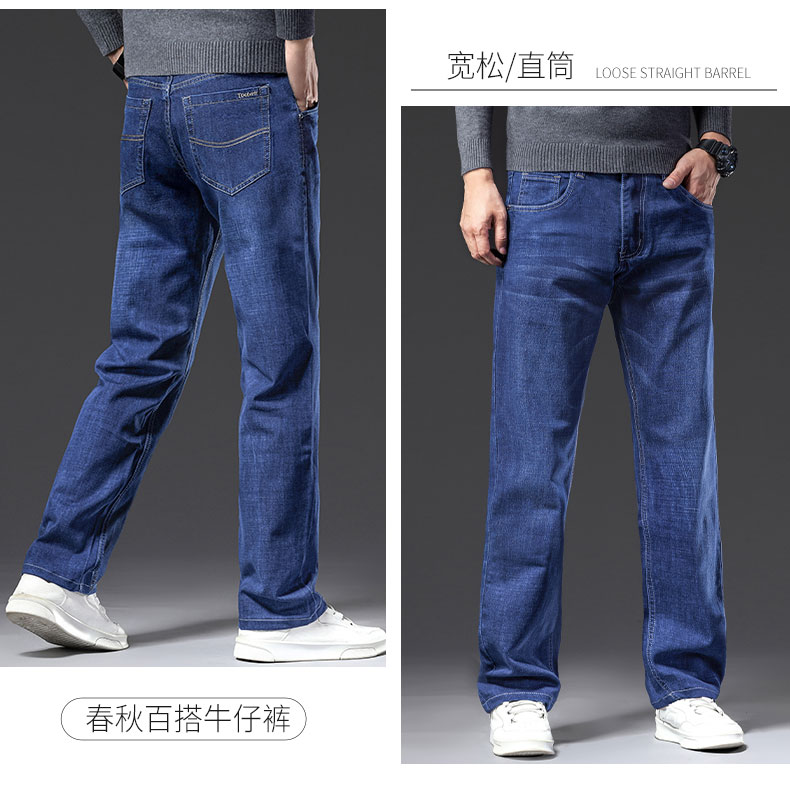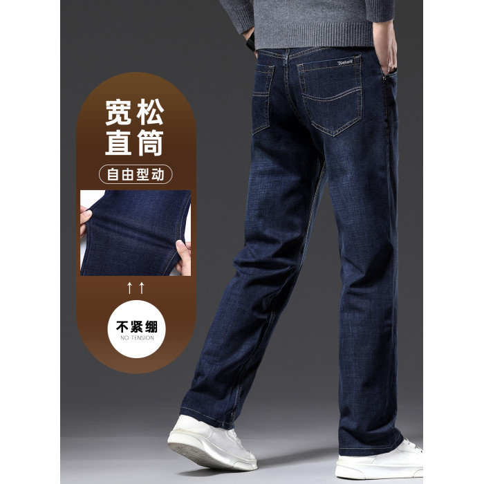春秋季牛仔褲男2025新款彈力休閒男士長褲子寬松直筒濶腿加絨男褲
