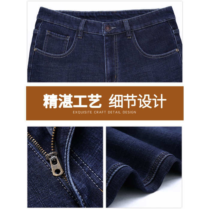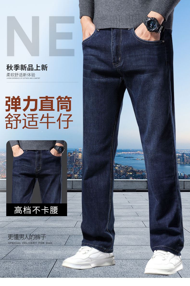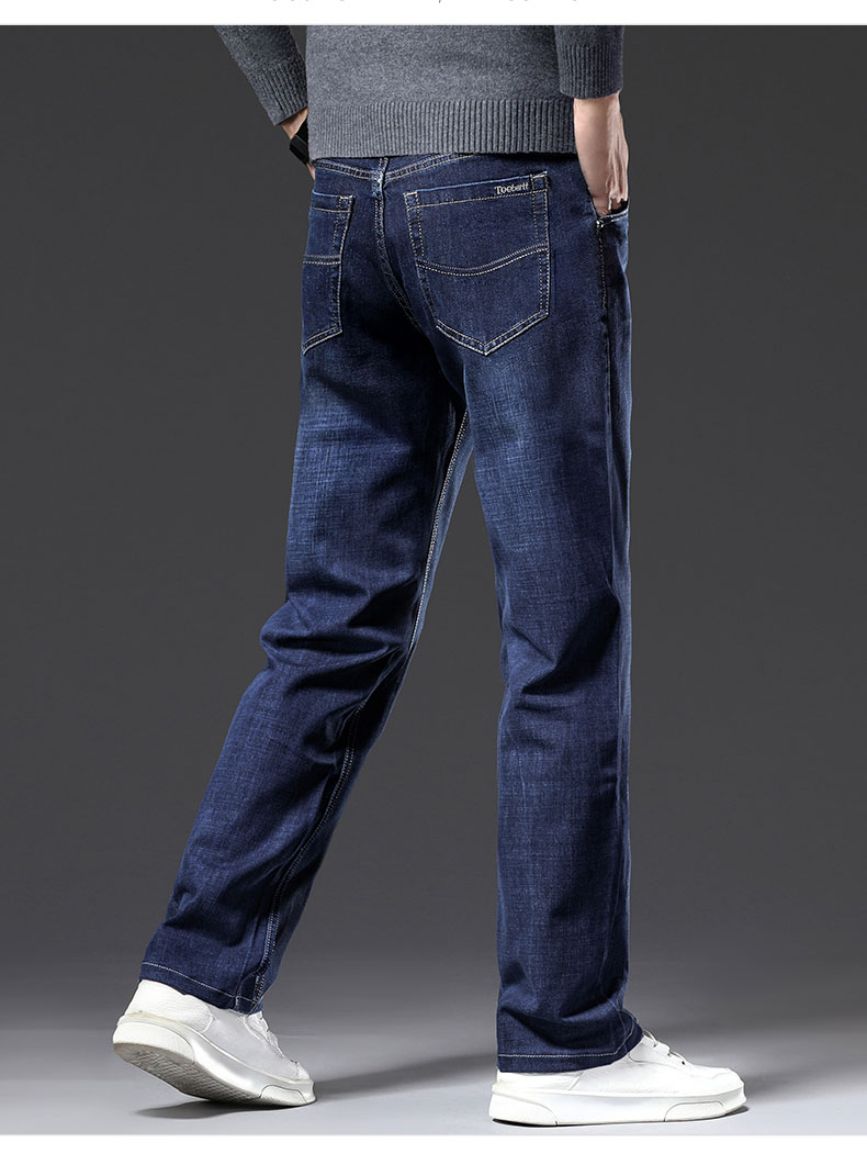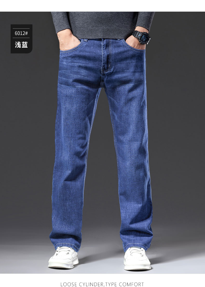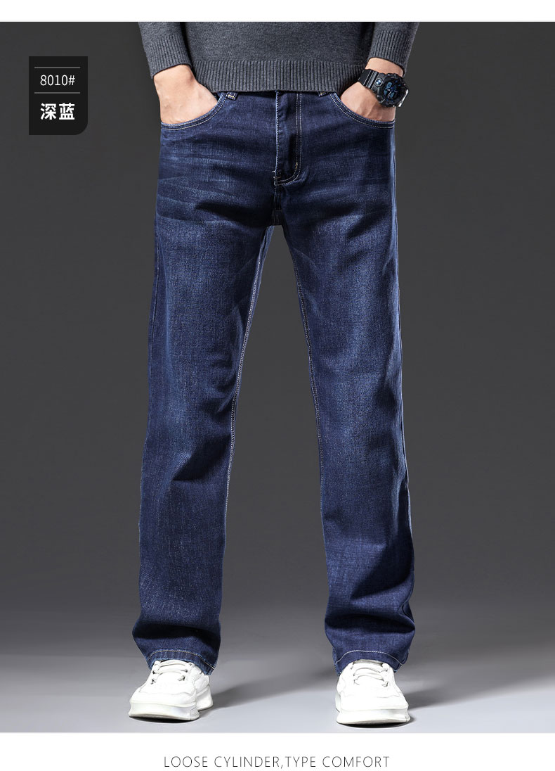 春秋季牛仔褲男2025新款彈力休閒男士長褲子寬松直筒濶腿加絨男褲