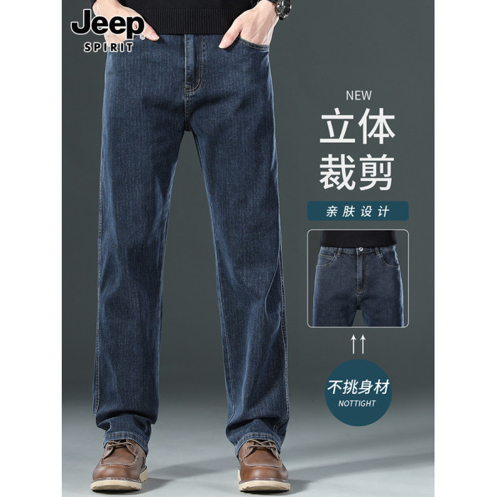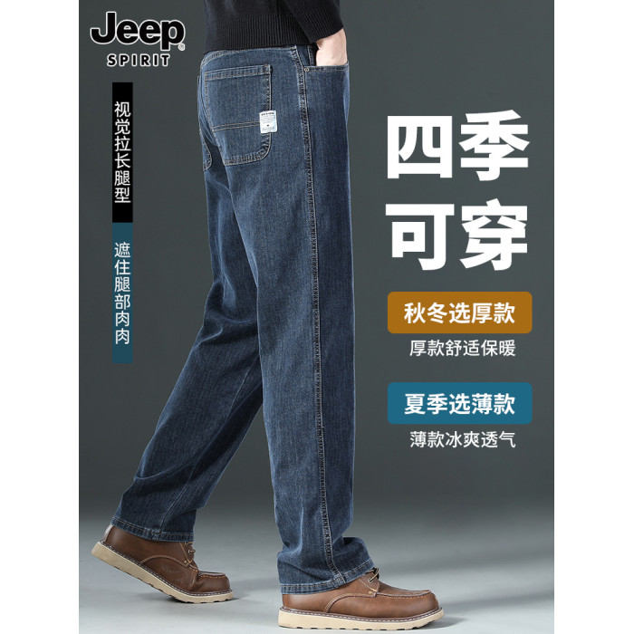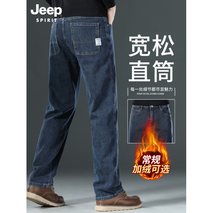 吉普官方直筒男士牛仔褲男款新款褲子爸爸加厚男褲秋冬季加絨男裝