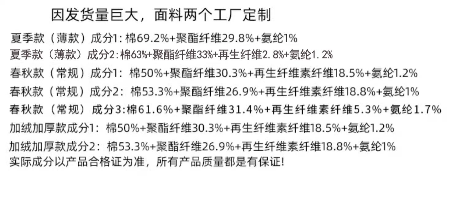 | 材質成分 | 棉69.2% 聚酯纖維29.8% 聚氨酯彈性纖維(氨綸)1.0% |