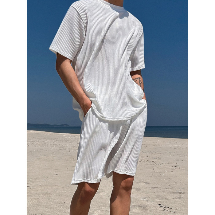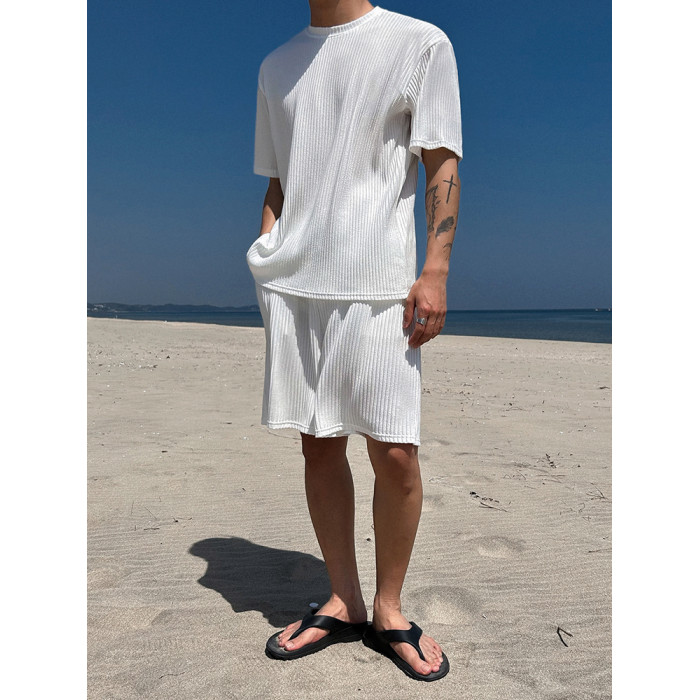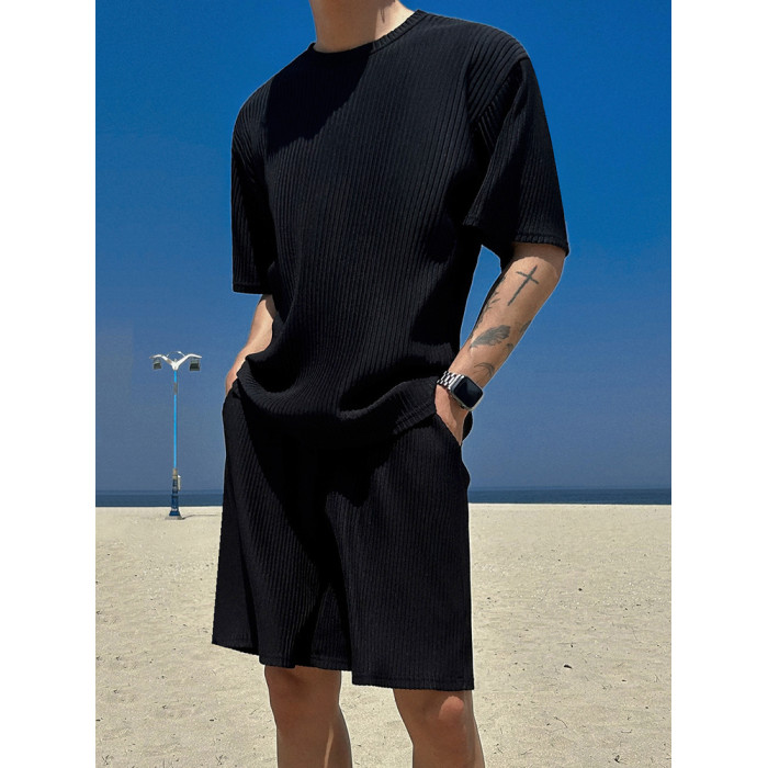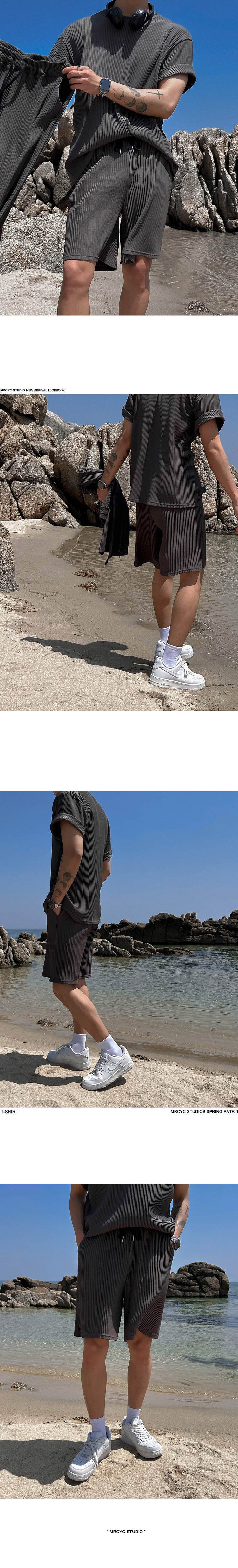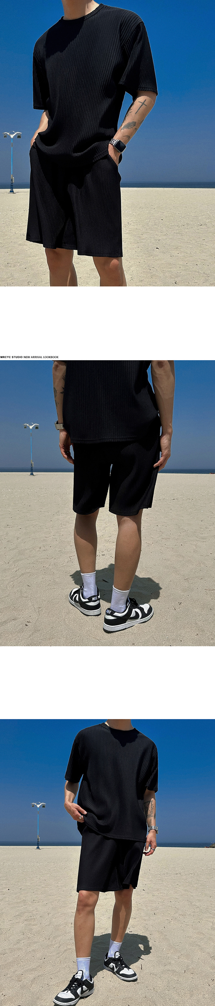 MRCYC夏季慵懶風短袖短褲長褲三件套韓系高級感T恤垂墜感休閒褲