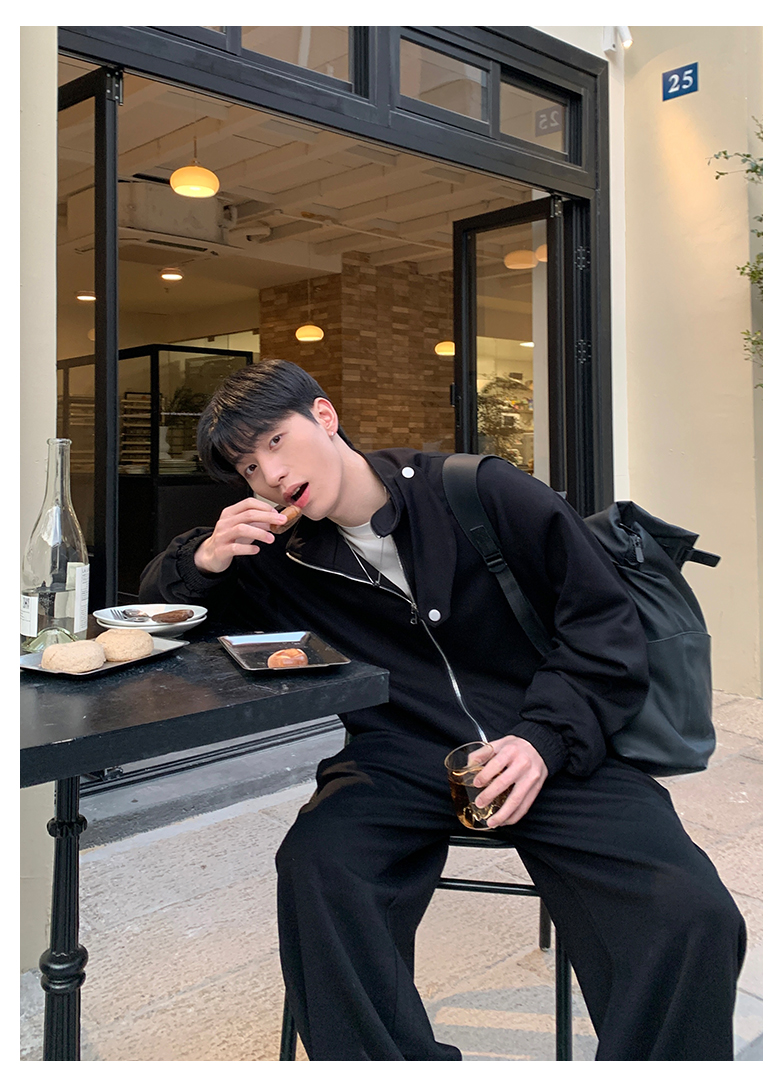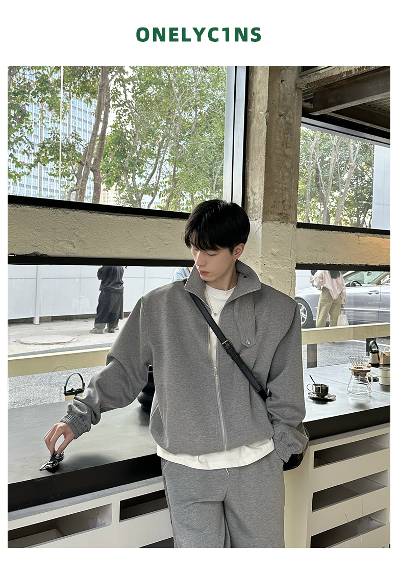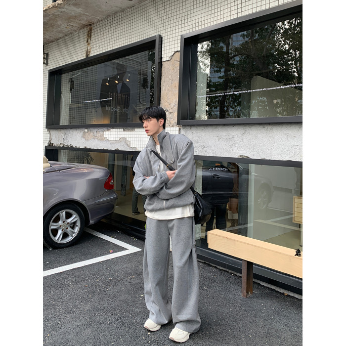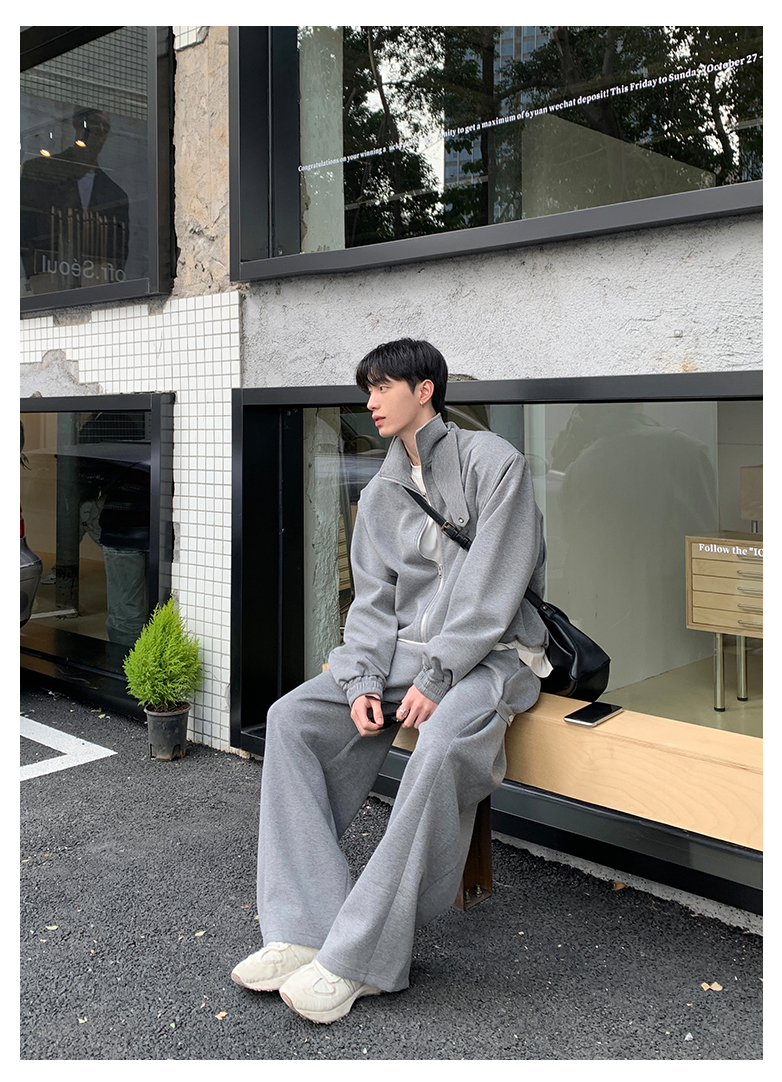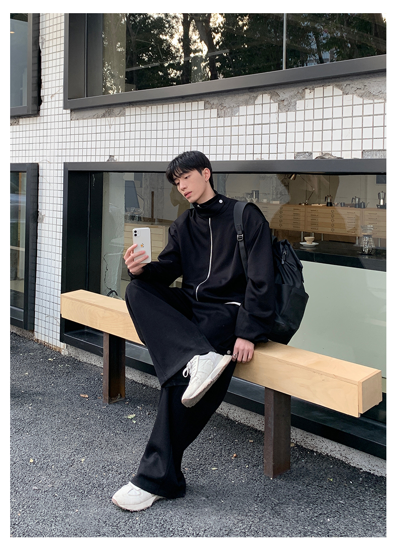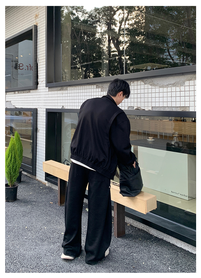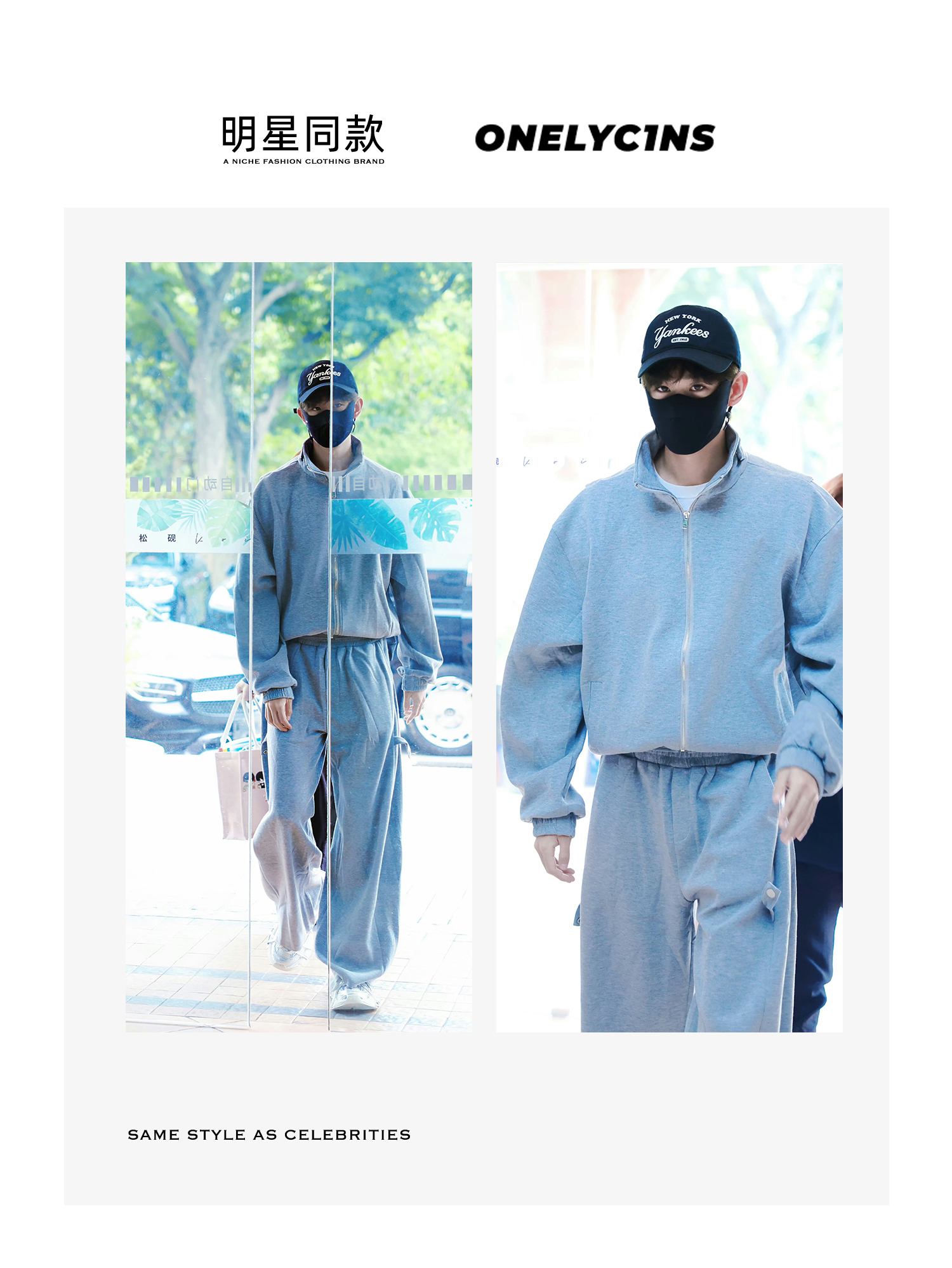 【明星同款】ONELYC1NS立領純色休閒運動套裝男外套濶腿拖地長褲