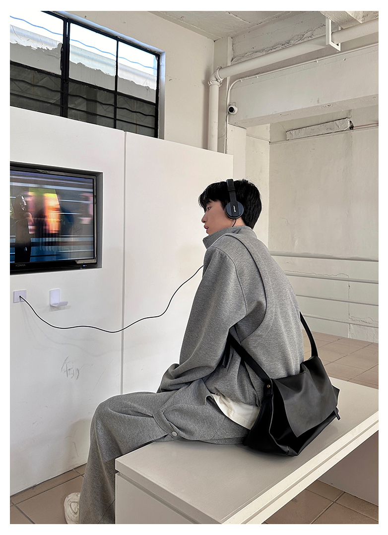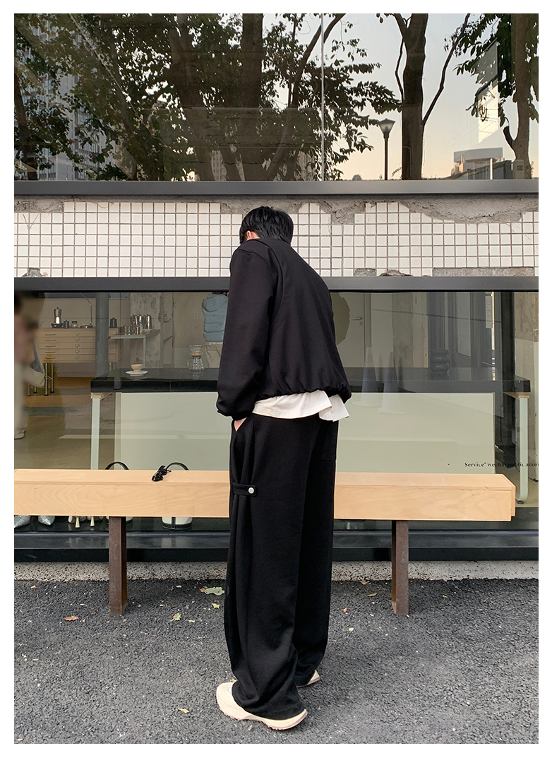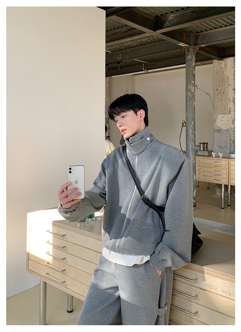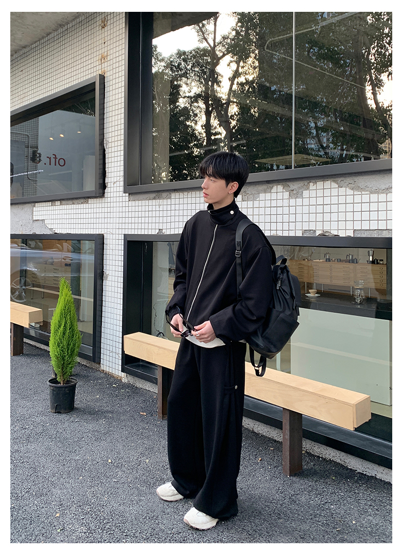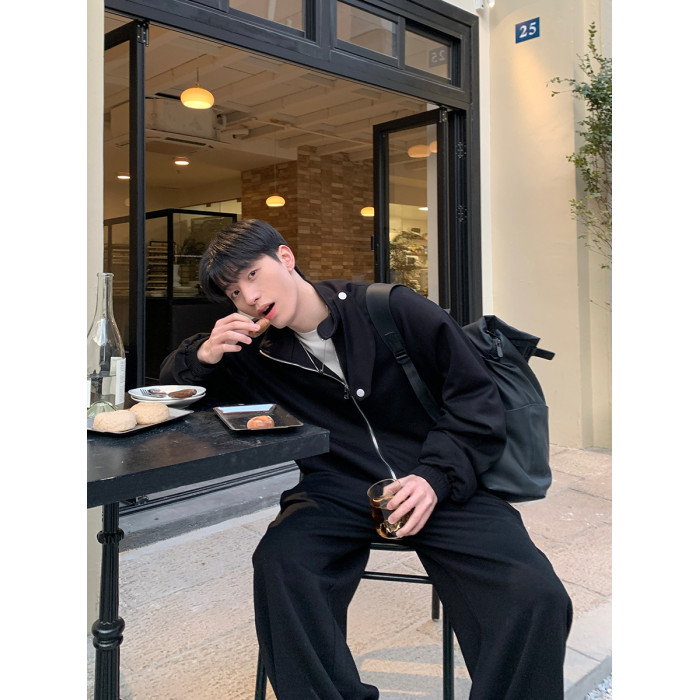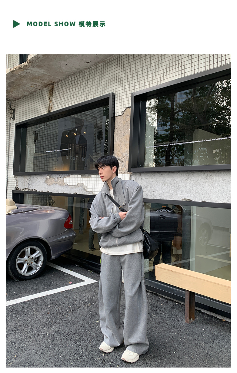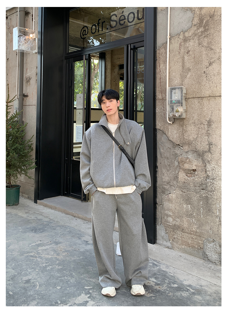 【明星同款】ONELYC1NS立領純色休閒運動套裝男外套濶腿拖地長褲