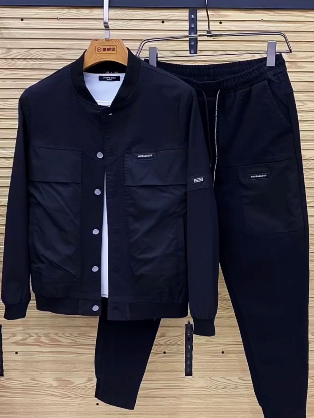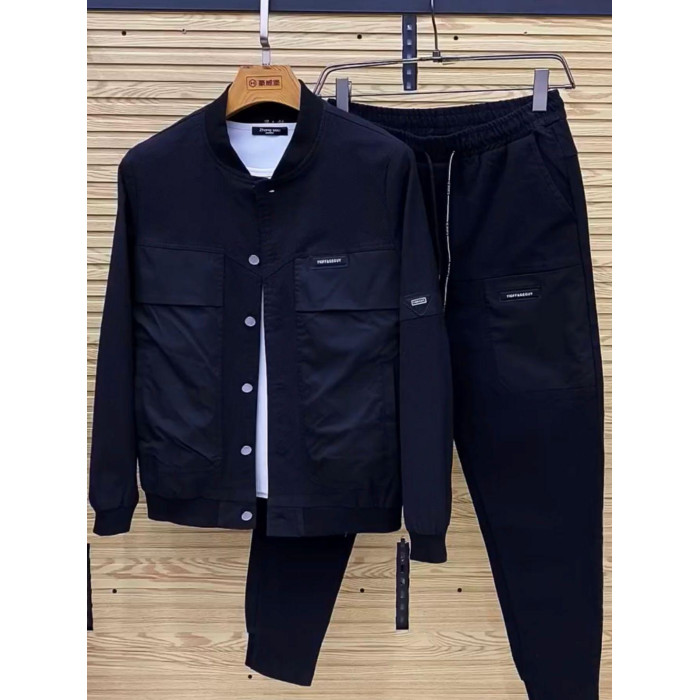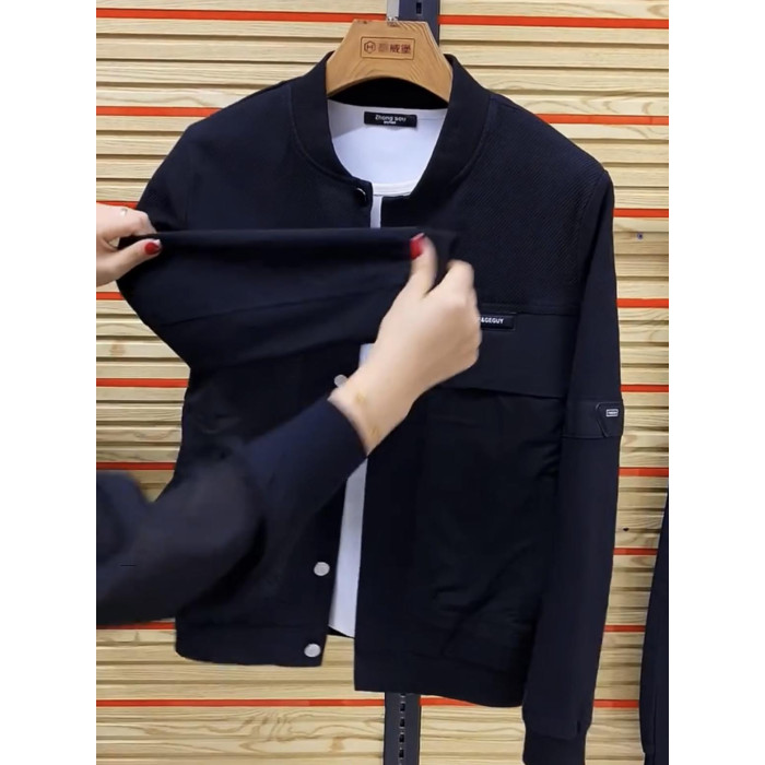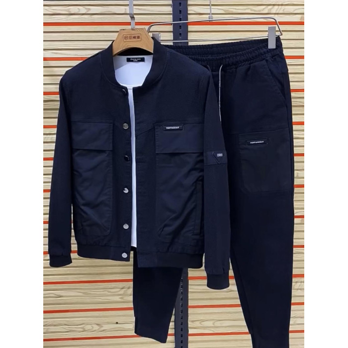 秋冬爆款高級感棒球領牛仔夾克套裝男高檔時尚寬松休閒運動兩件套