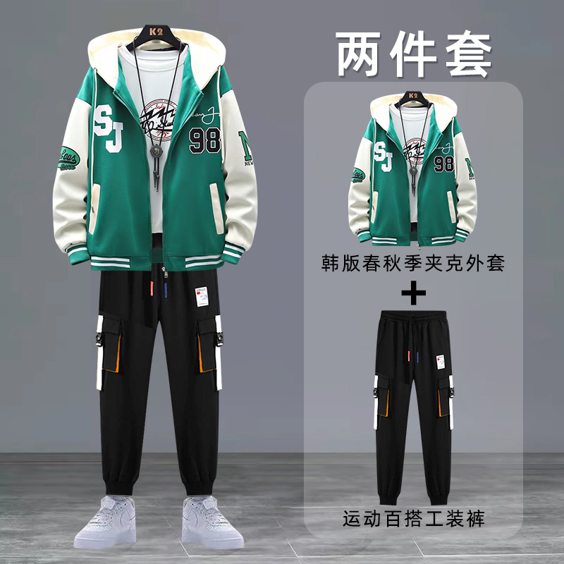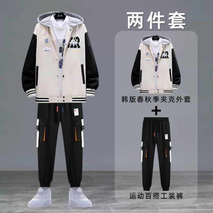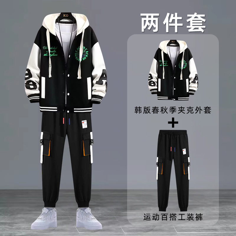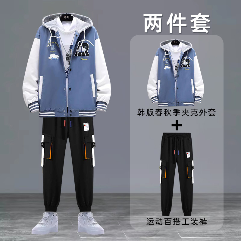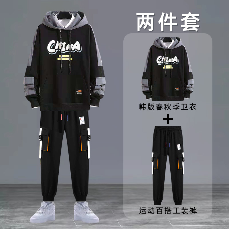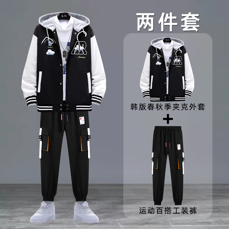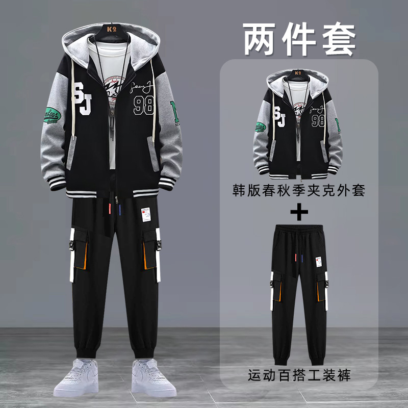 青少年春秋款套裝男孩子外套高中初中學生長袖衛衣潮流帥氣秋裝