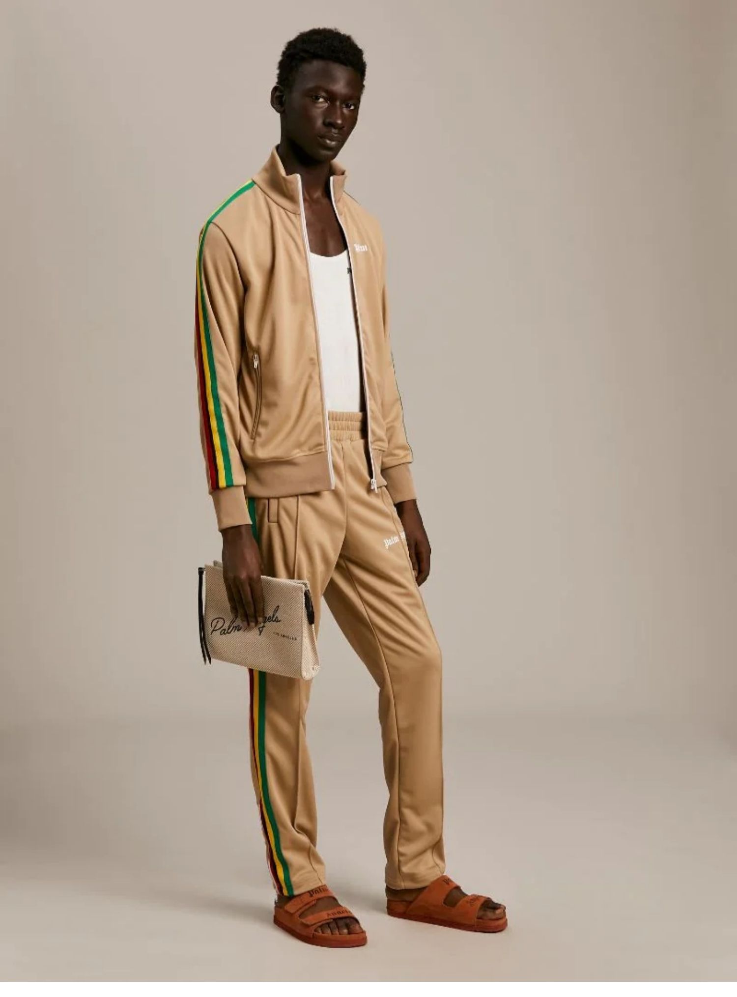 Palm Angels棕櫚天使彩虹休閒運動褲男女側邊拉鍊條紋長褲子套裝