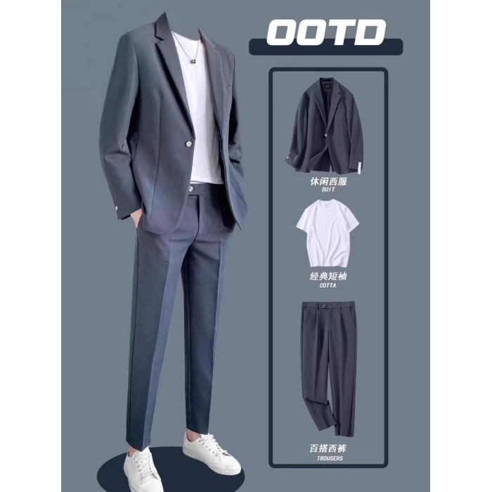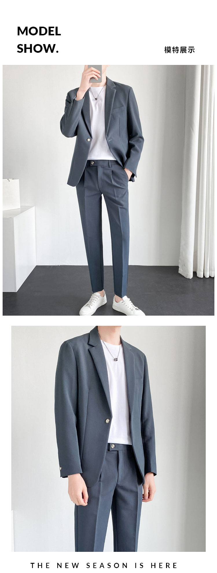 休閒西裝男士套裝外套高級感韓版痞帥春秋季輕熟小西服上衣三件套