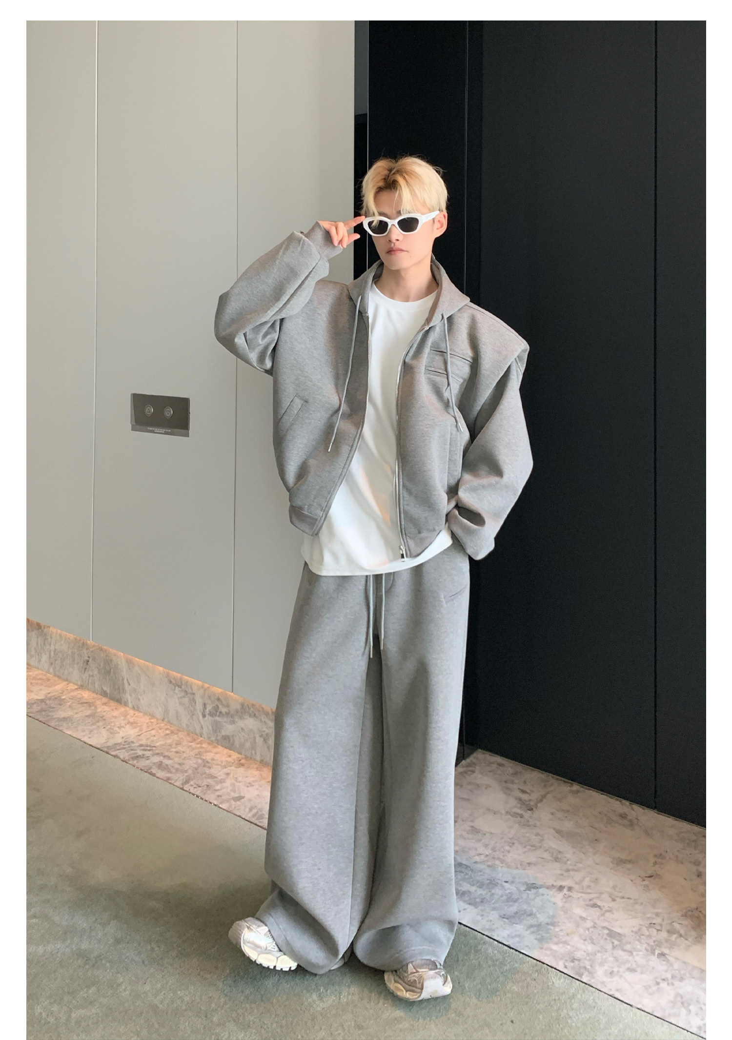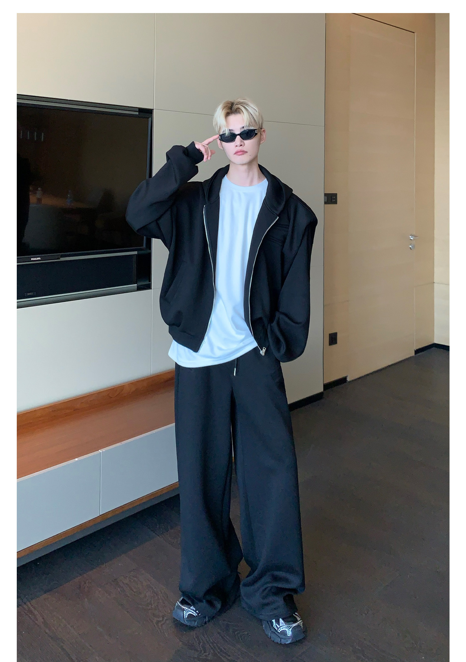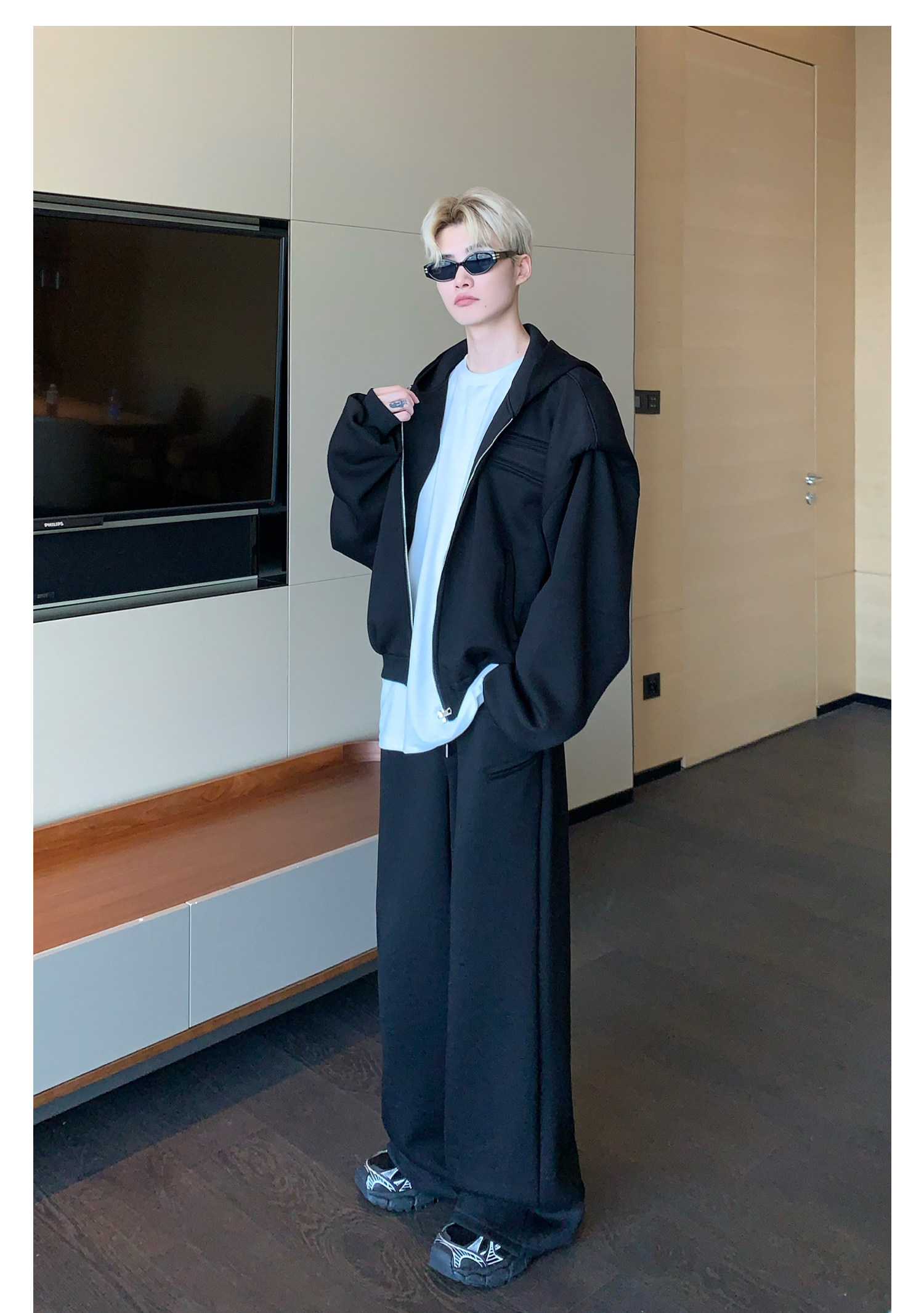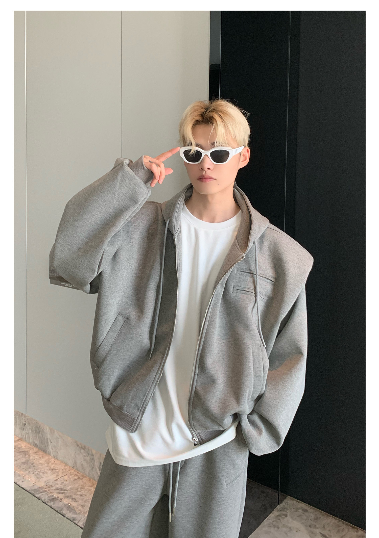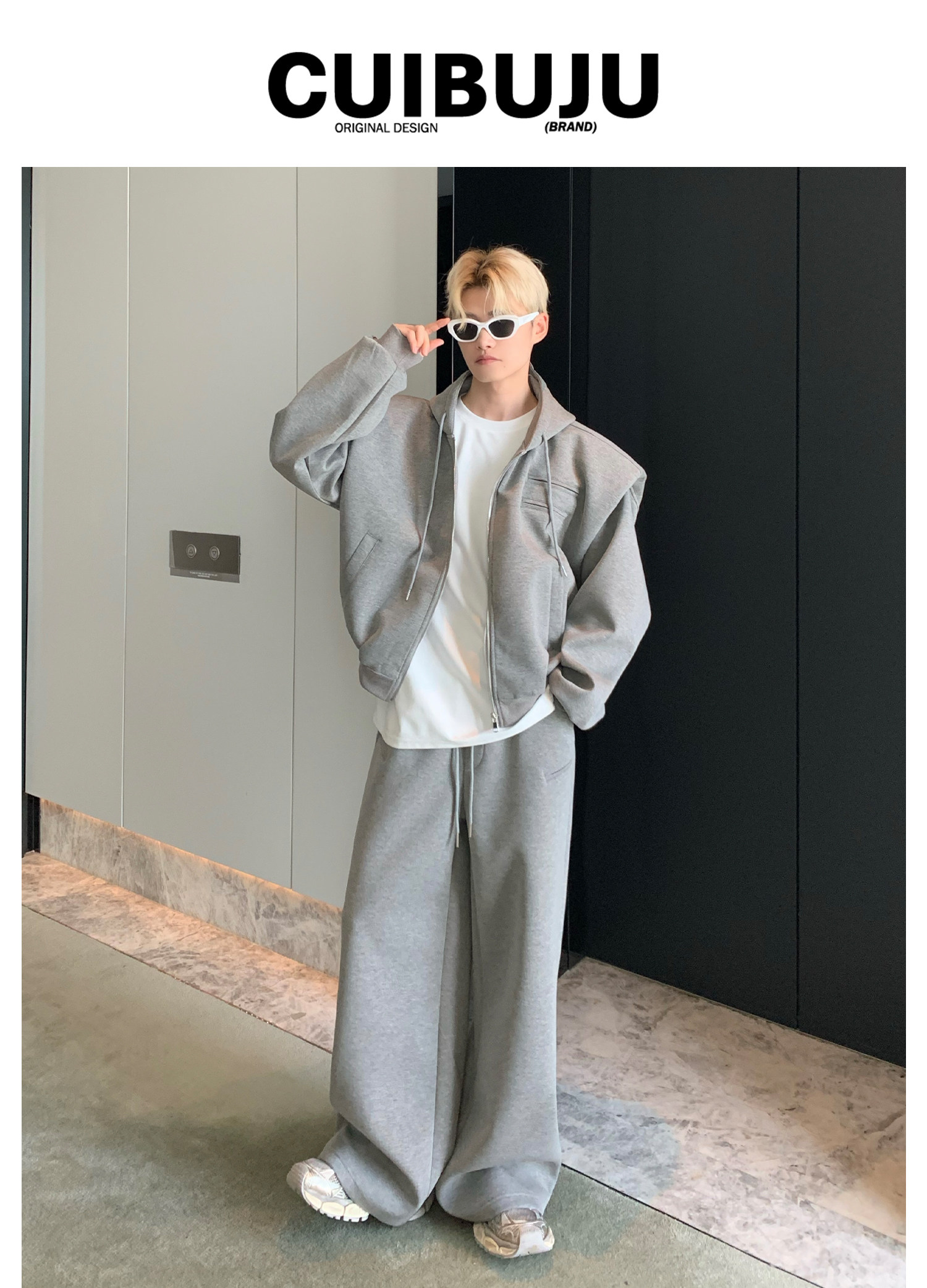 【周深同款】cuibuju小衆高級感夾克外套男墊肩衛衣直筒褲兩件套