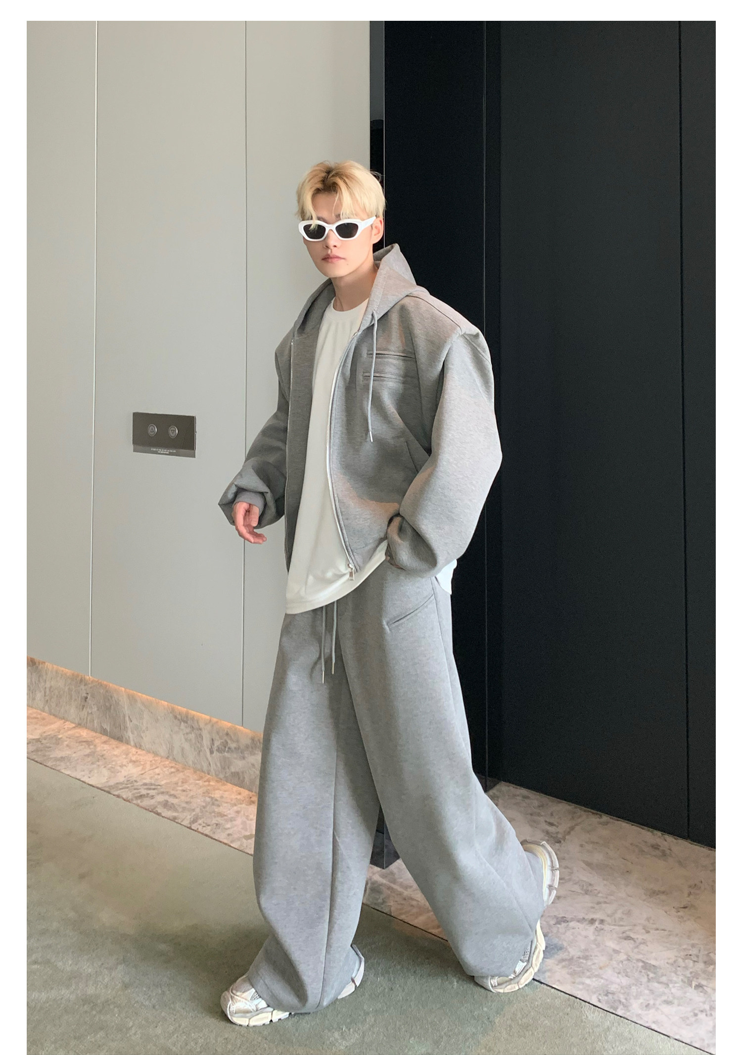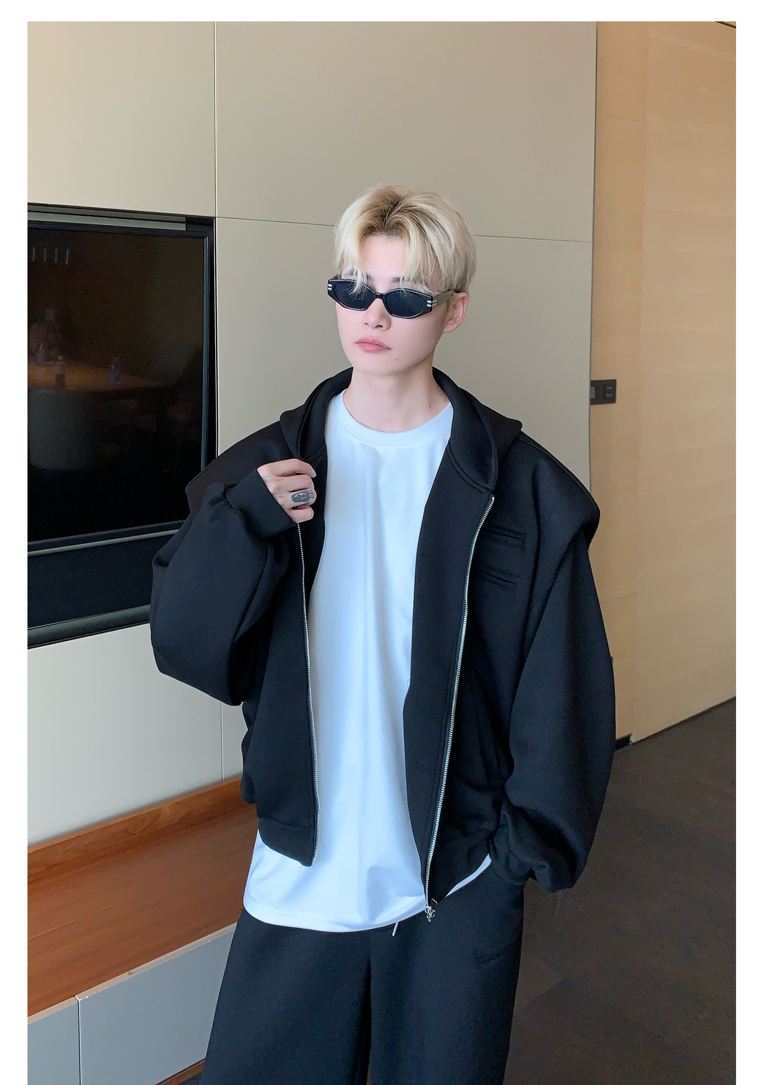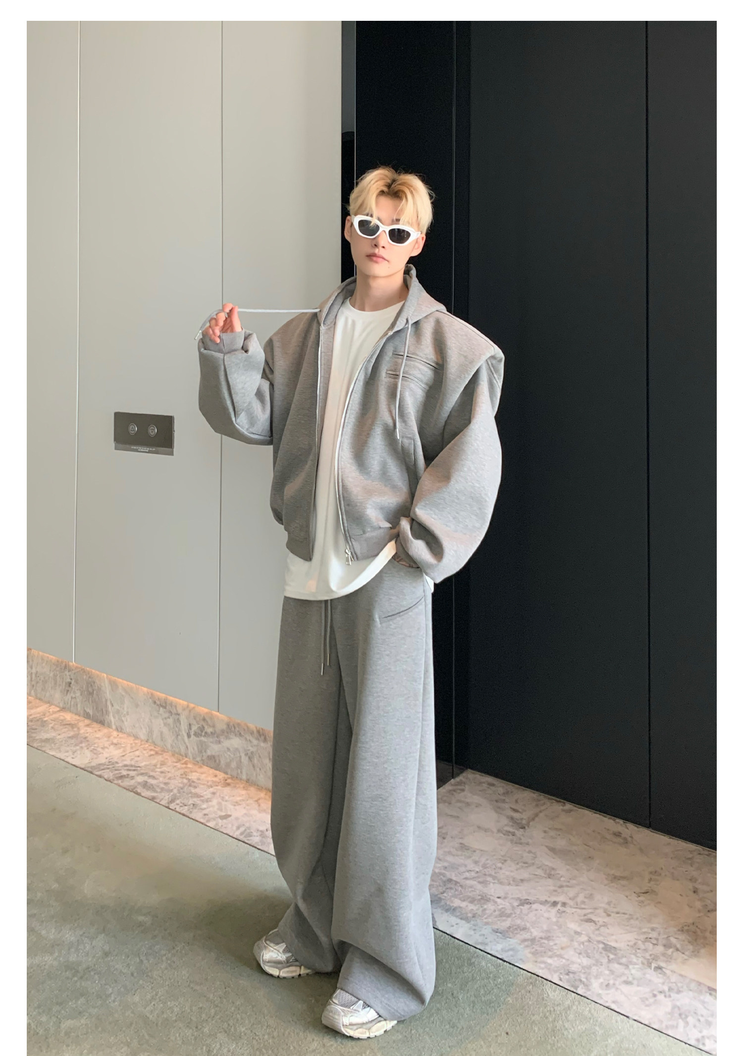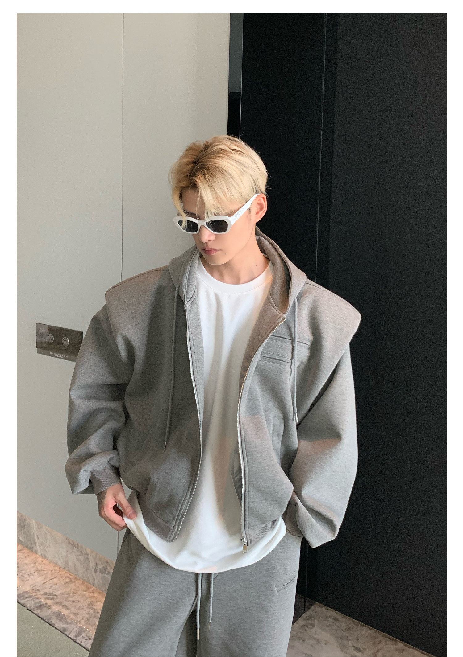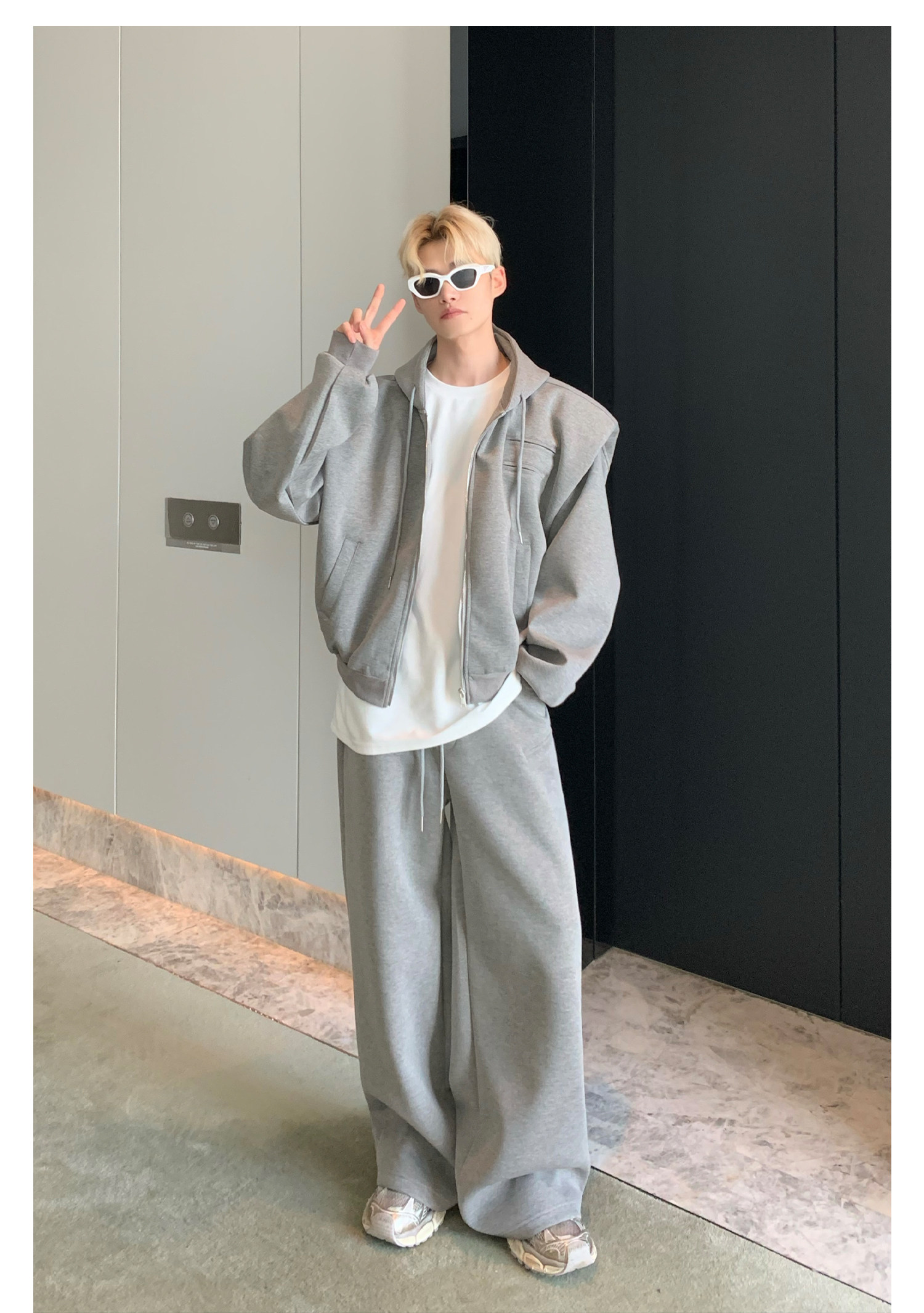 【周深同款】cuibuju小衆高級感夾克外套男墊肩衛衣直筒褲兩件套