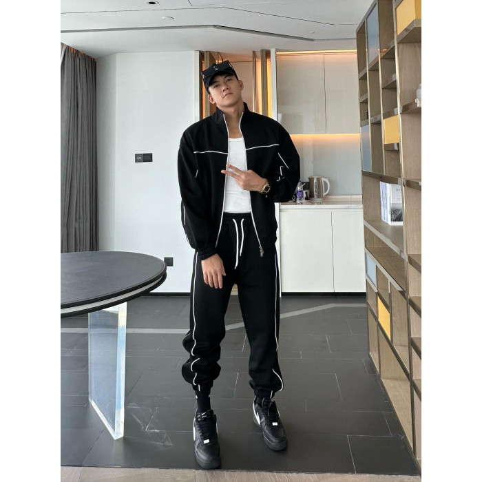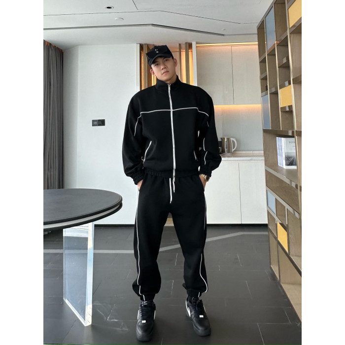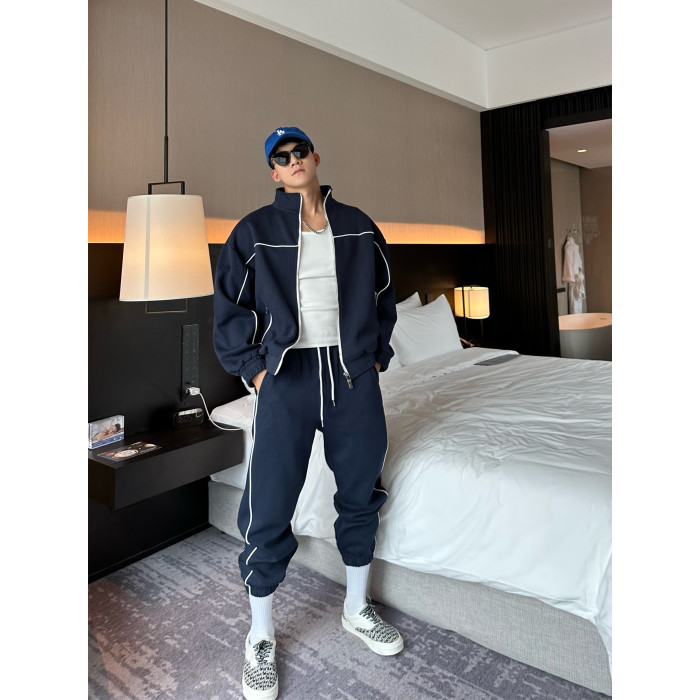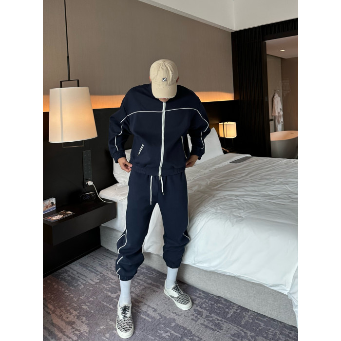 JZD【球場C位】秋冬美式高街運動休閒套裝 廓形衛衣外套收口衛褲