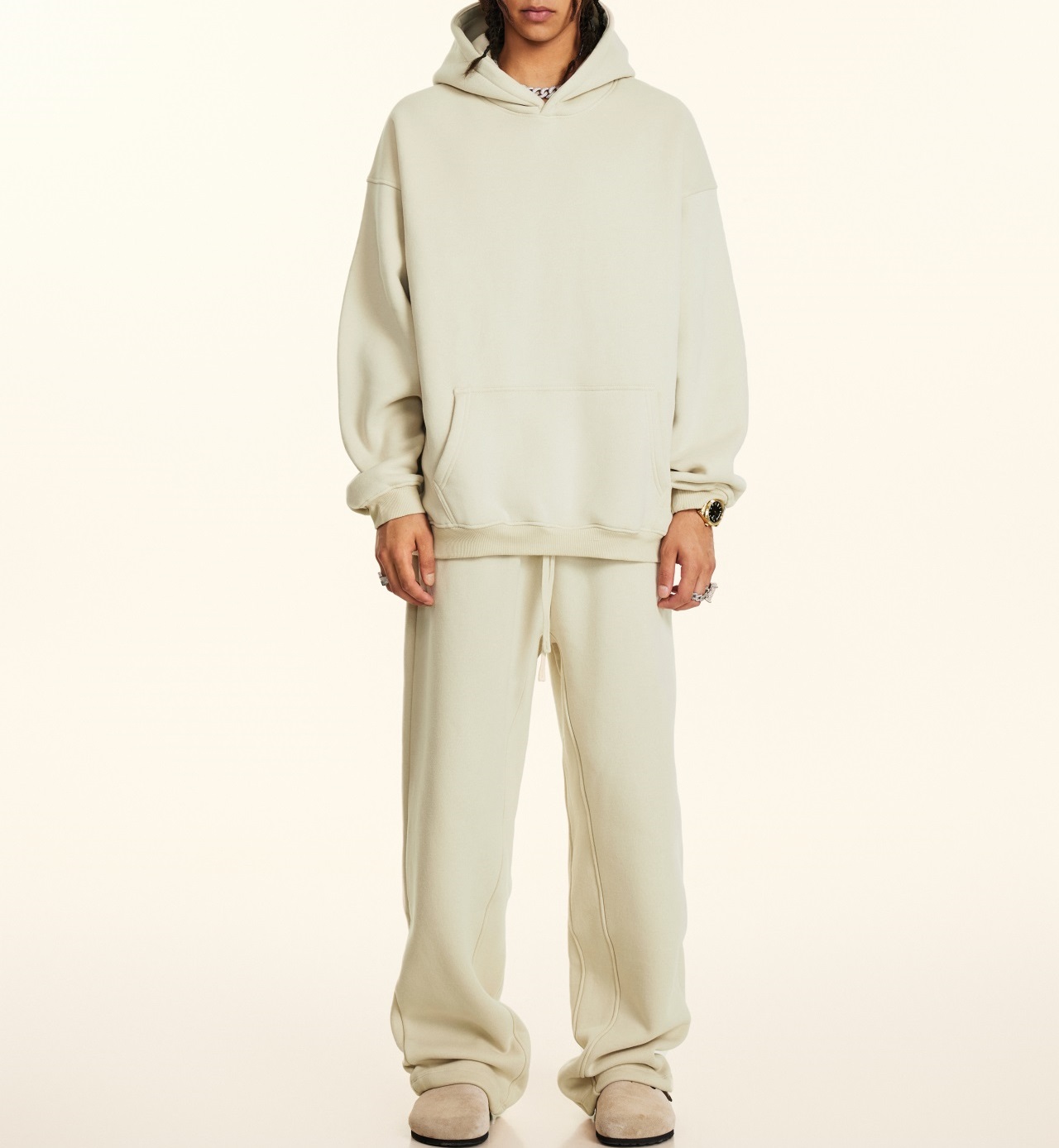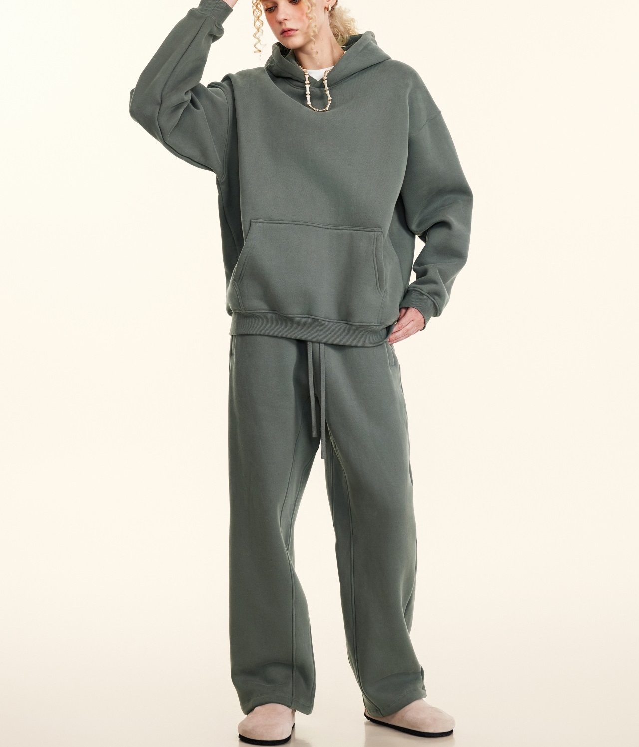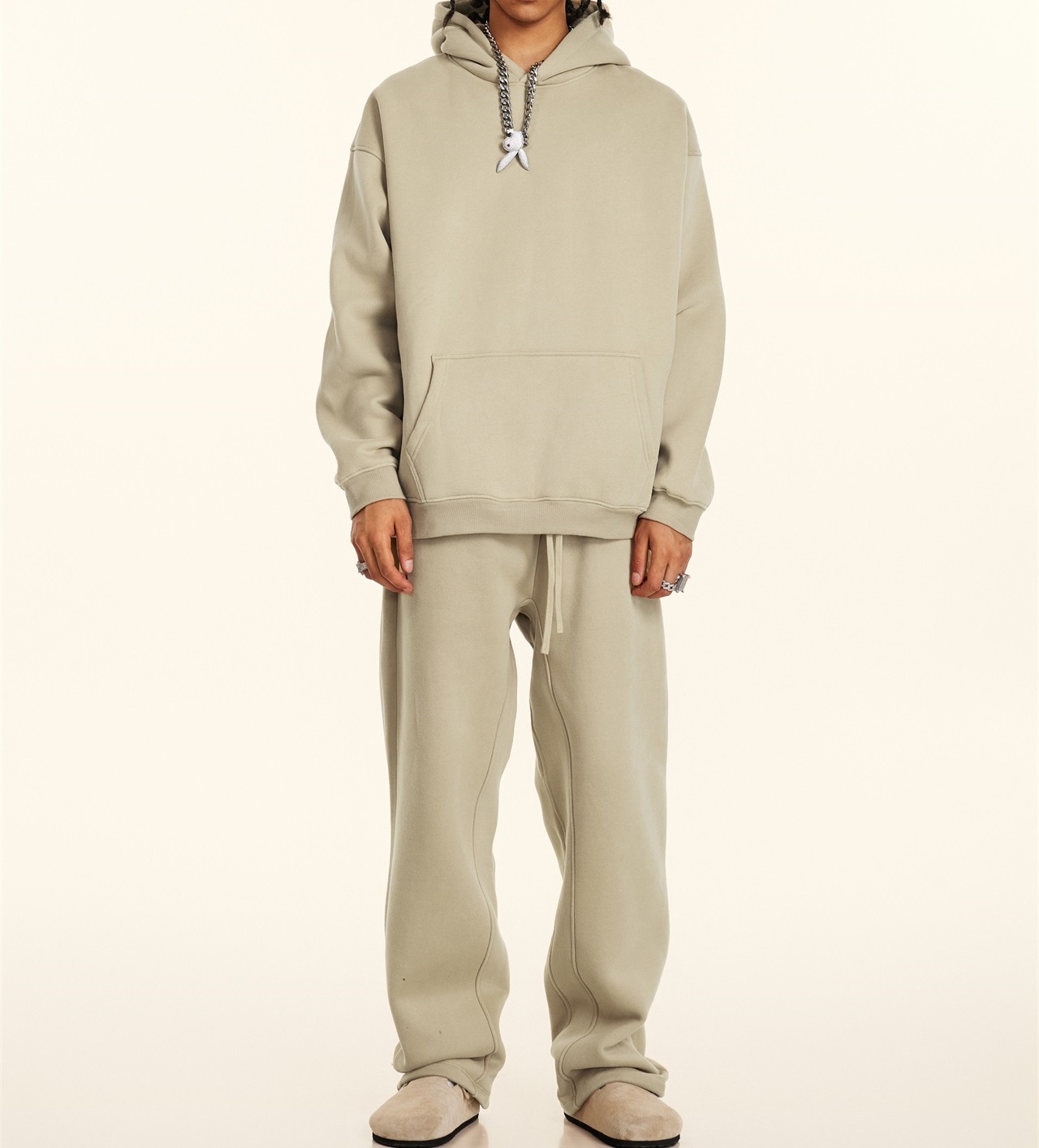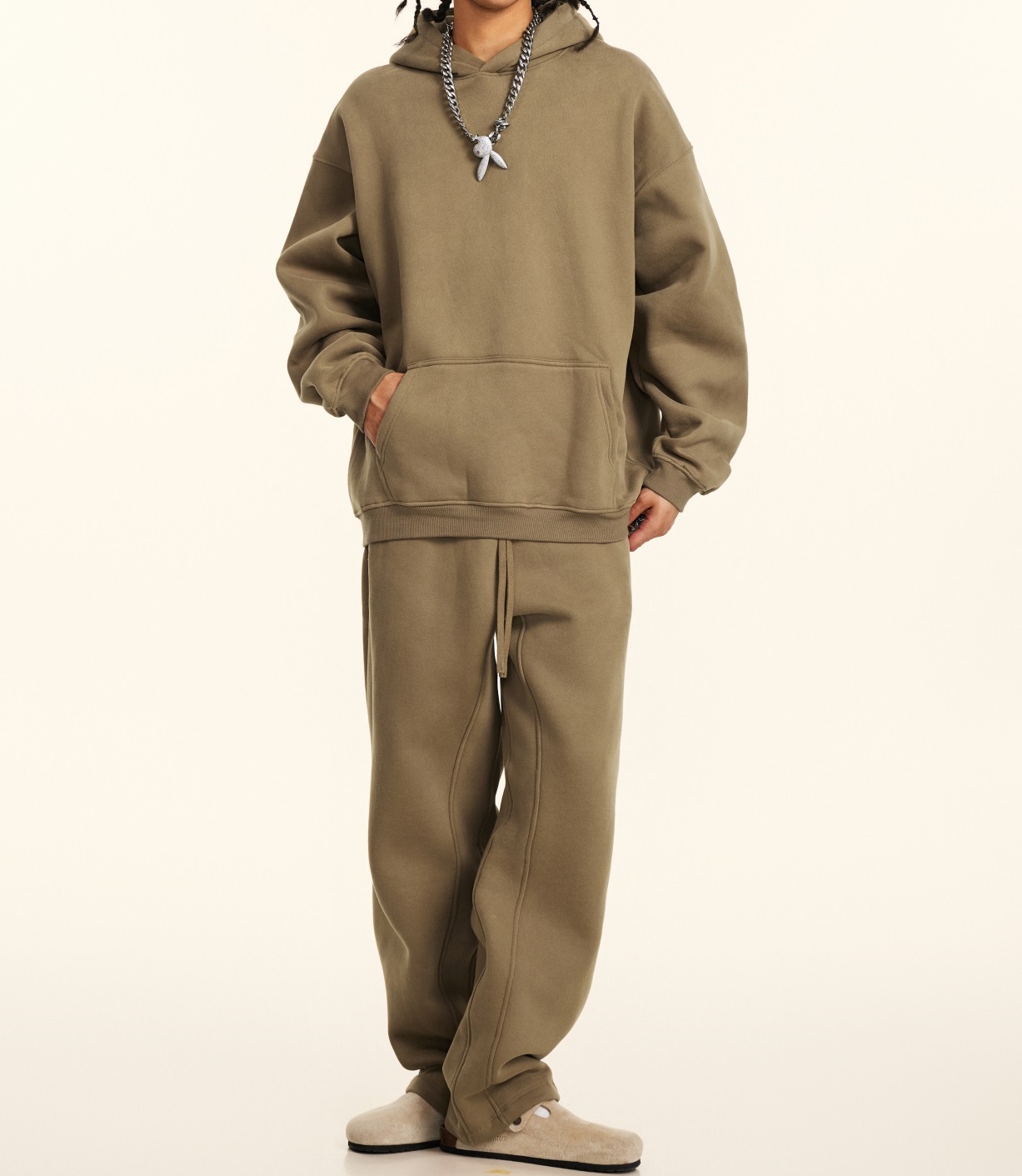 2025秋冬休閒純色美式加絨連帽衛衣兩件套裝寬松衛褲男女oversize