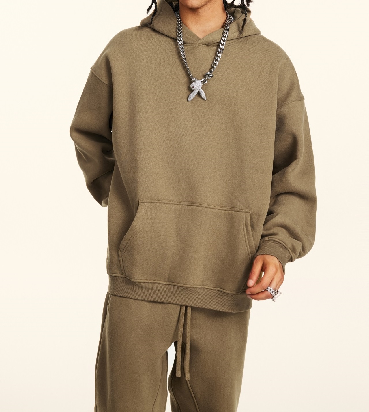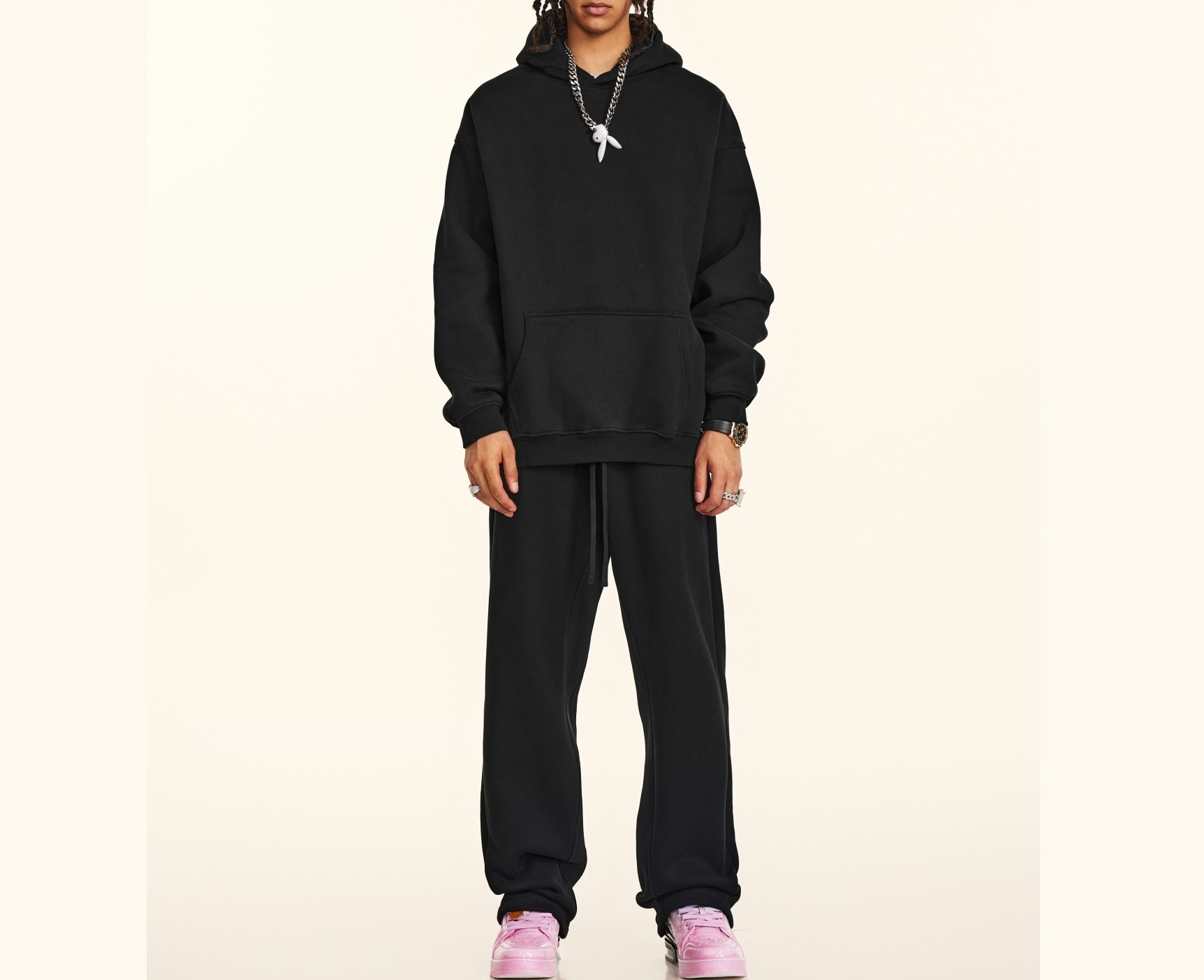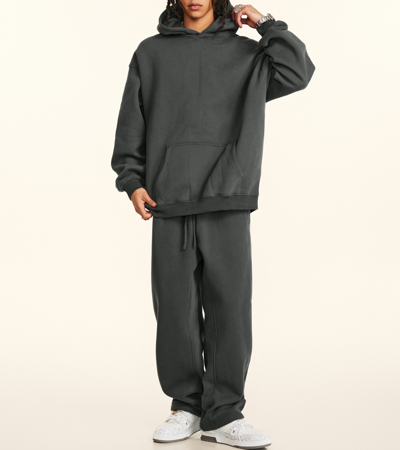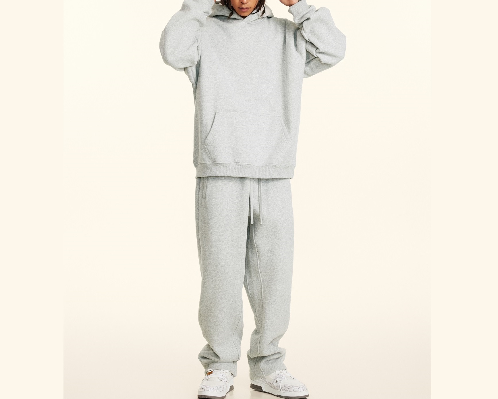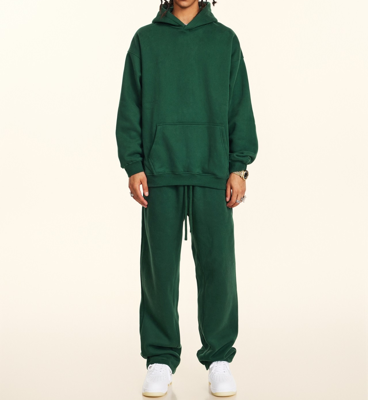 2025秋冬休閒純色美式加絨連帽衛衣兩件套裝寬松衛褲男女oversize