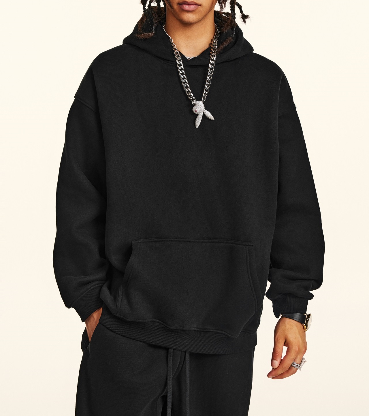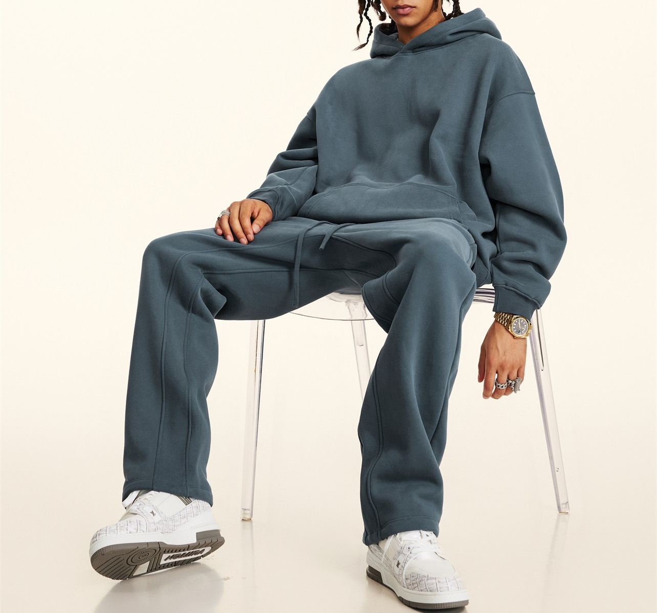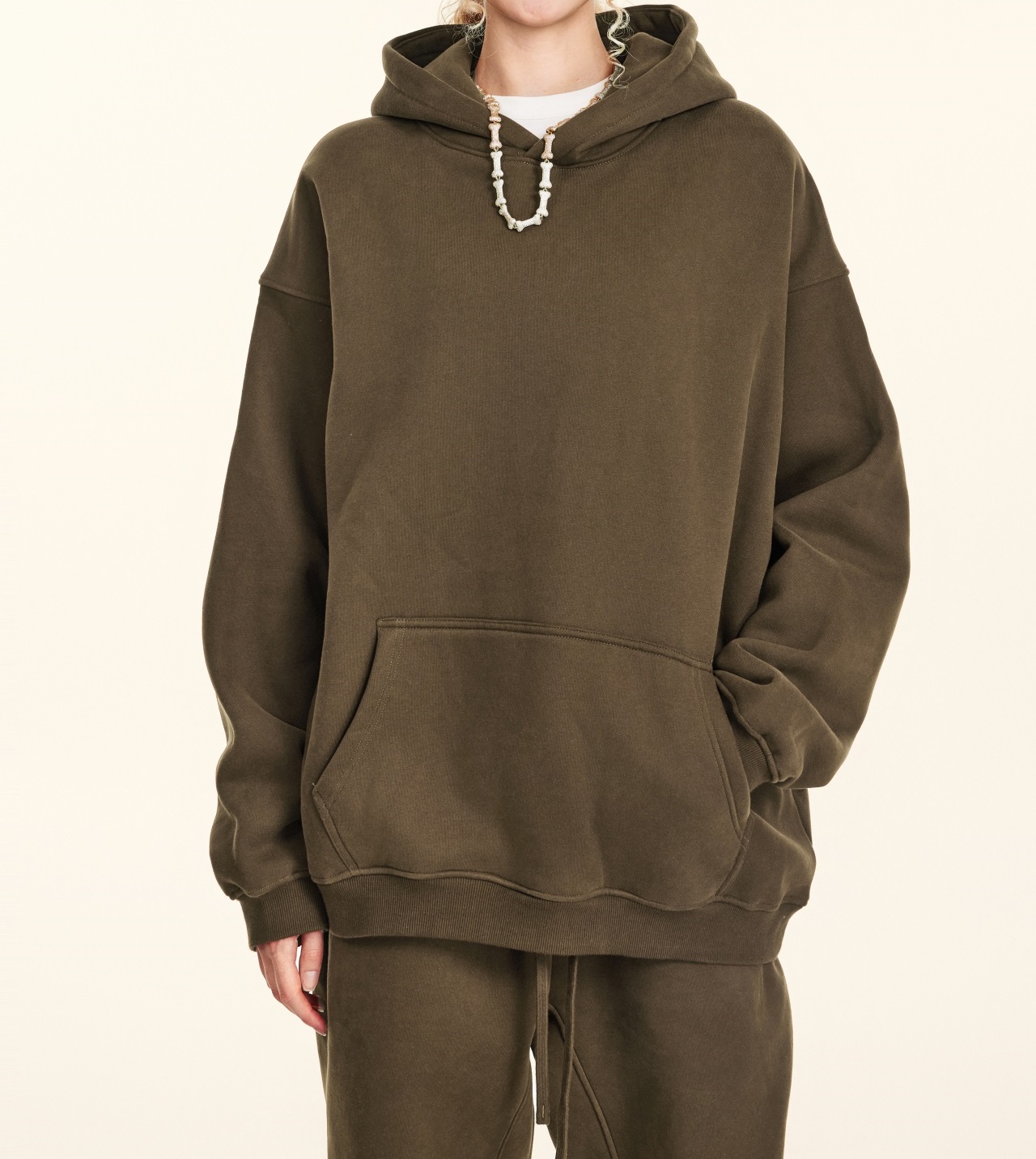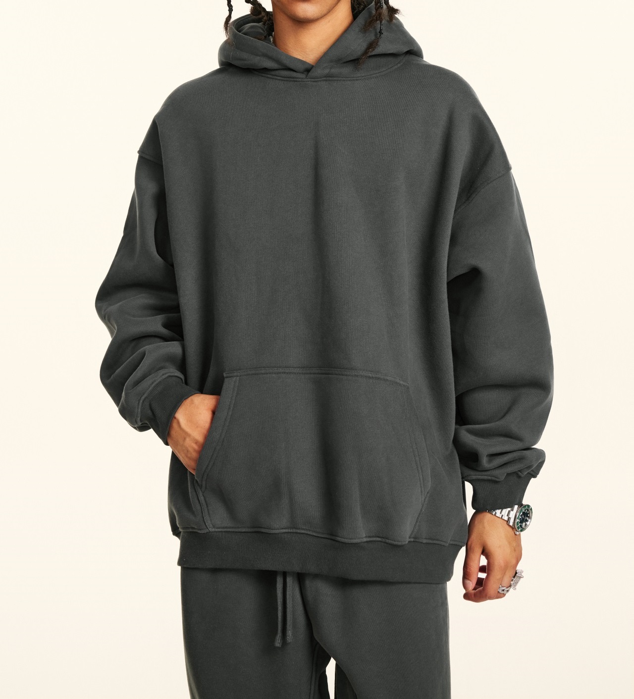 2025秋冬休閒純色美式加絨連帽衛衣兩件套裝寬松衛褲男女oversize