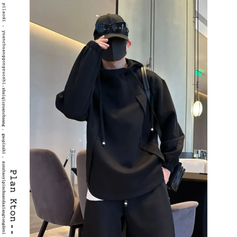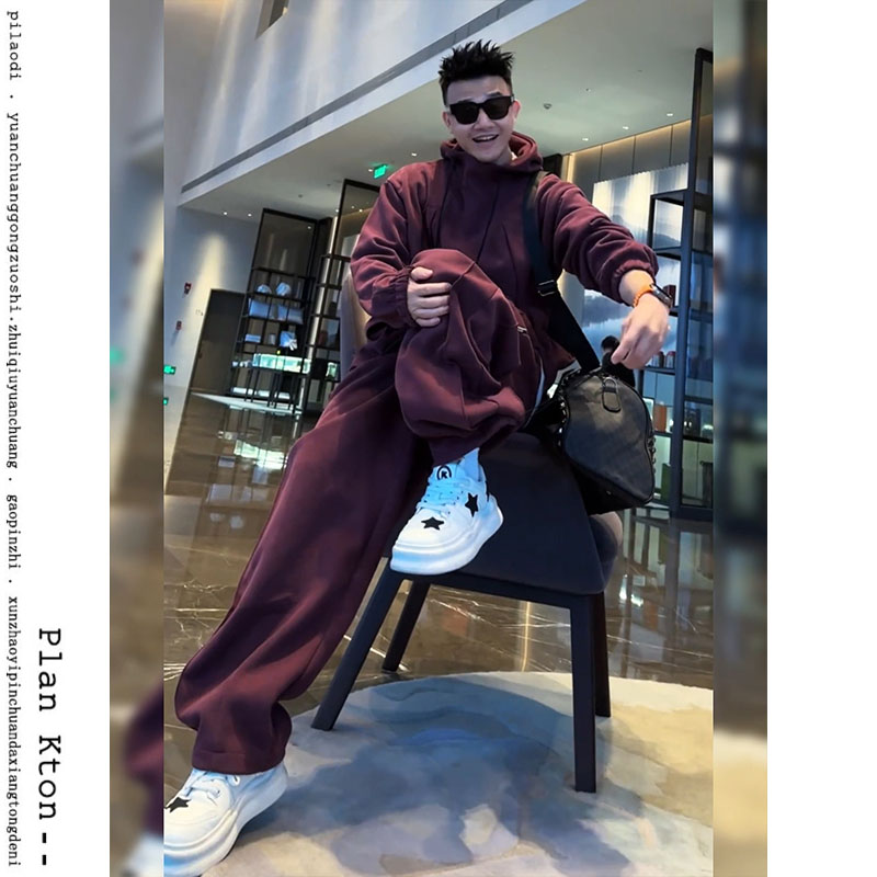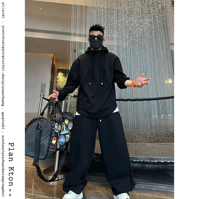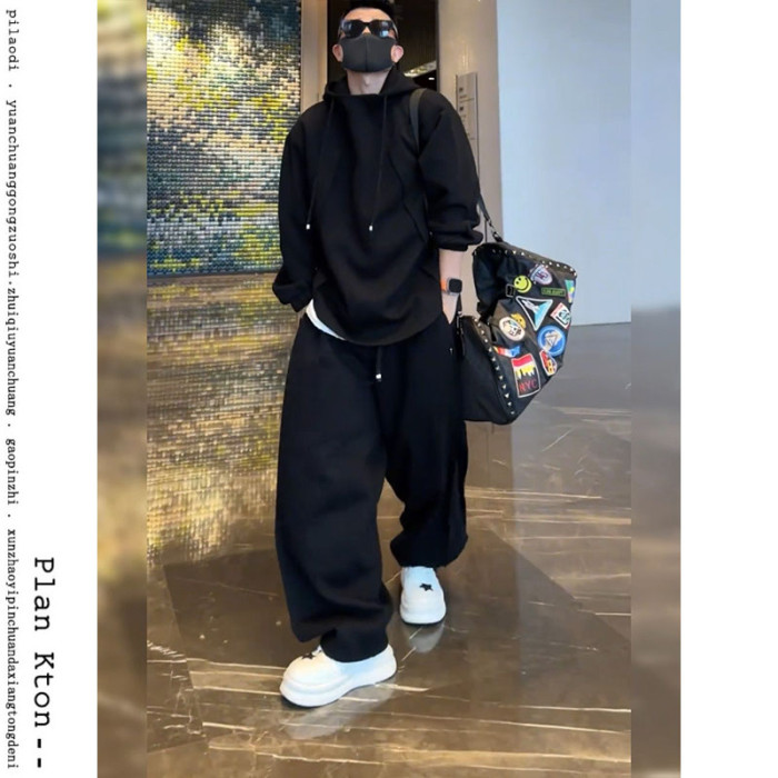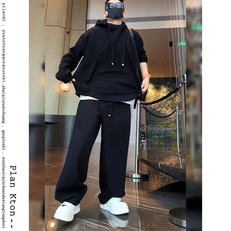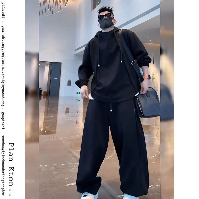 秋冬痞帥時尚兩件套裝男潮流衛衣春季寬松加厚香蕉直筒系帶休閒褲