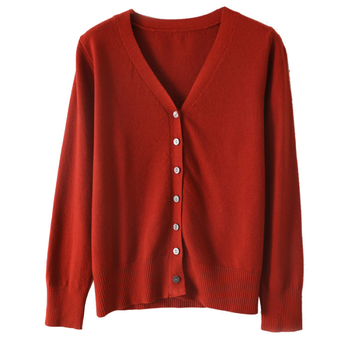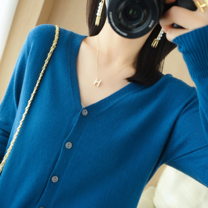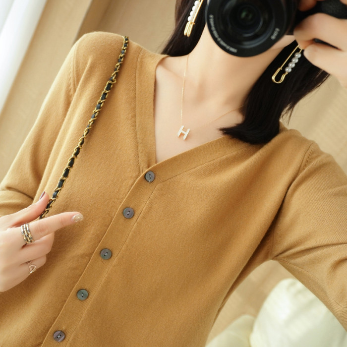 新款羊毛開衫外套女針織打底衫V領2025年春季羊絨外搭短款毛衣女