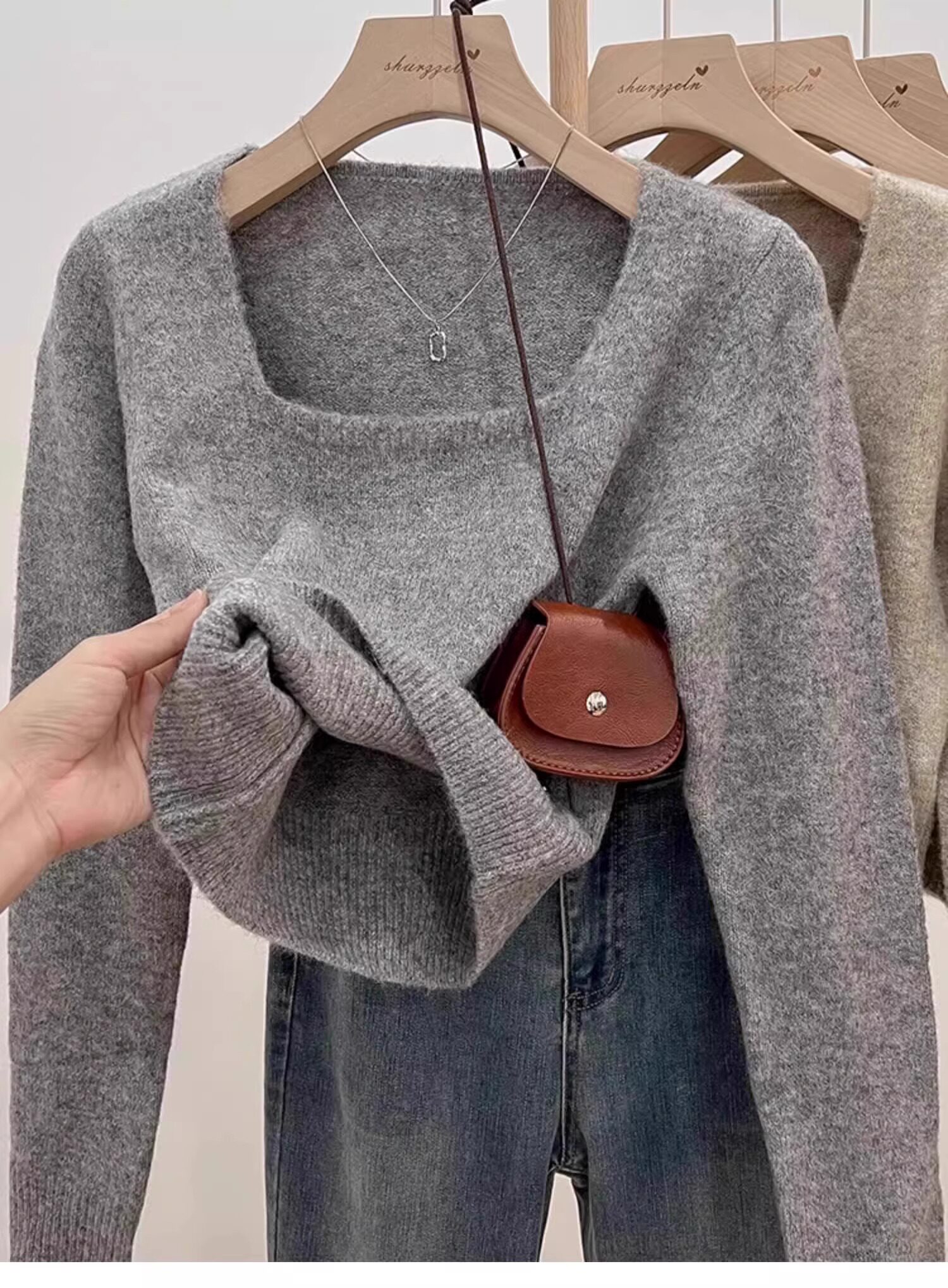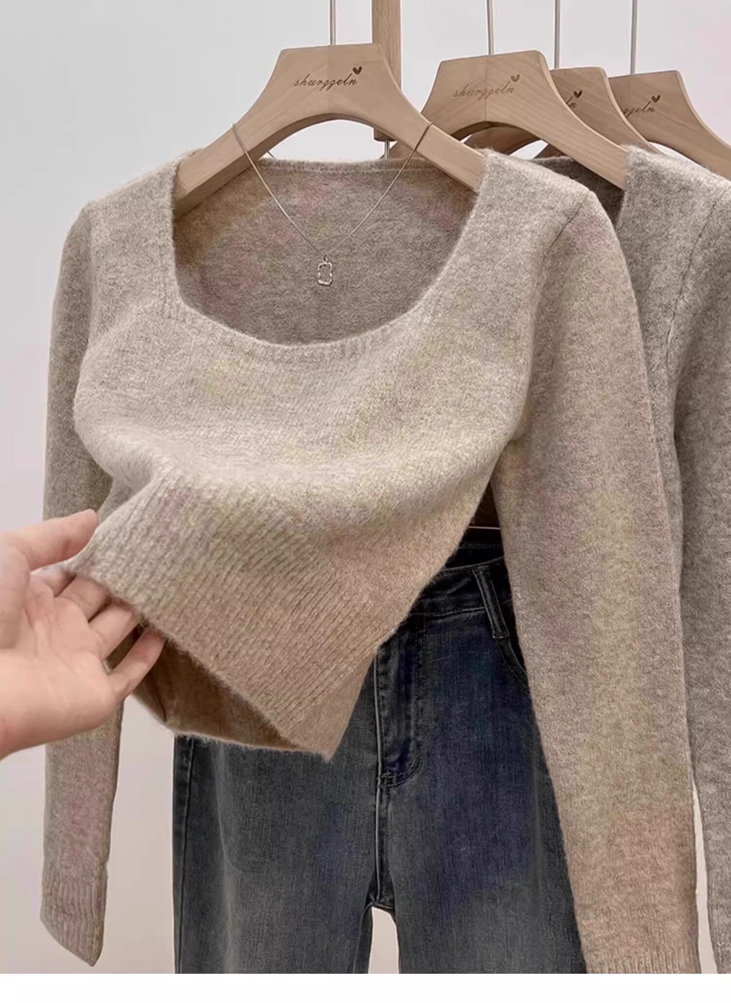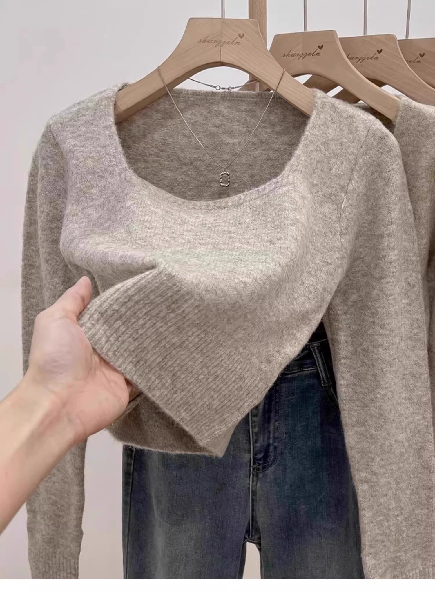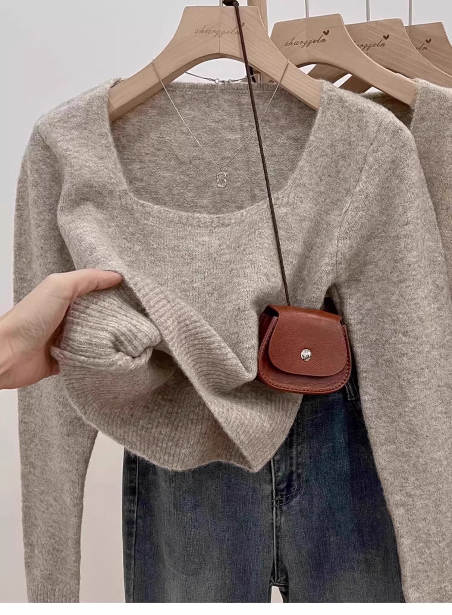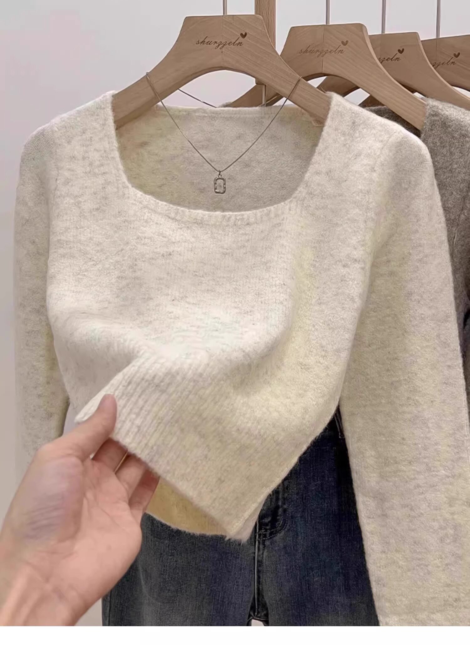 方領露鎖骨軟糯毛衣針織打底衫女2025秋冬高級感加厚套頭內搭上衣