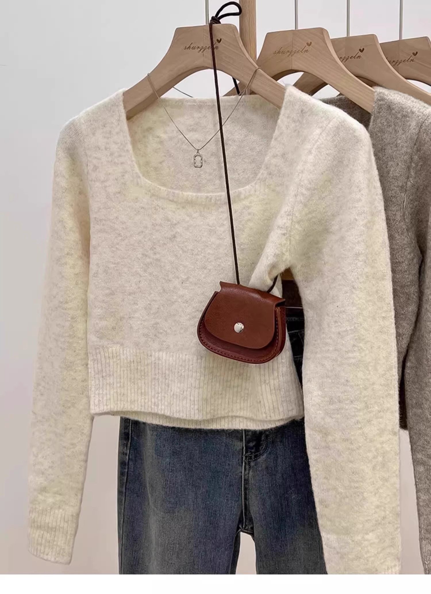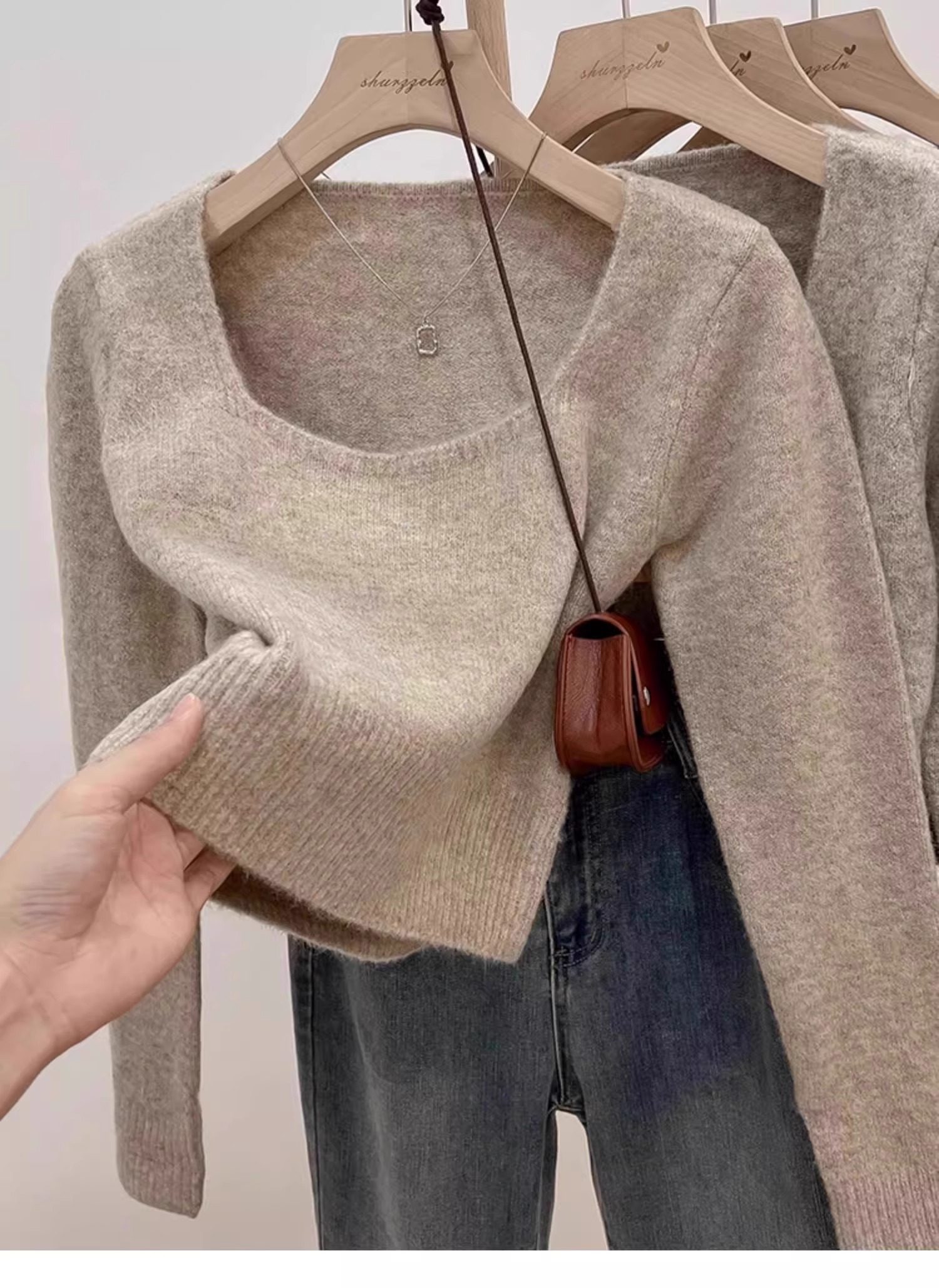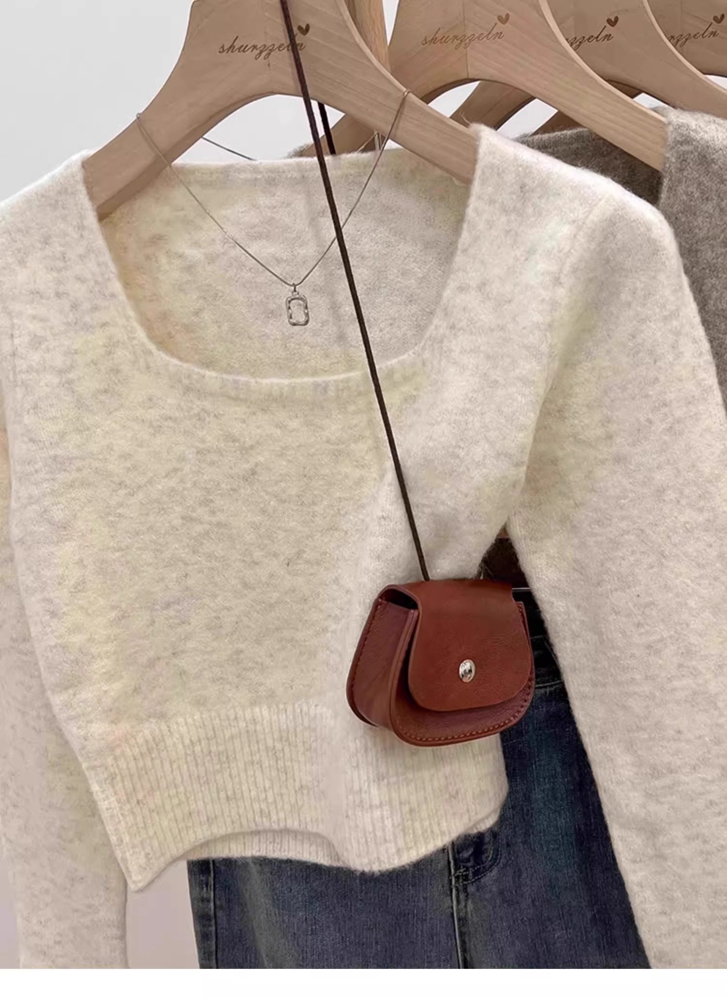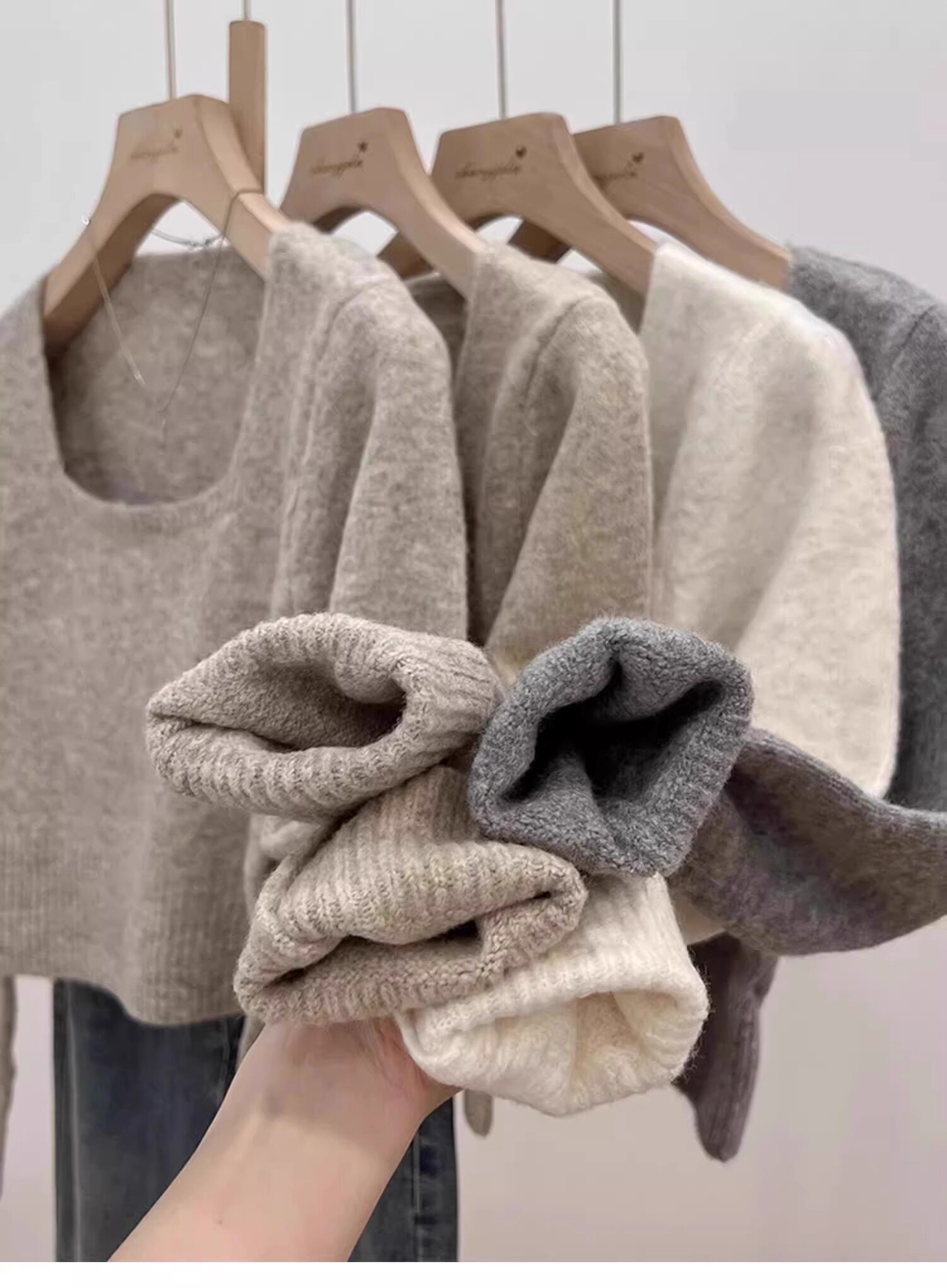 方領露鎖骨軟糯毛衣針織打底衫女2025秋冬高級感加厚套頭內搭上衣