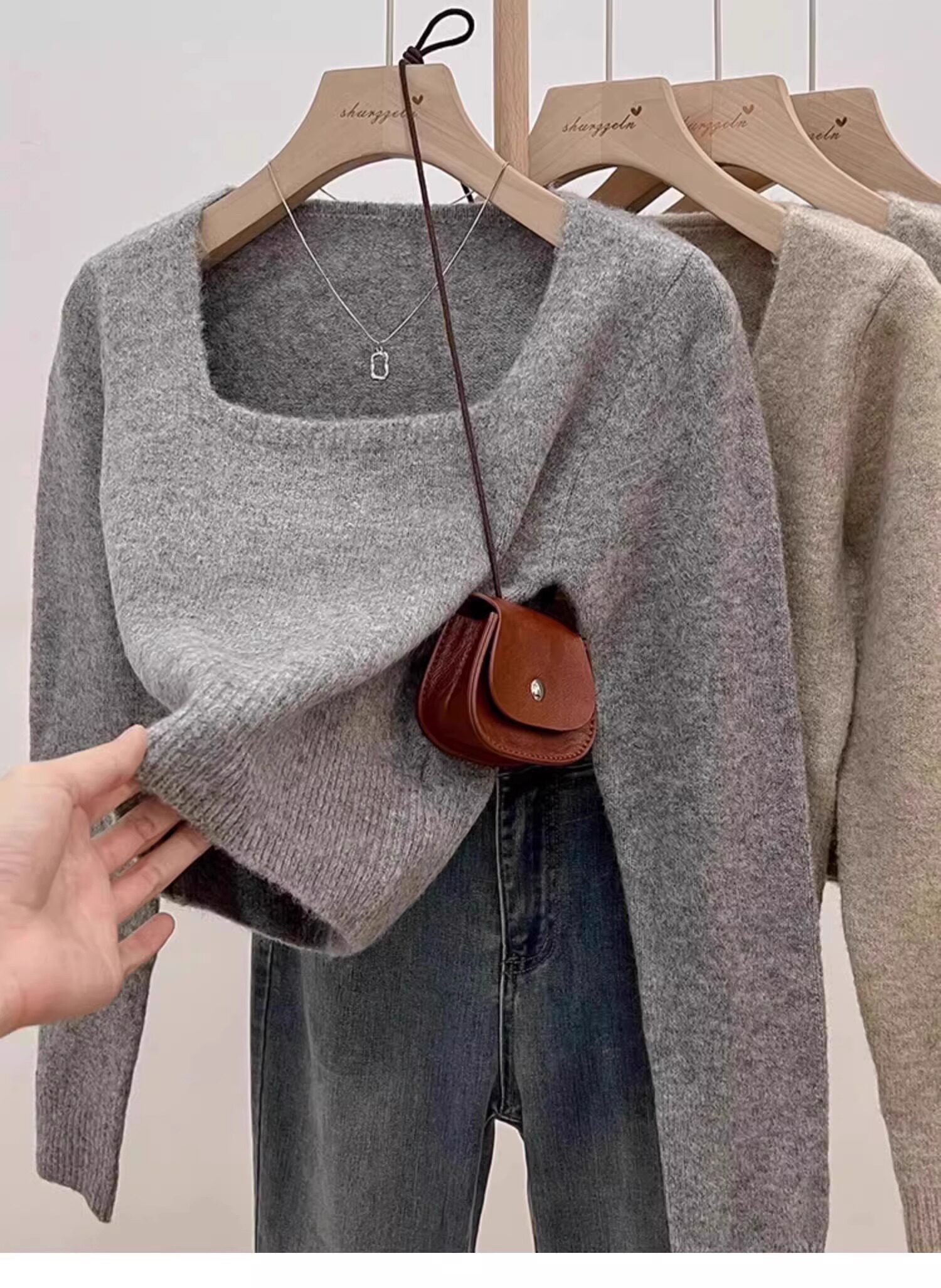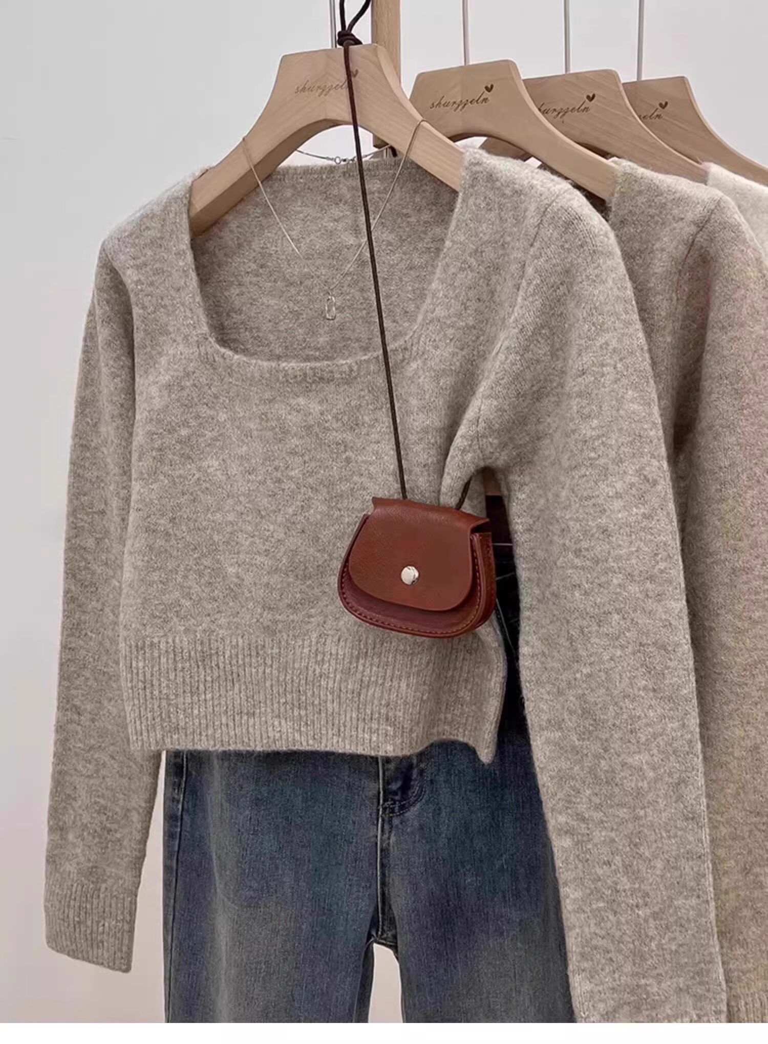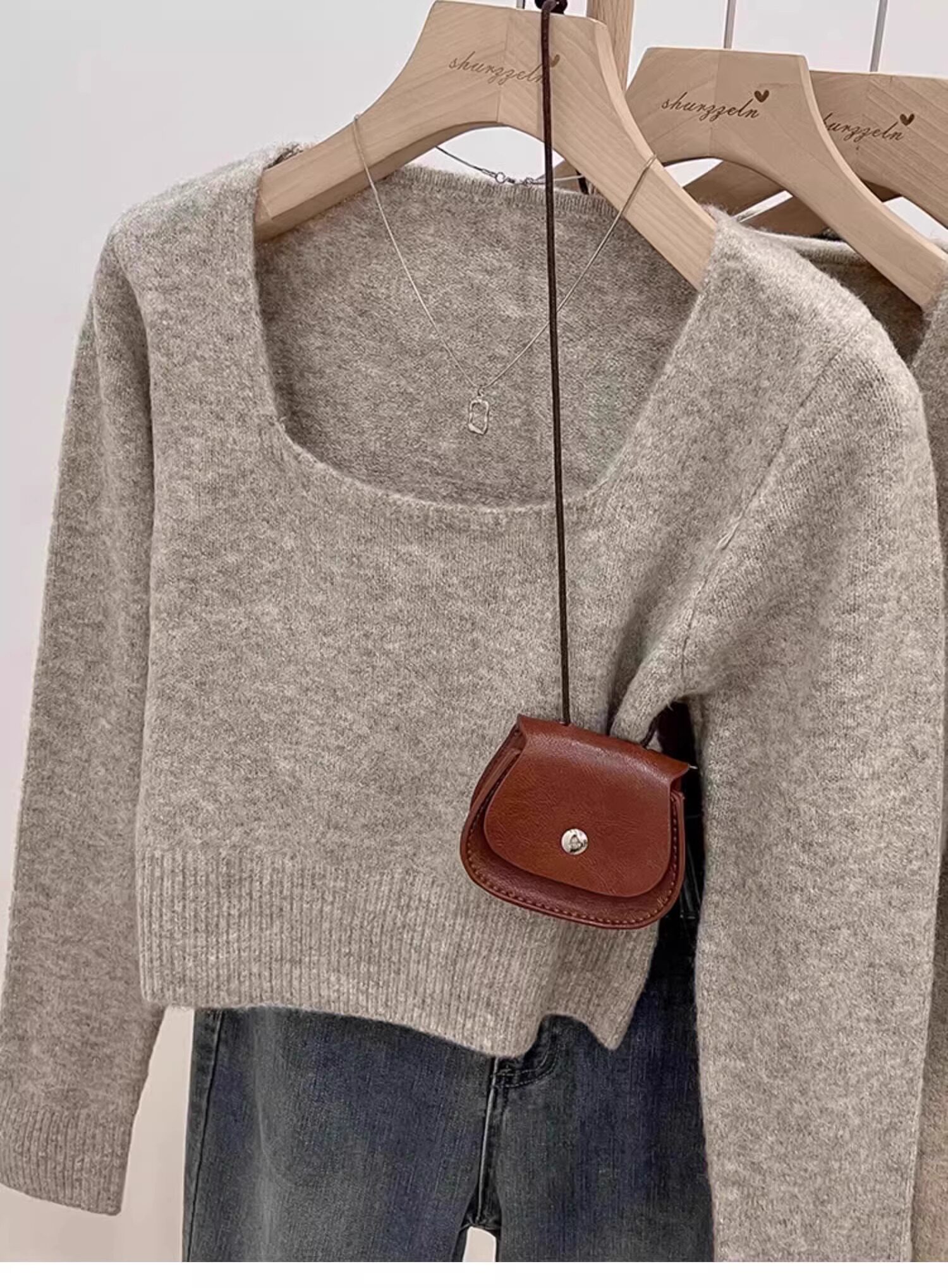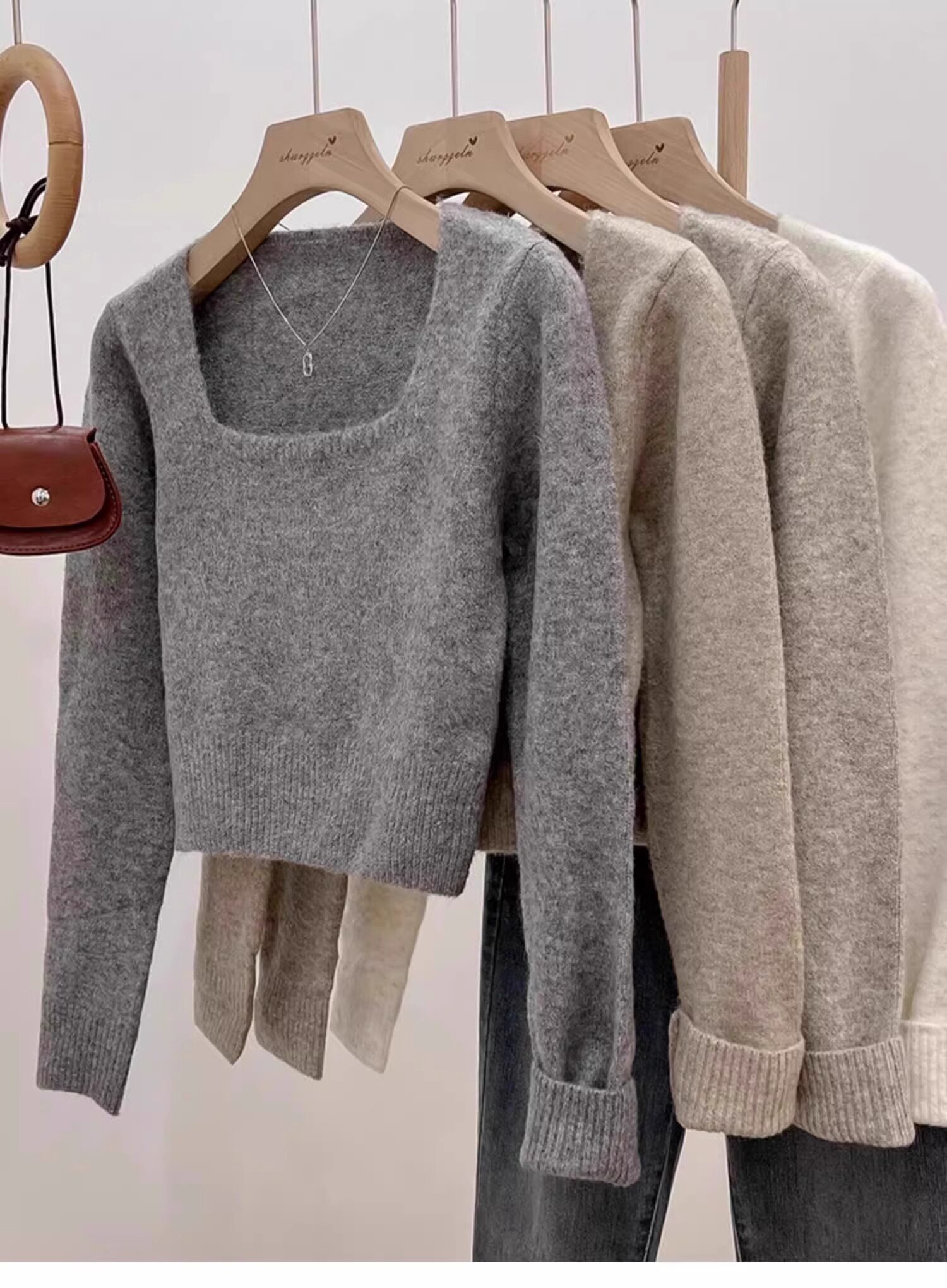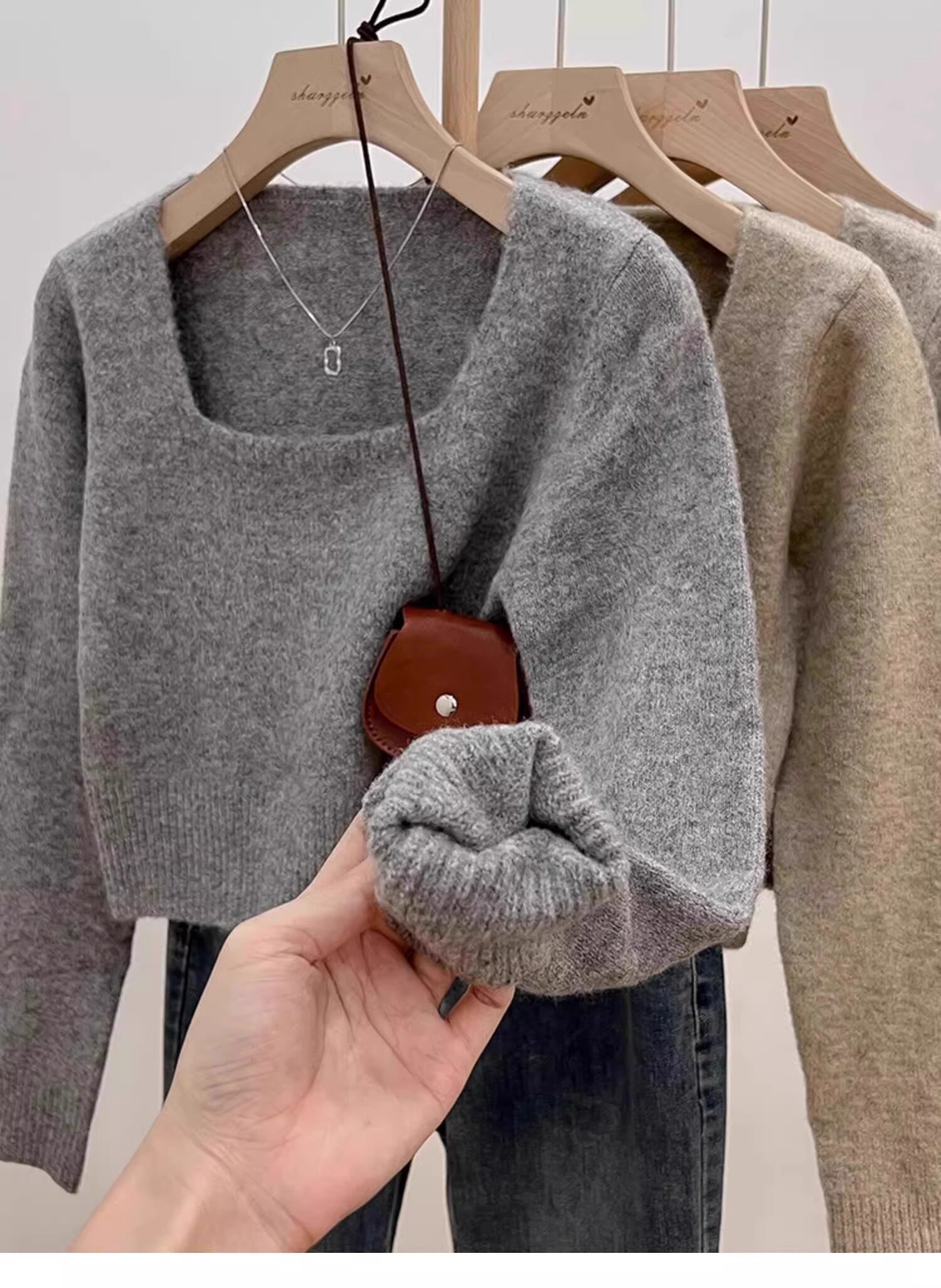方領露鎖骨軟糯毛衣針織打底衫女2025秋冬高級感加厚套頭內搭上衣