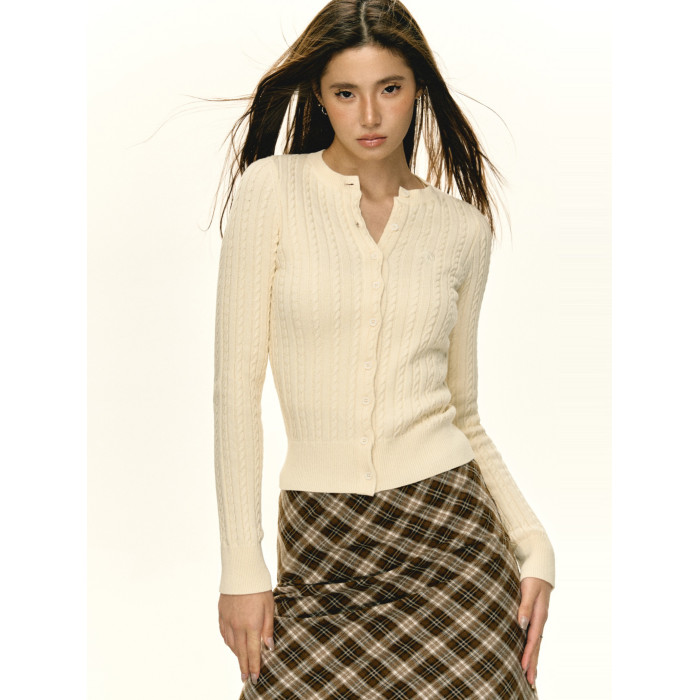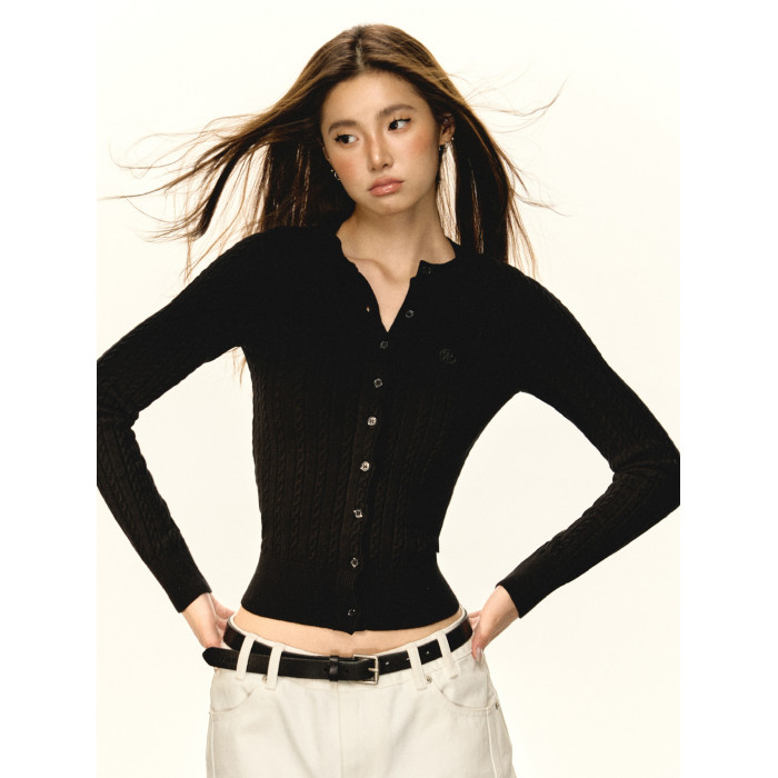 Ariseism美式復古圓領修身針織開衫女2025秋季新款內搭毛衣外套