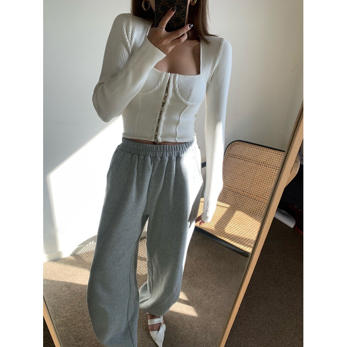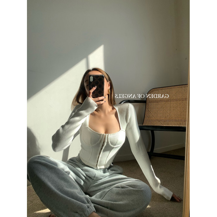 秋季法式別致上衣長袖方領打底衫女辣妹毛衣設計感小衆短款針織衫