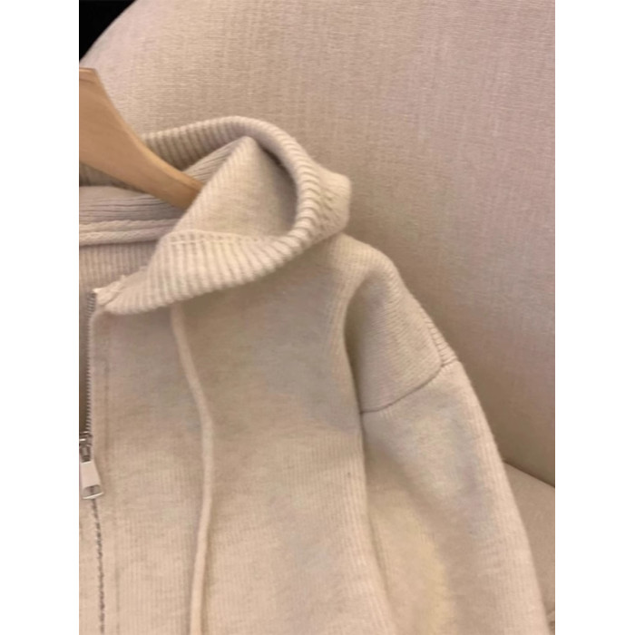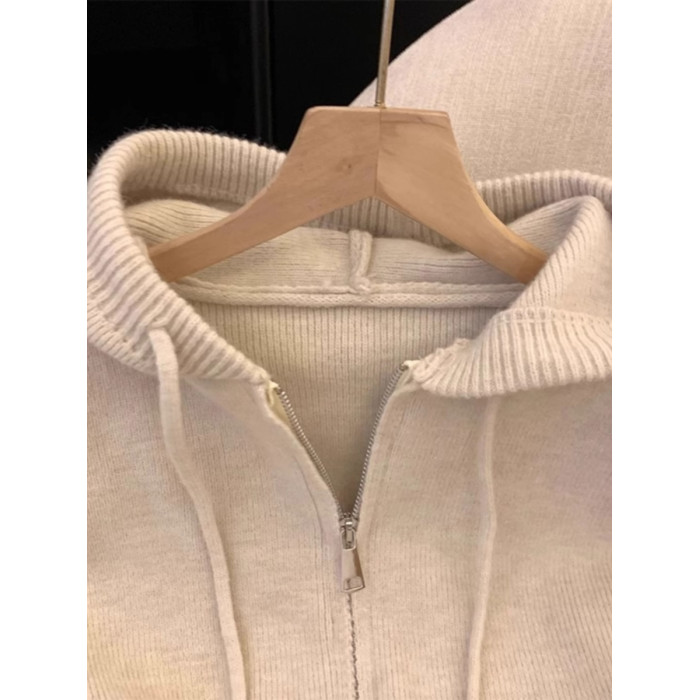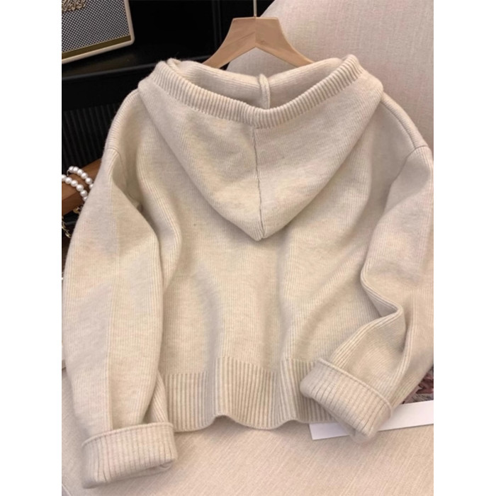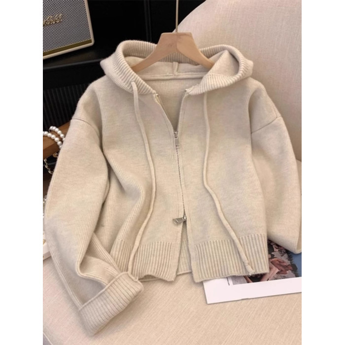 寬松慵懶拉鍊秋冬減齡外搭毛衣女開衫2025春秋新款連帽針織衫外套