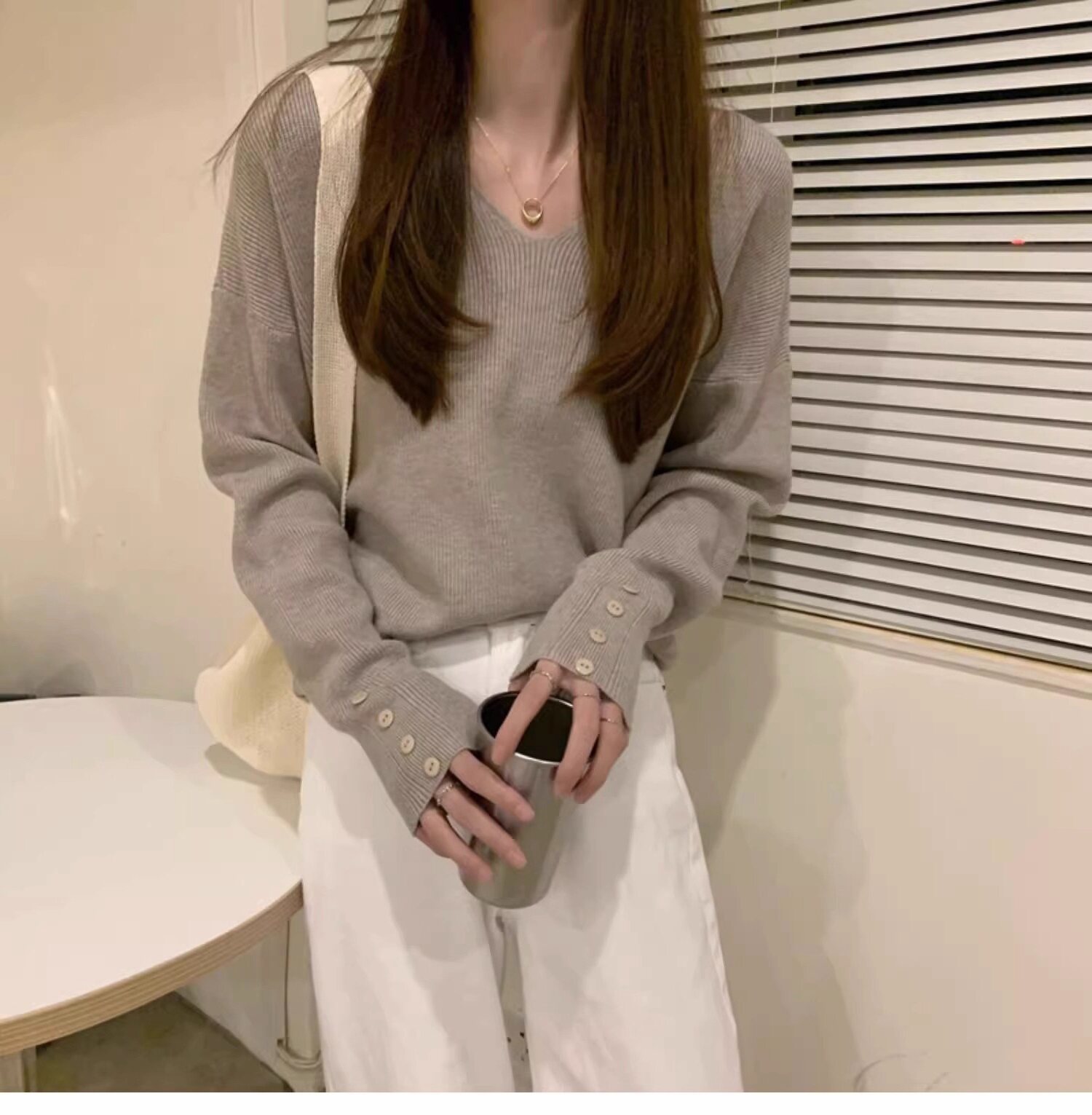 v領毛衣針織打底衫秋裝2025年新款女裝慵懶風高級感秋冬內搭上衣