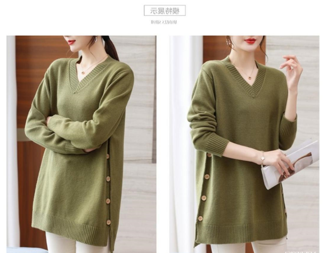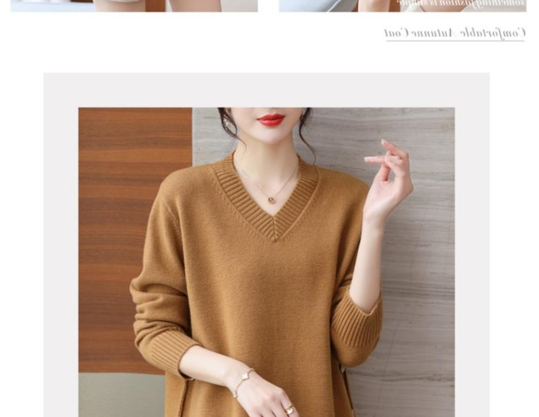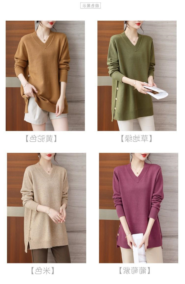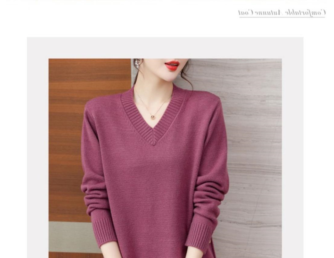 特大碼胖MM秋冬女裝新款針織V領打底輕熟風顯瘦遮肉寬松純色毛衣