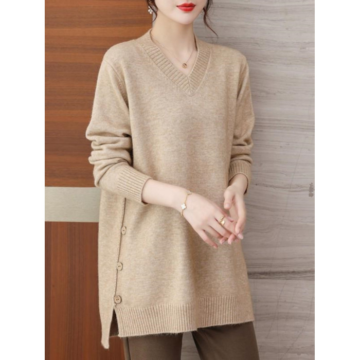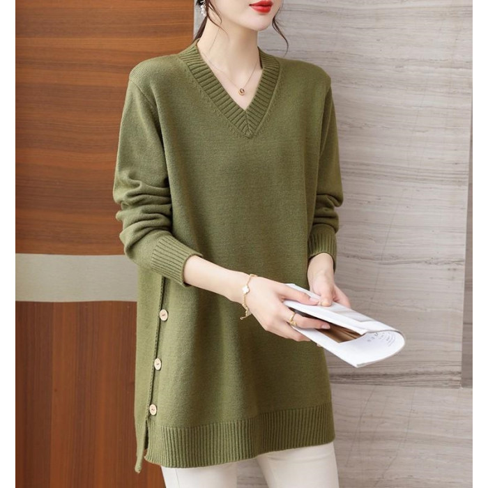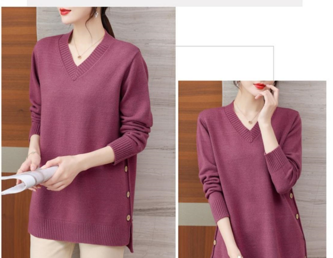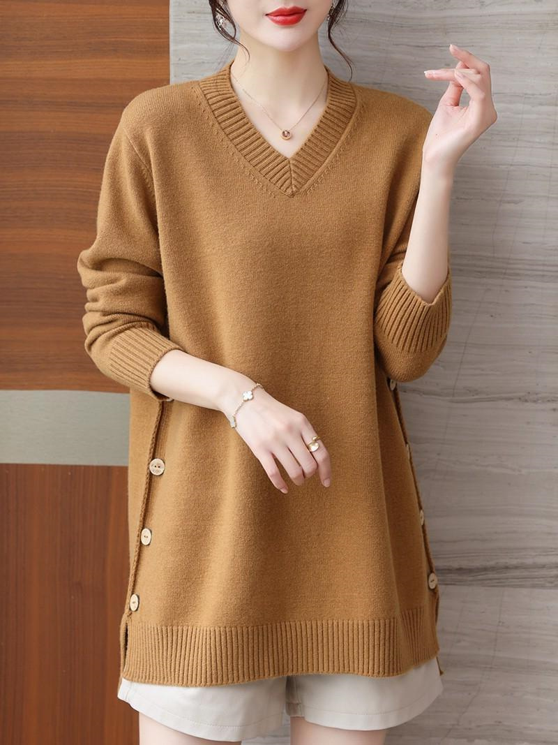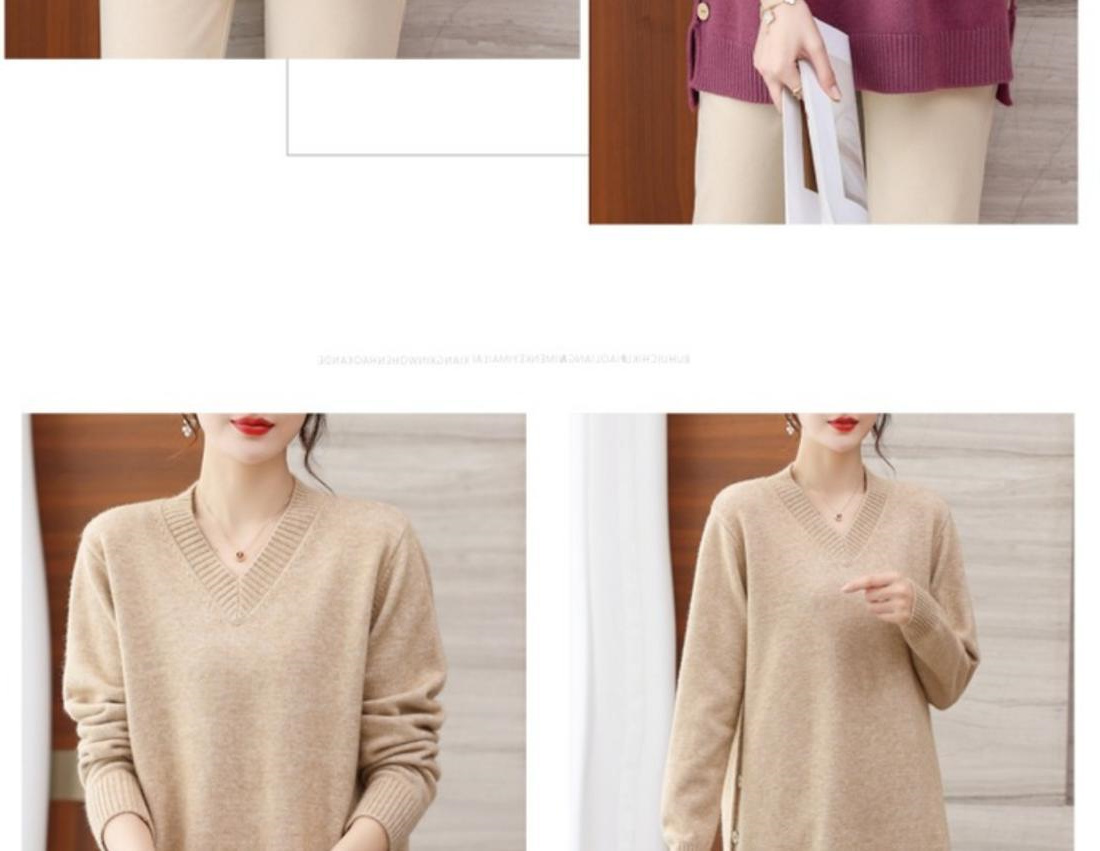 特大碼胖MM秋冬女裝新款針織V領打底輕熟風顯瘦遮肉寬松純色毛衣