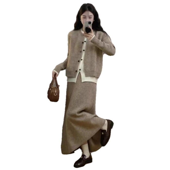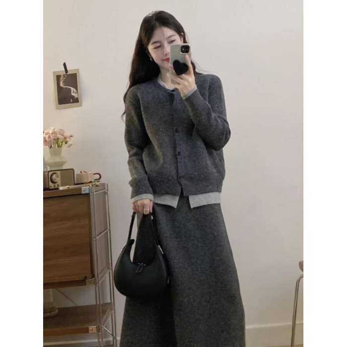 大碼女裝秋冬搭配一整套胖mm梨型巨顯瘦慵懶風松弛感糯米裙兩件套