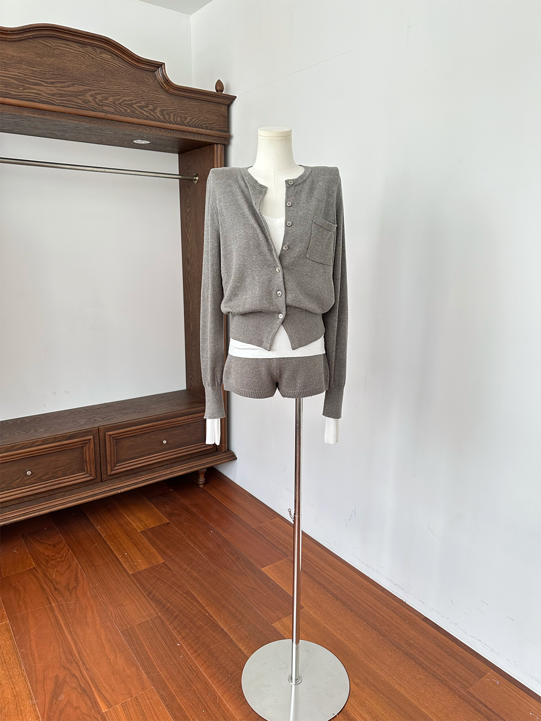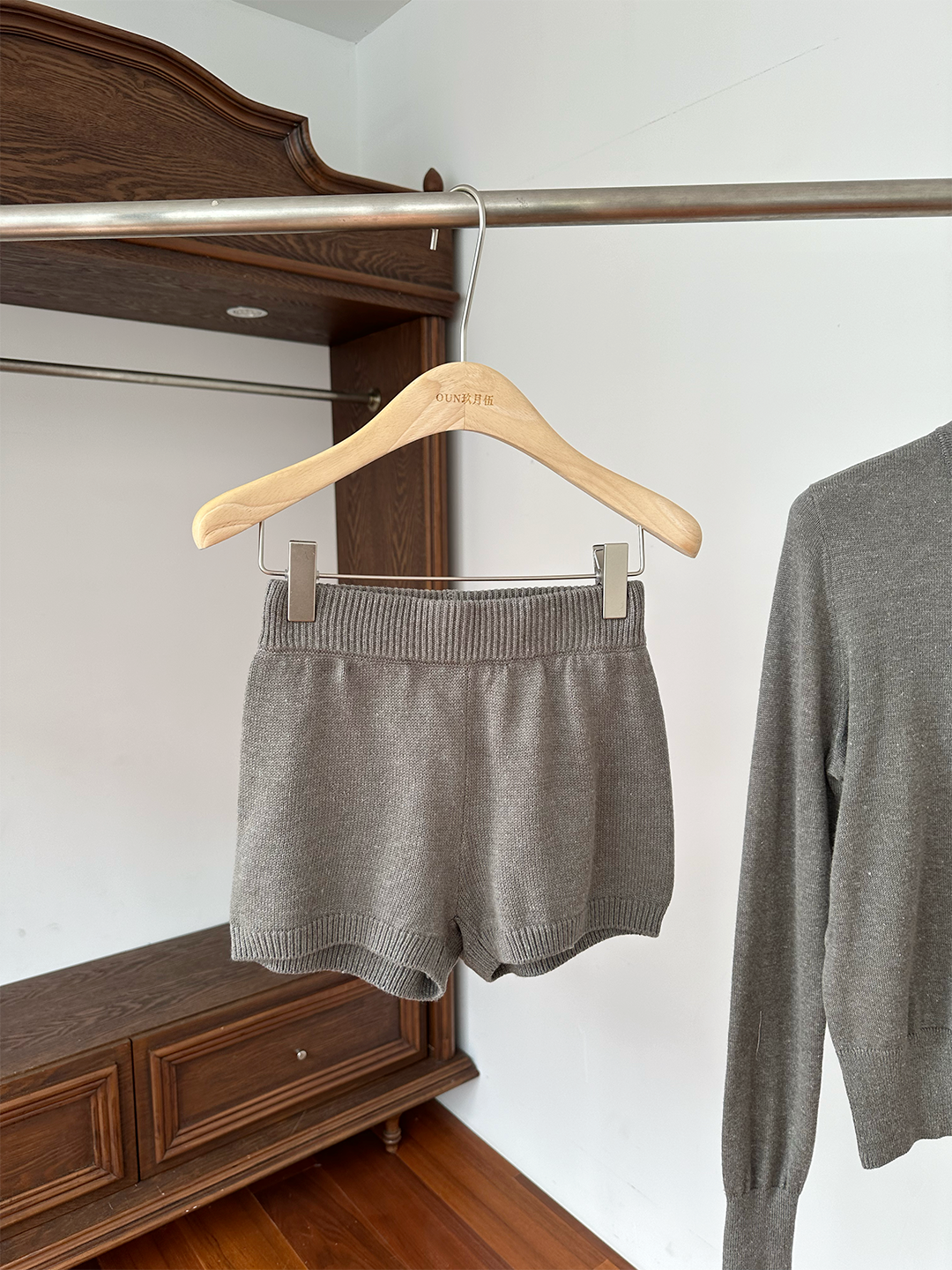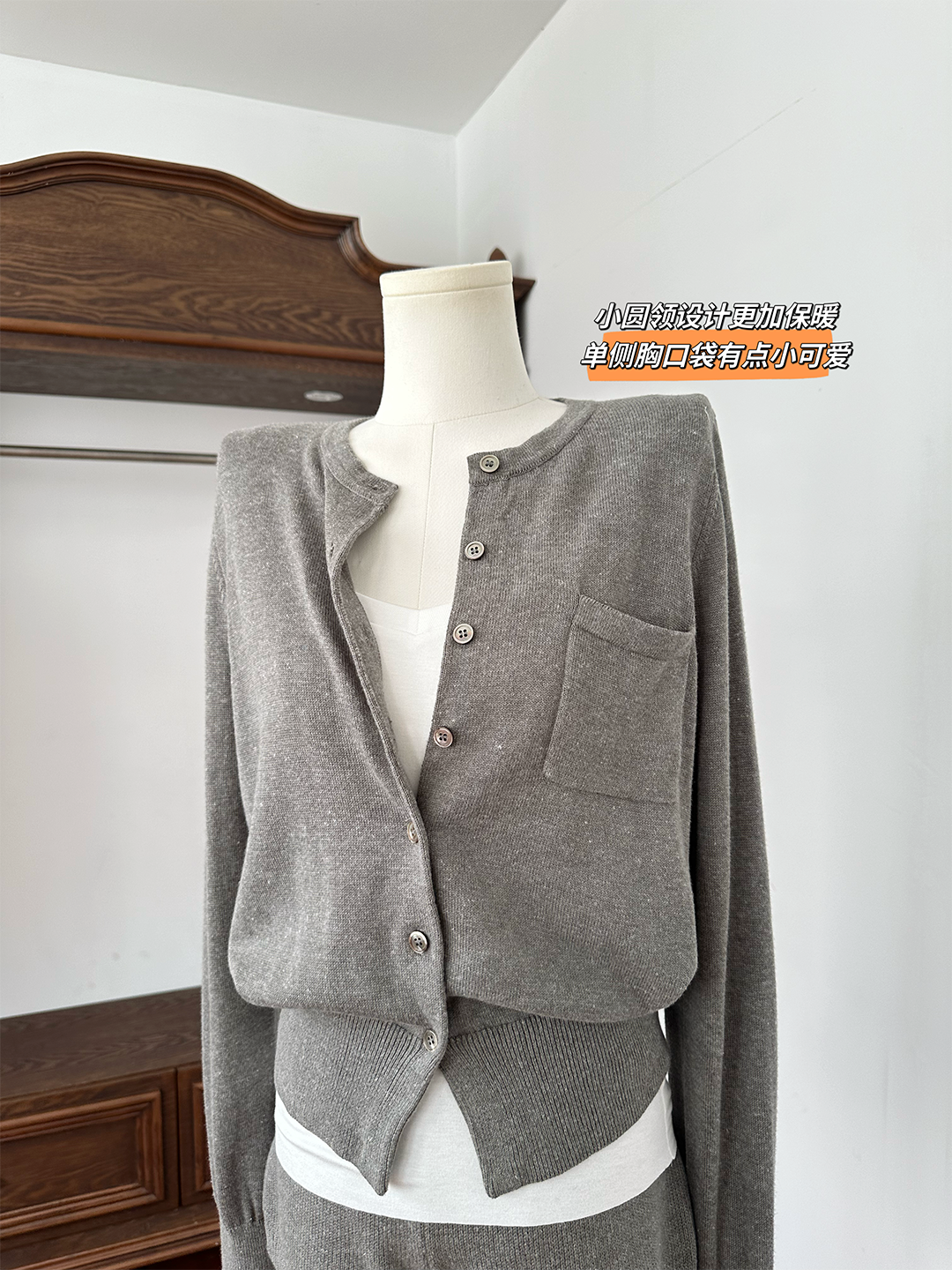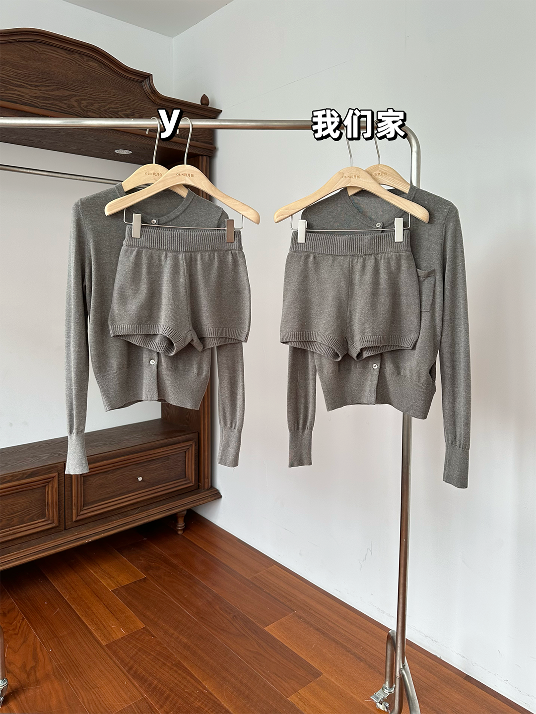 玖月伍 老錢風毛衣套裝女秋季慵懶休閒小圓領外套/毛織短褲兩件套