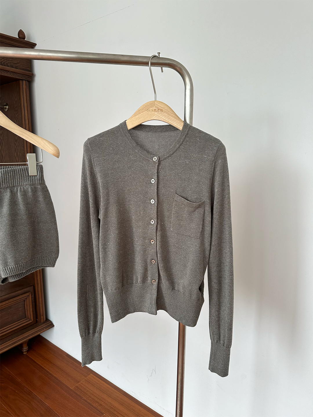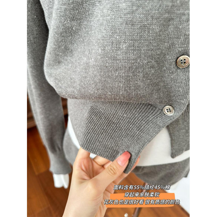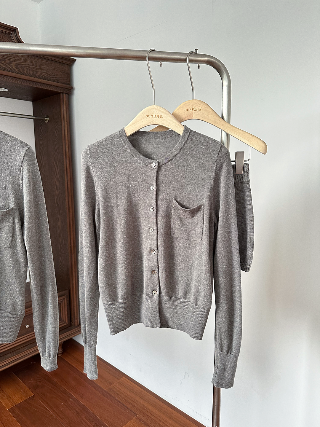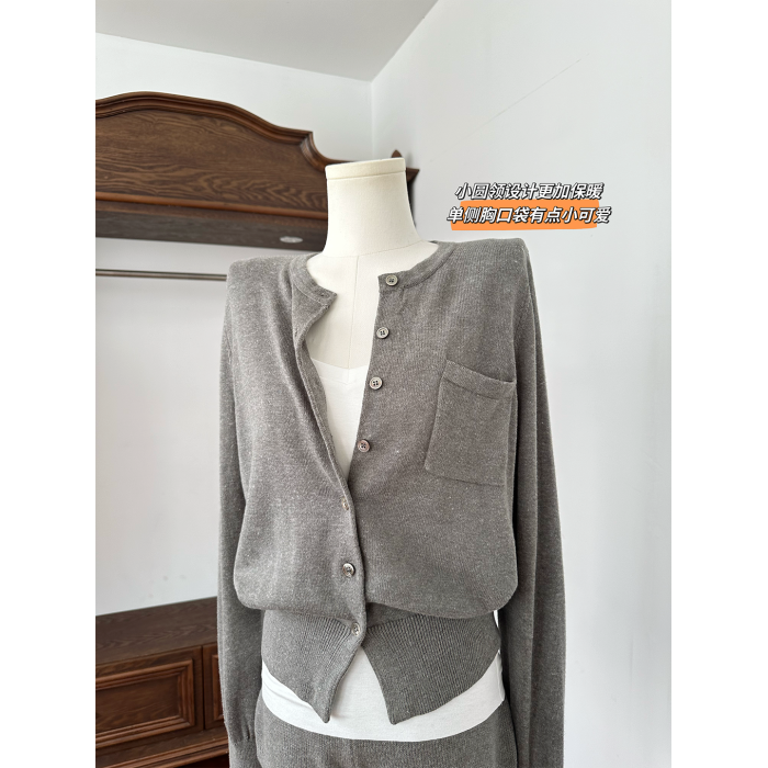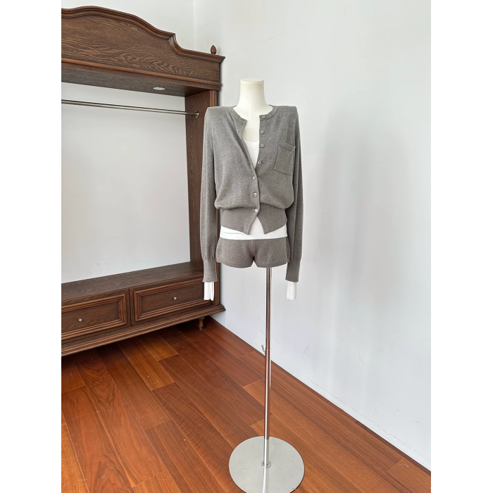 玖月伍 老錢風毛衣套裝女秋季慵懶休閒小圓領外套/毛織短褲兩件套