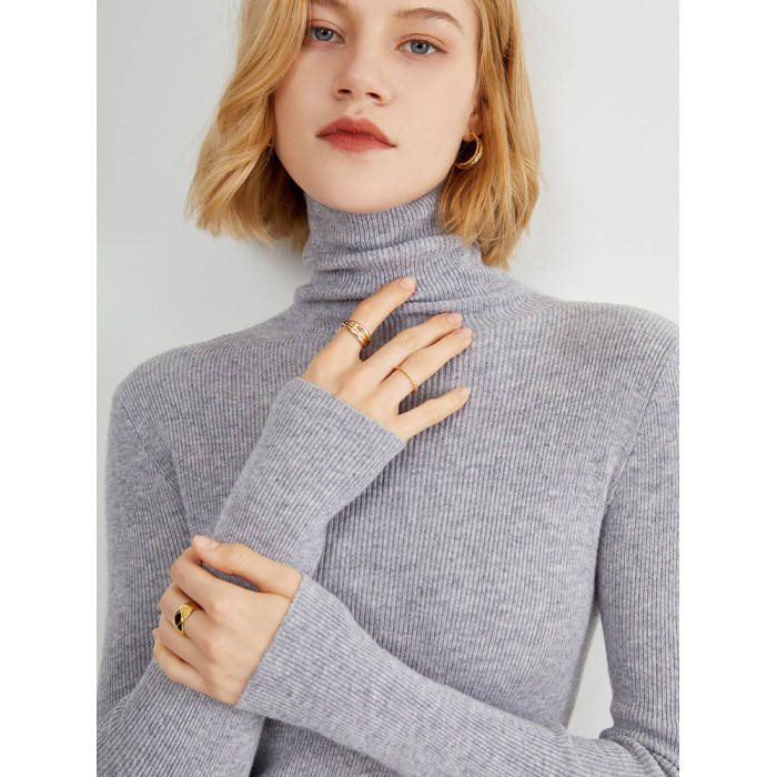 秋季堆堆領羊毛針織打底衫女洋氣高領羊絨衫內搭毛衣大碼加厚上衣