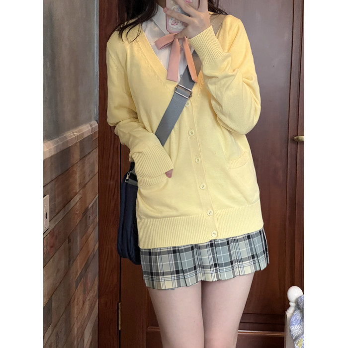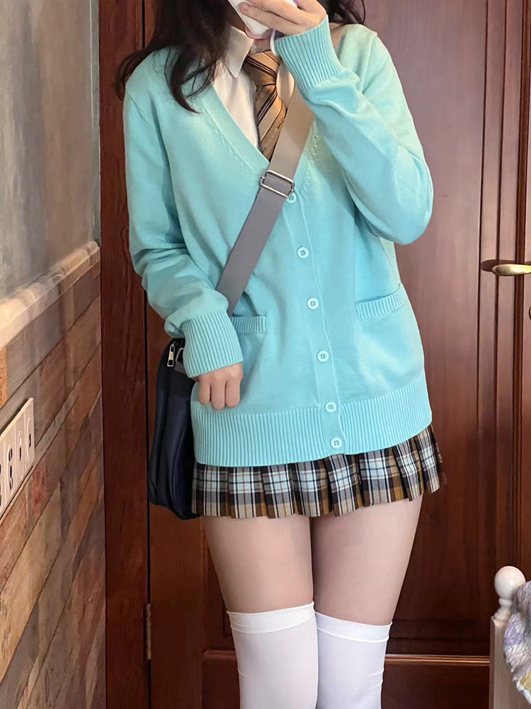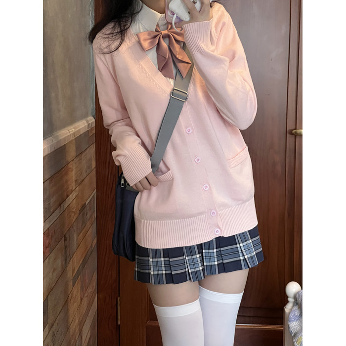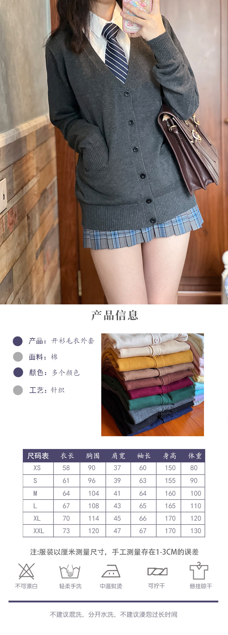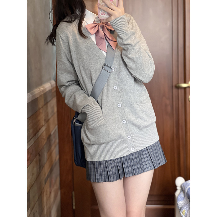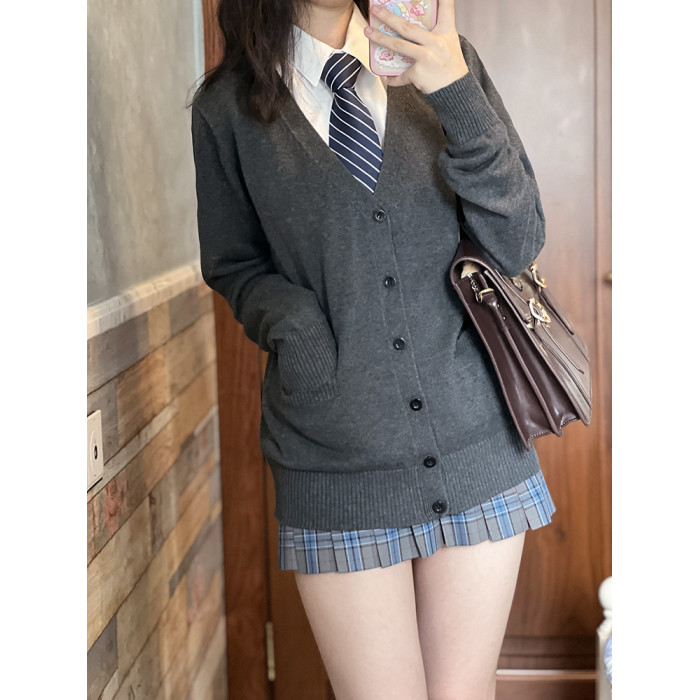 【LF原創開衫】基礎款日系百搭學院風校供感深灰針織衫JK製服毛衣