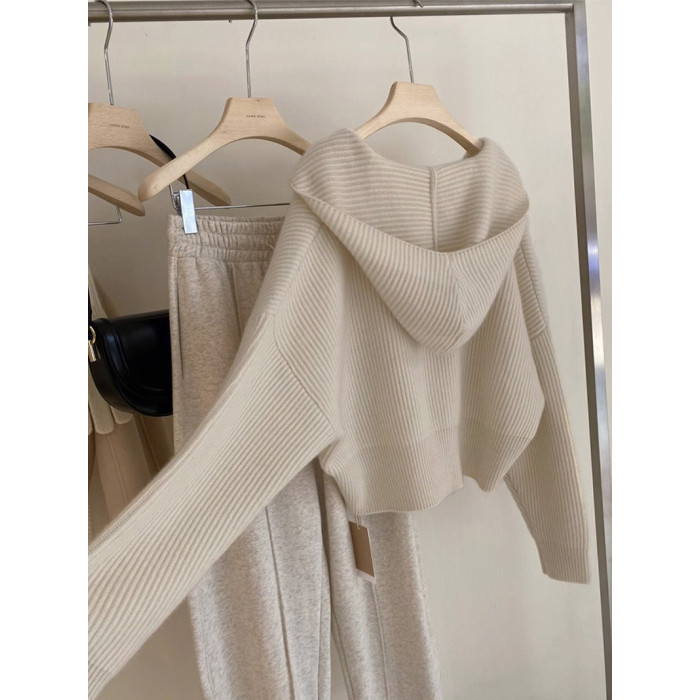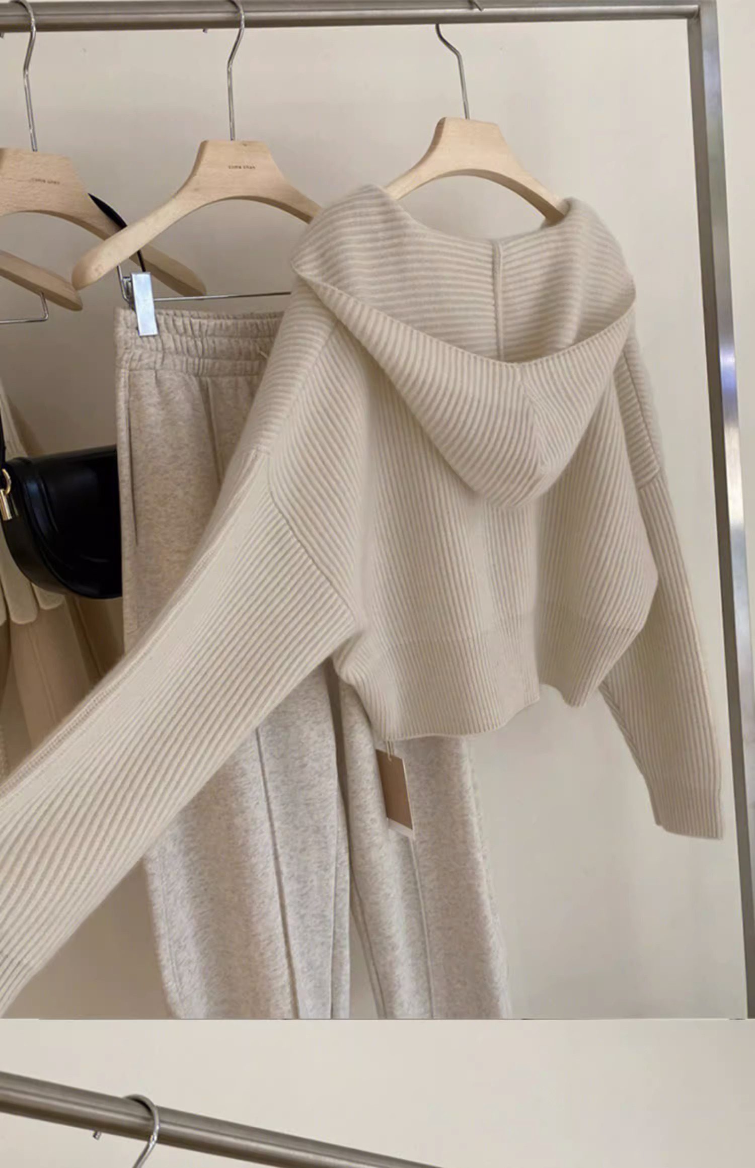 奶fufu連帽毛衣女秋冬寬松小衆設計慵懶高級感軟糯短款針織衫外套