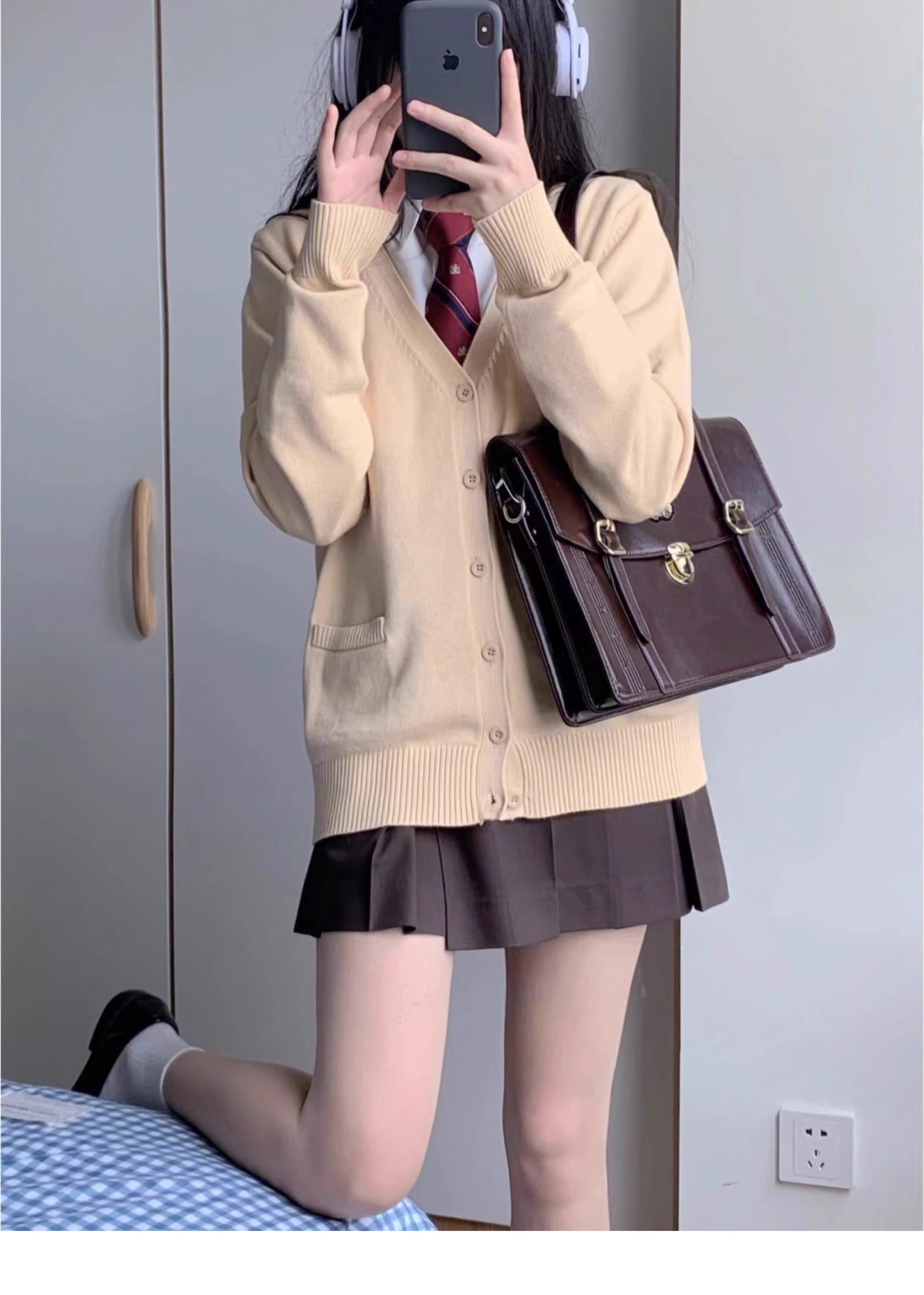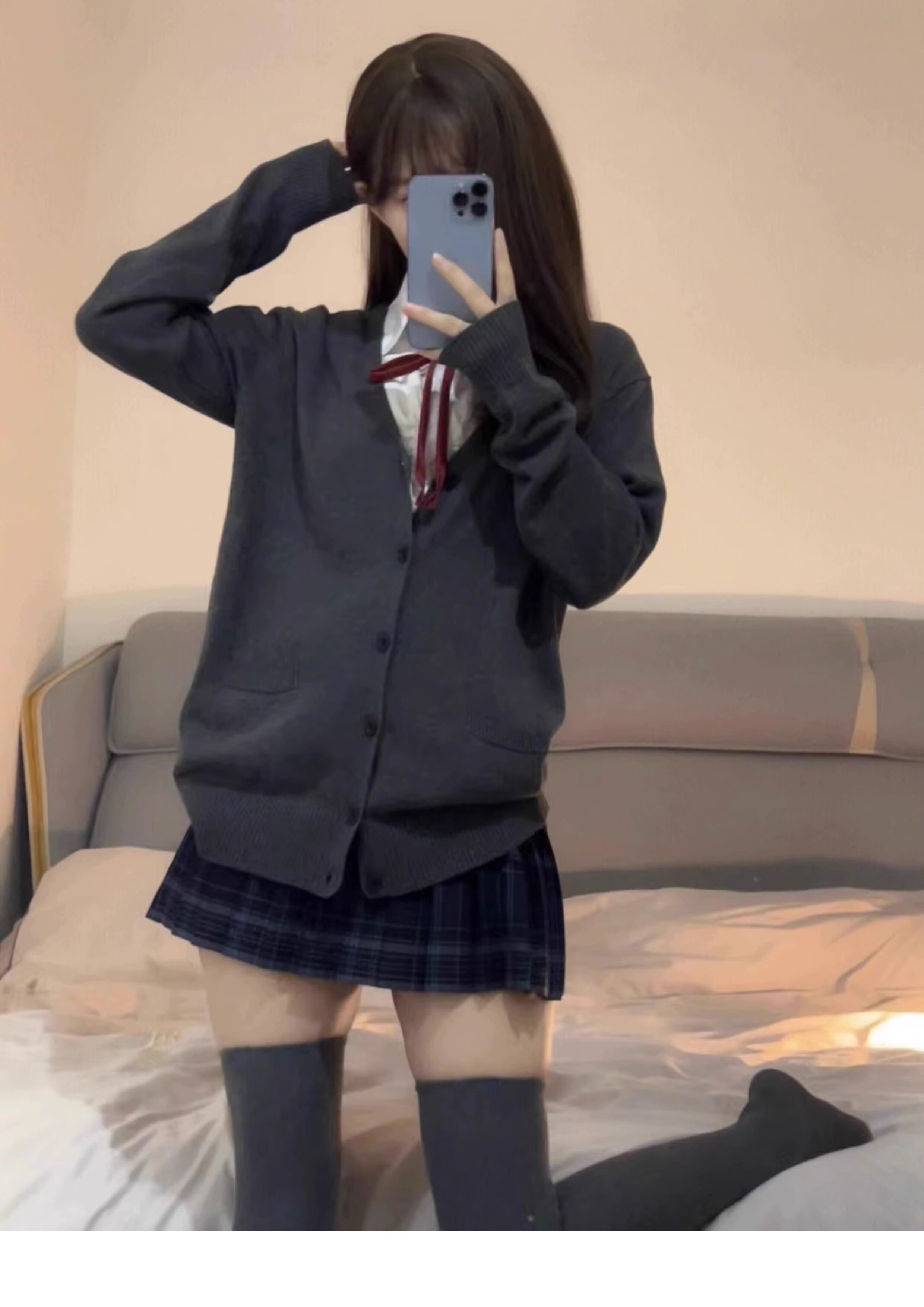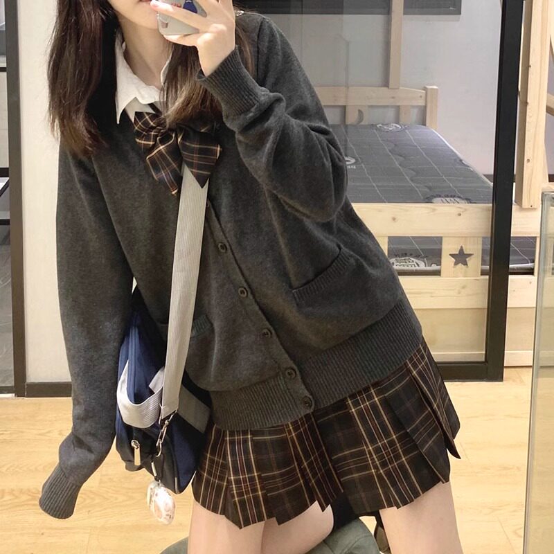 原創JK毛衣開衫外套女春秋日系學院風製服校供感深灰長袖針織上衣