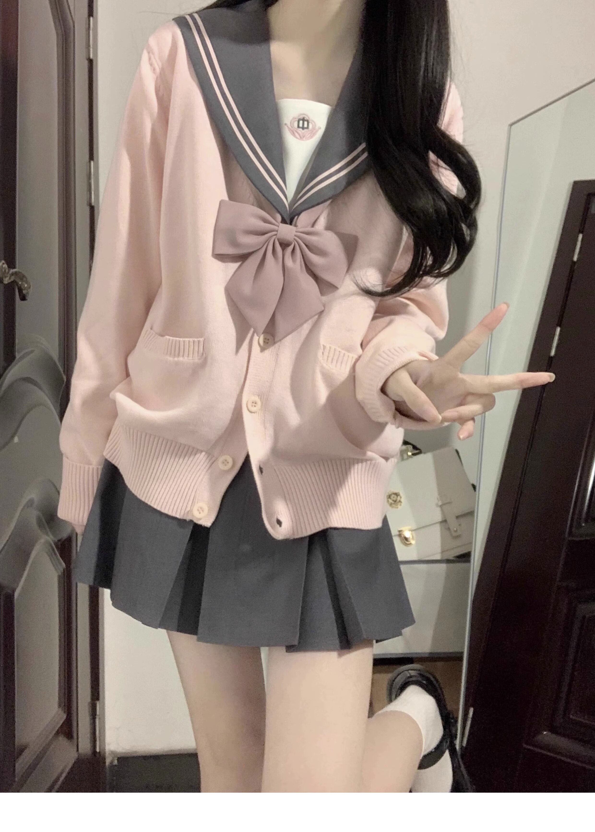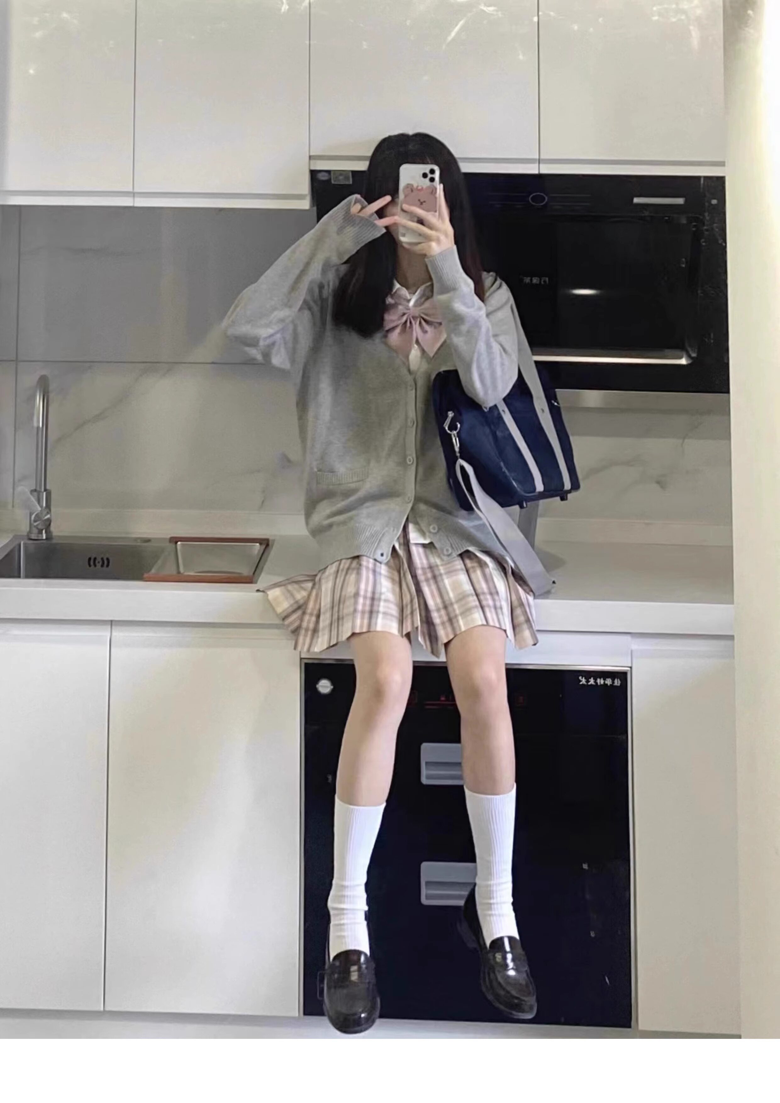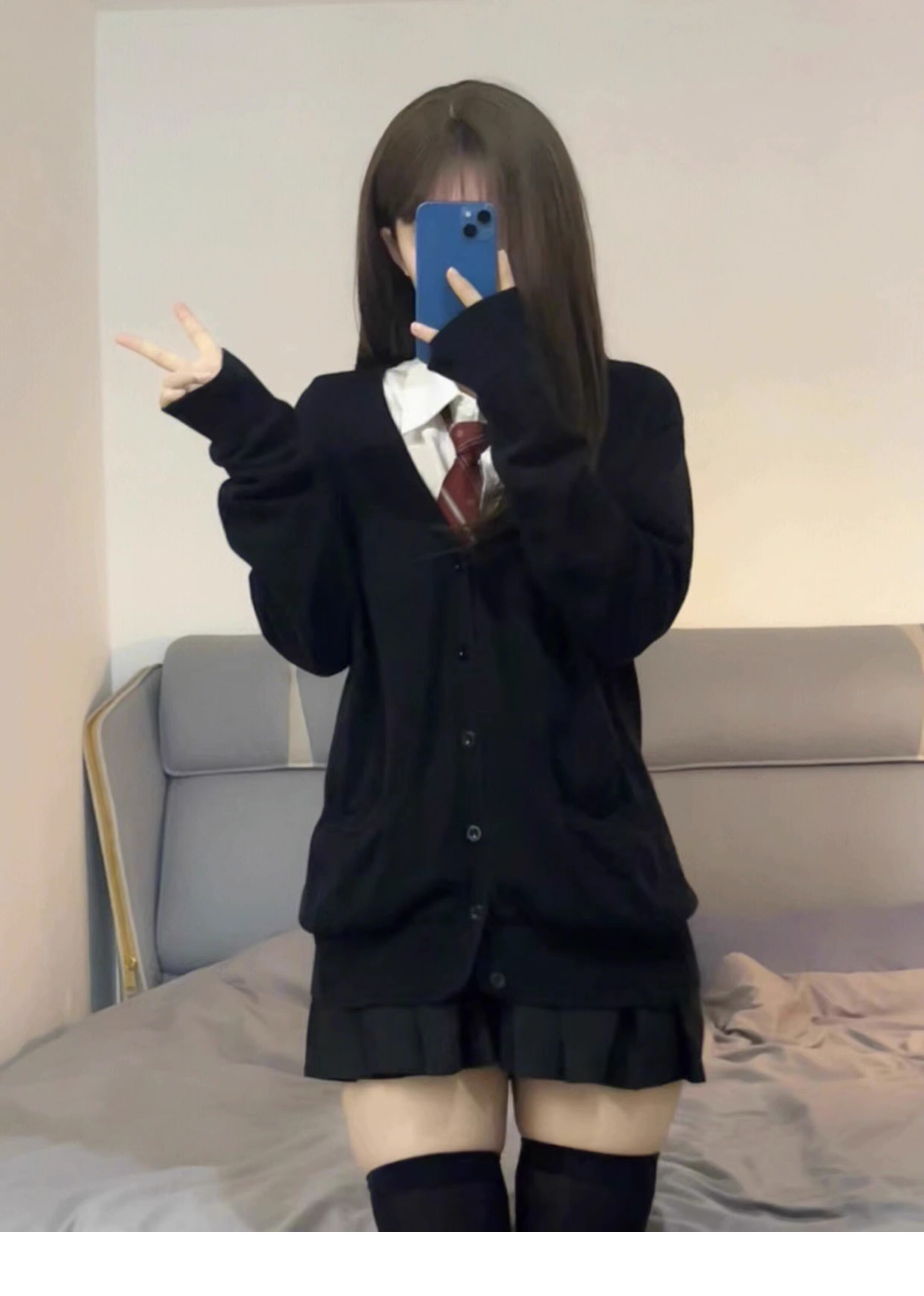 原創JK毛衣開衫外套女春秋日系學院風製服校供感深灰長袖針織上衣