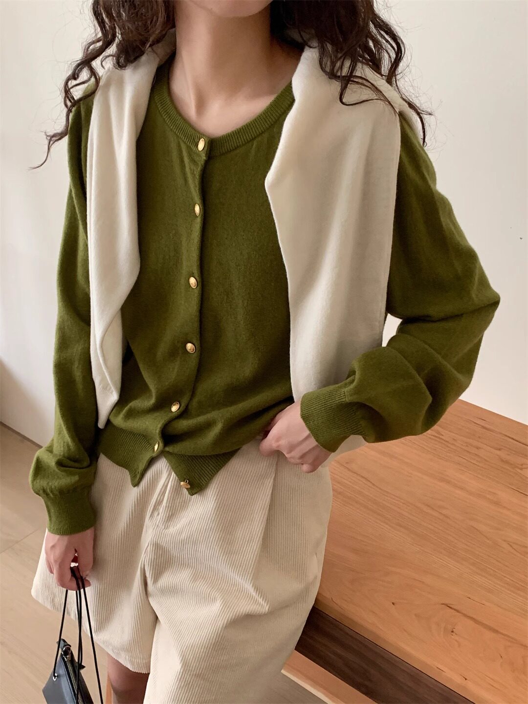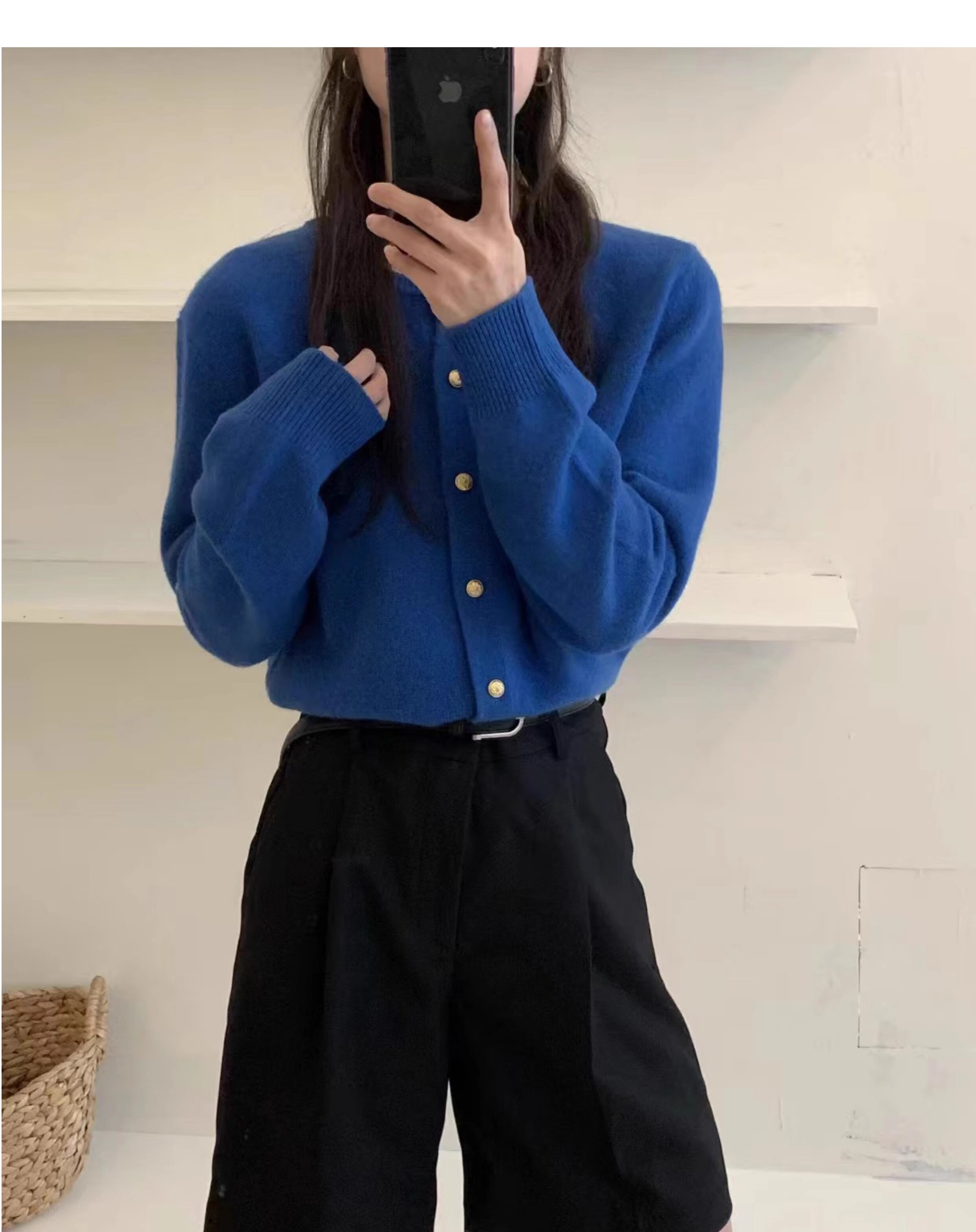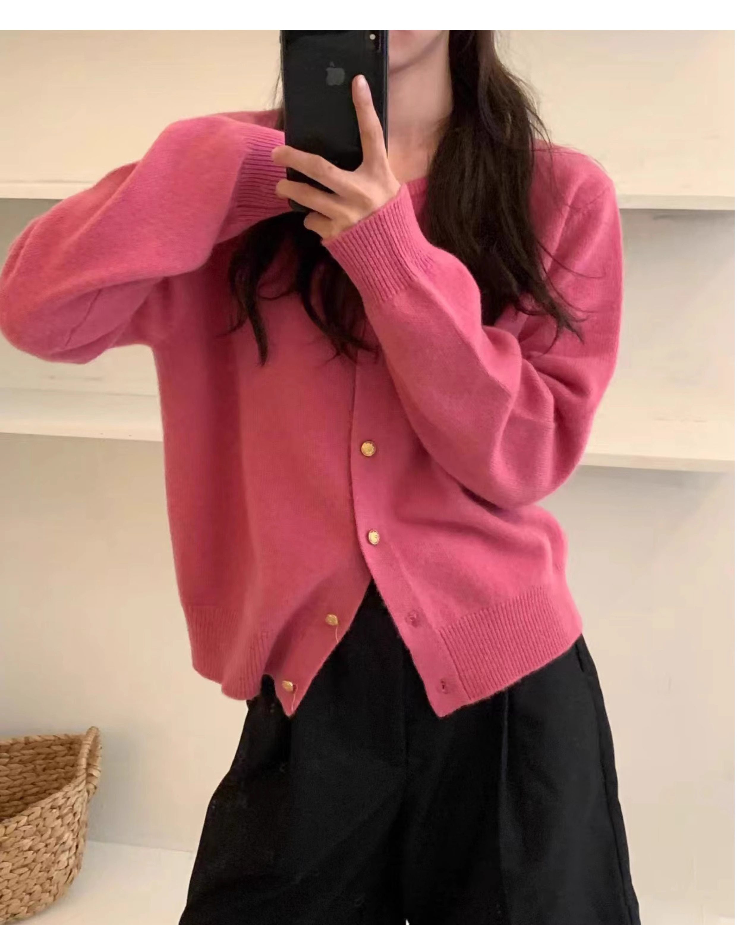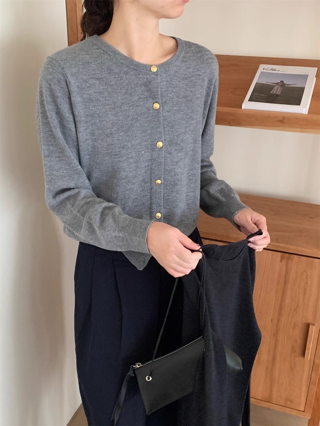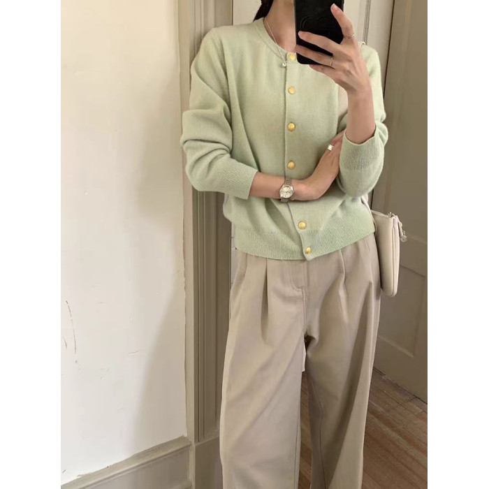 韓國東大門雞蛋家羊毛開衫女金釦毛衣針織衫2024秋款外套軟糯