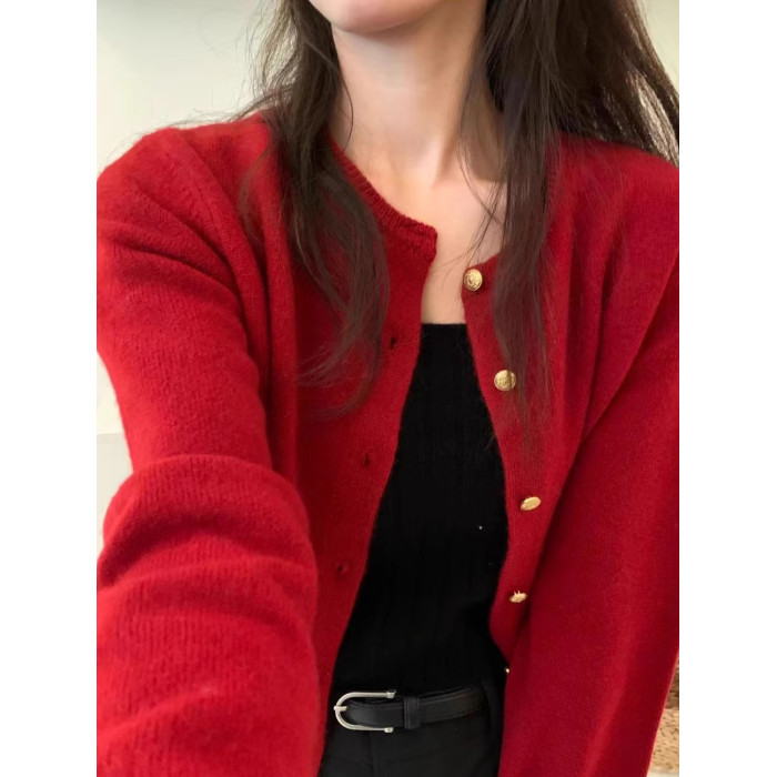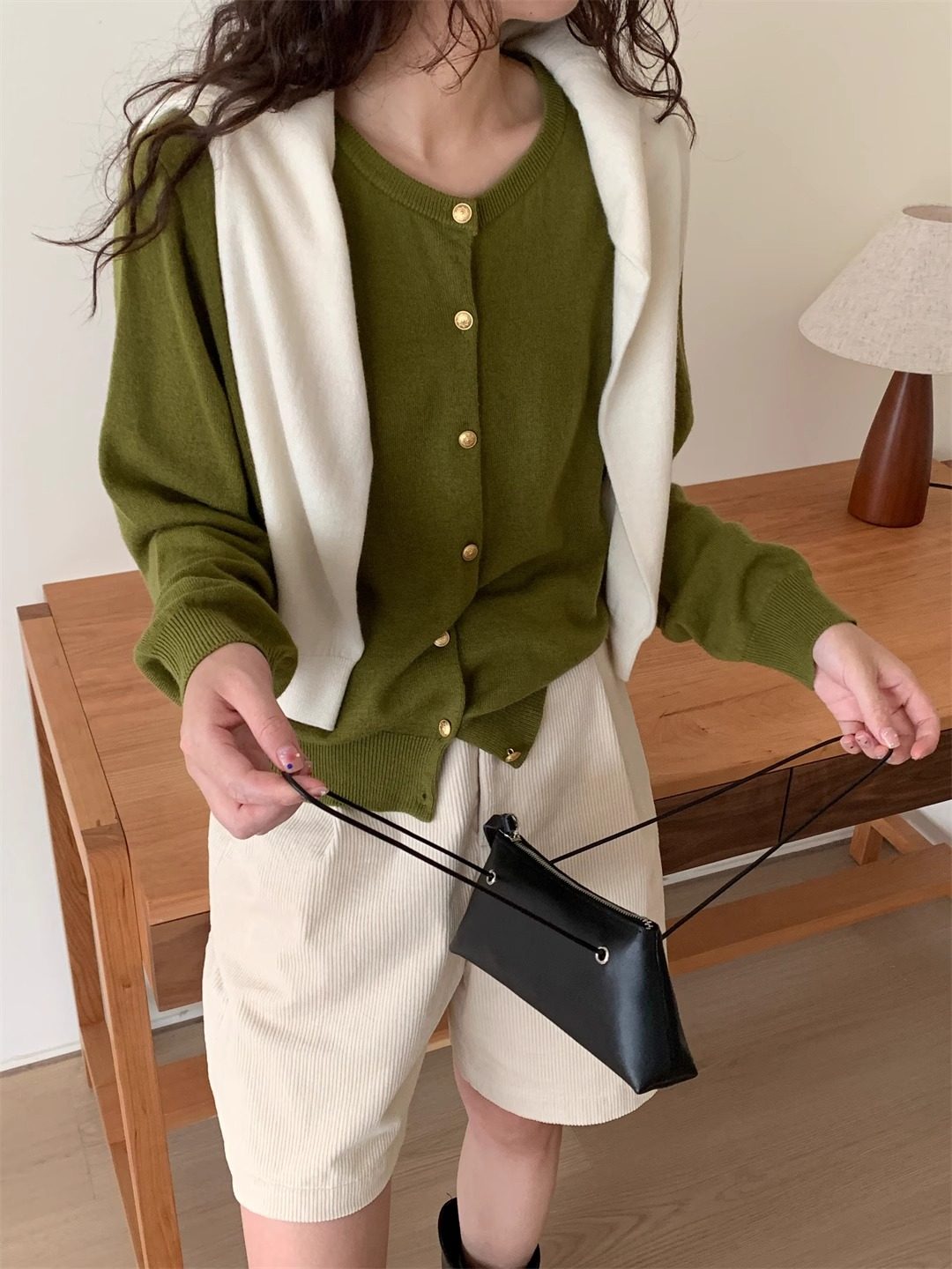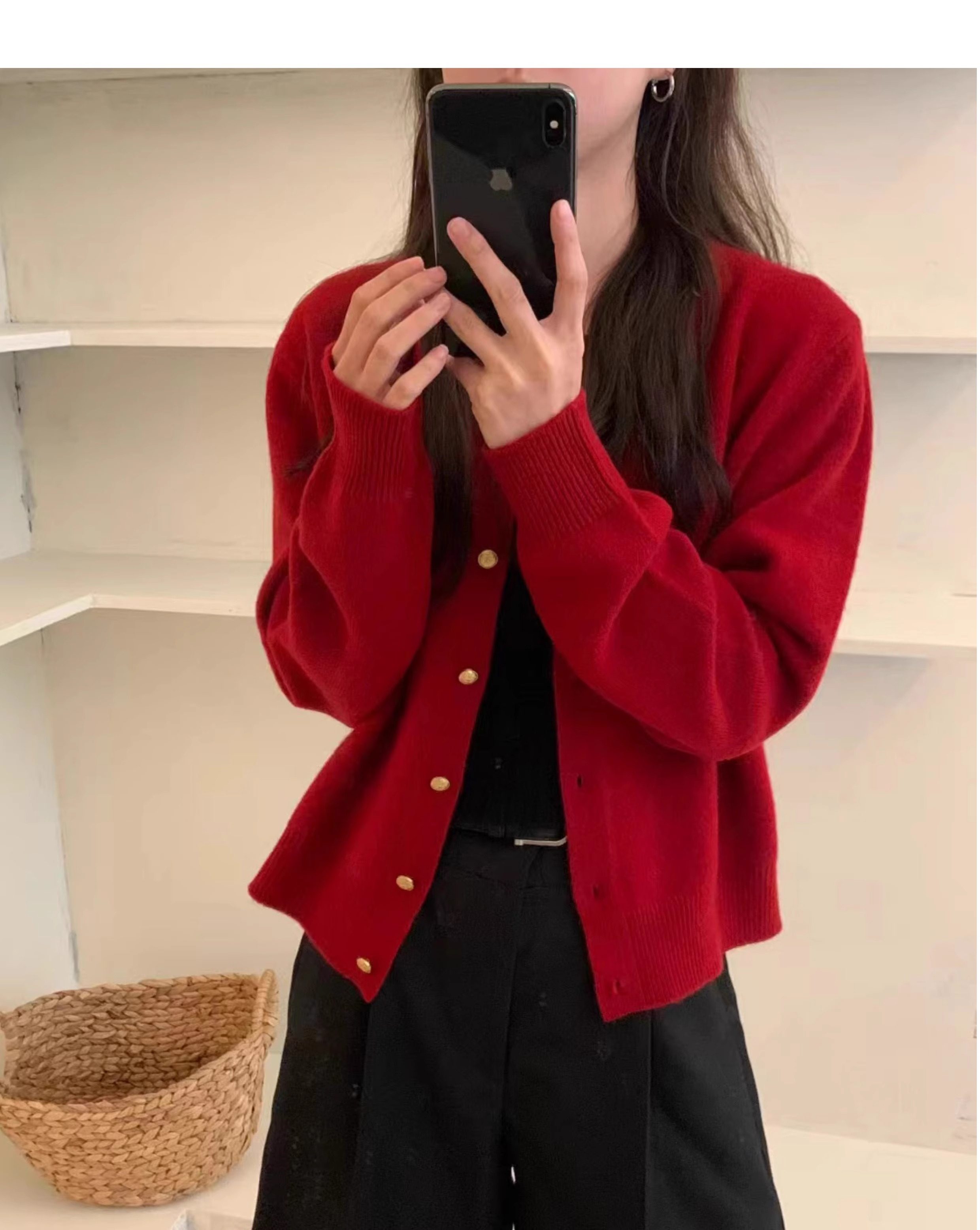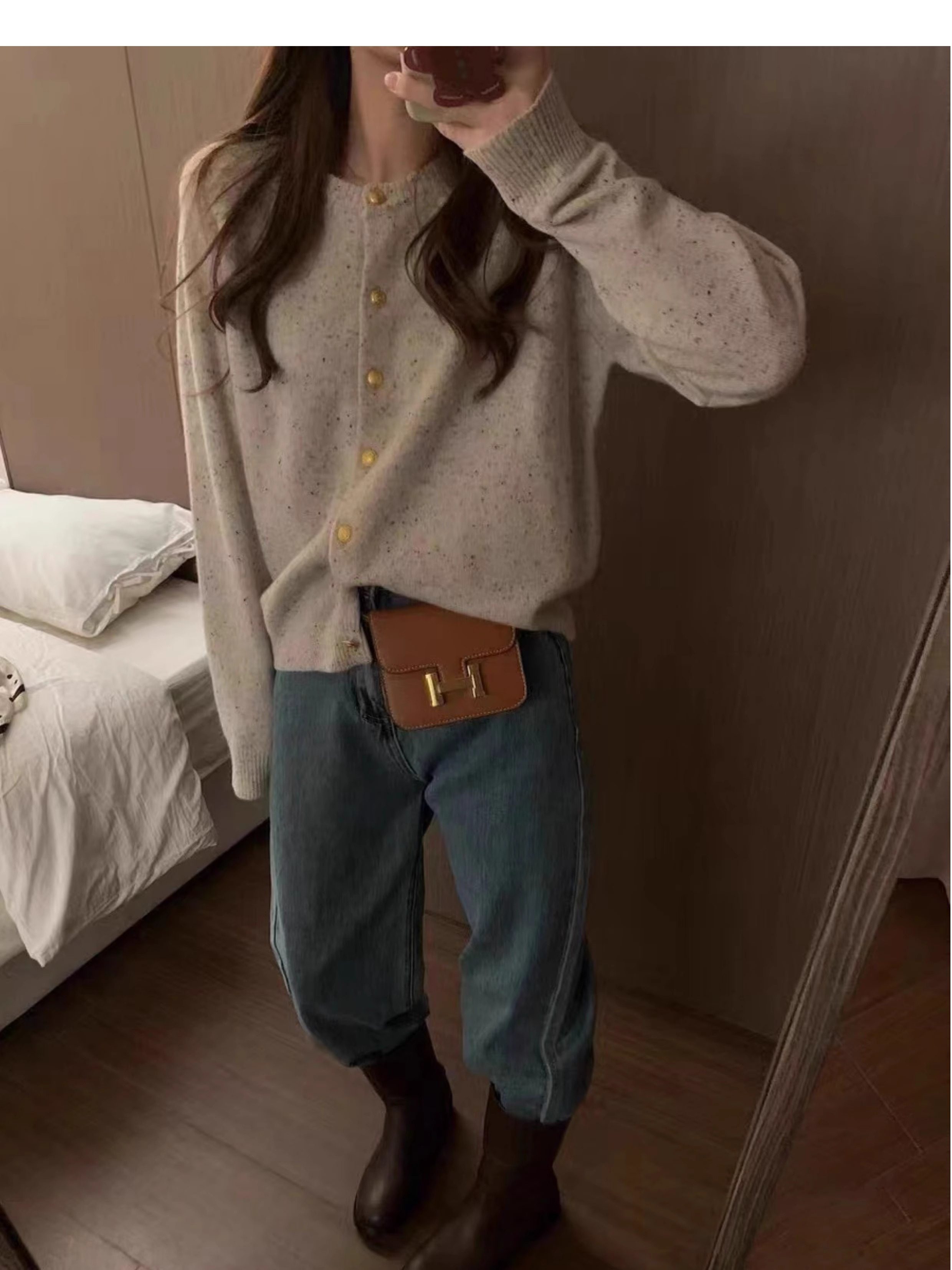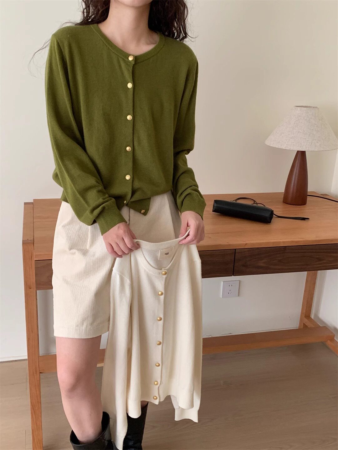 韓國東大門雞蛋家羊毛開衫女金釦毛衣針織衫2024秋款外套軟糯