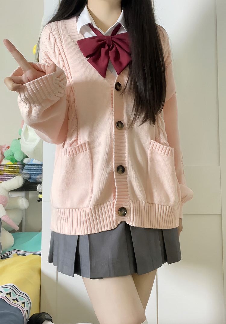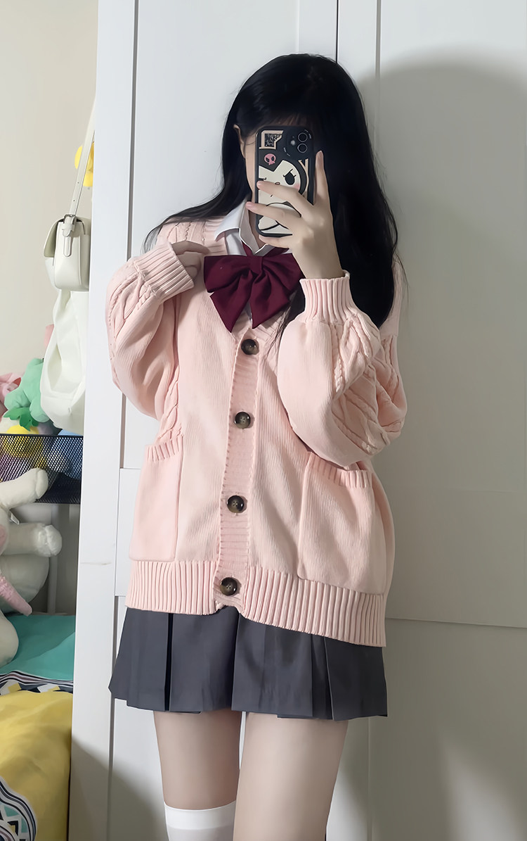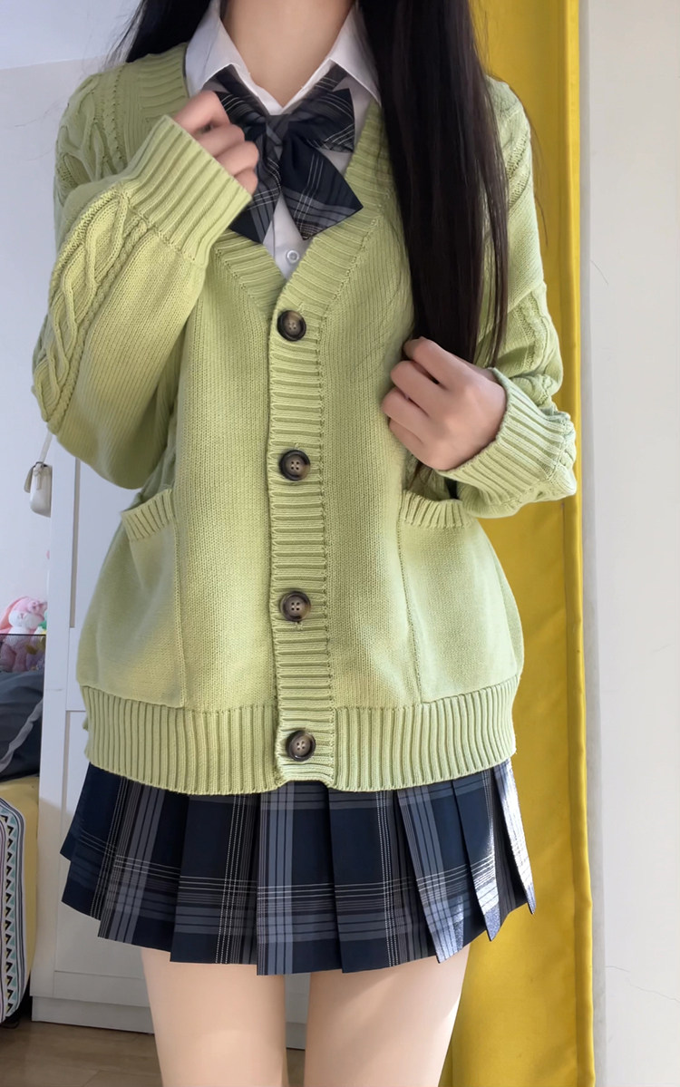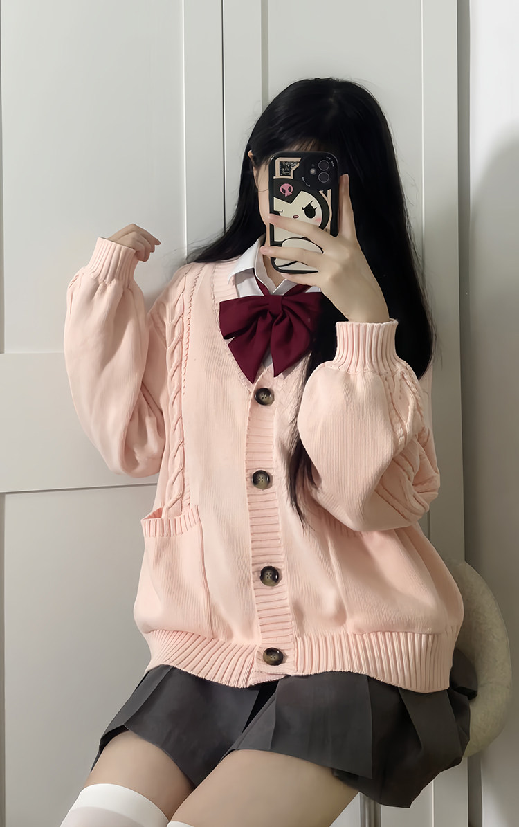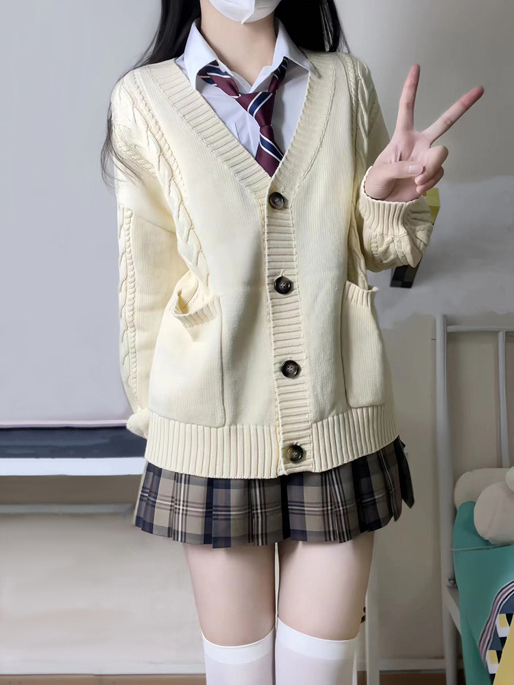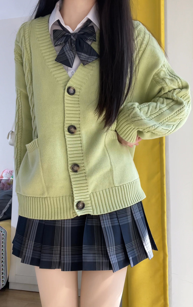 【LF原創開衫】寬松慵懶麻花針織衫日系百搭學院風JK製服軟糯毛衣