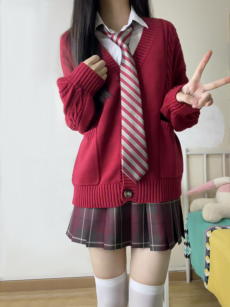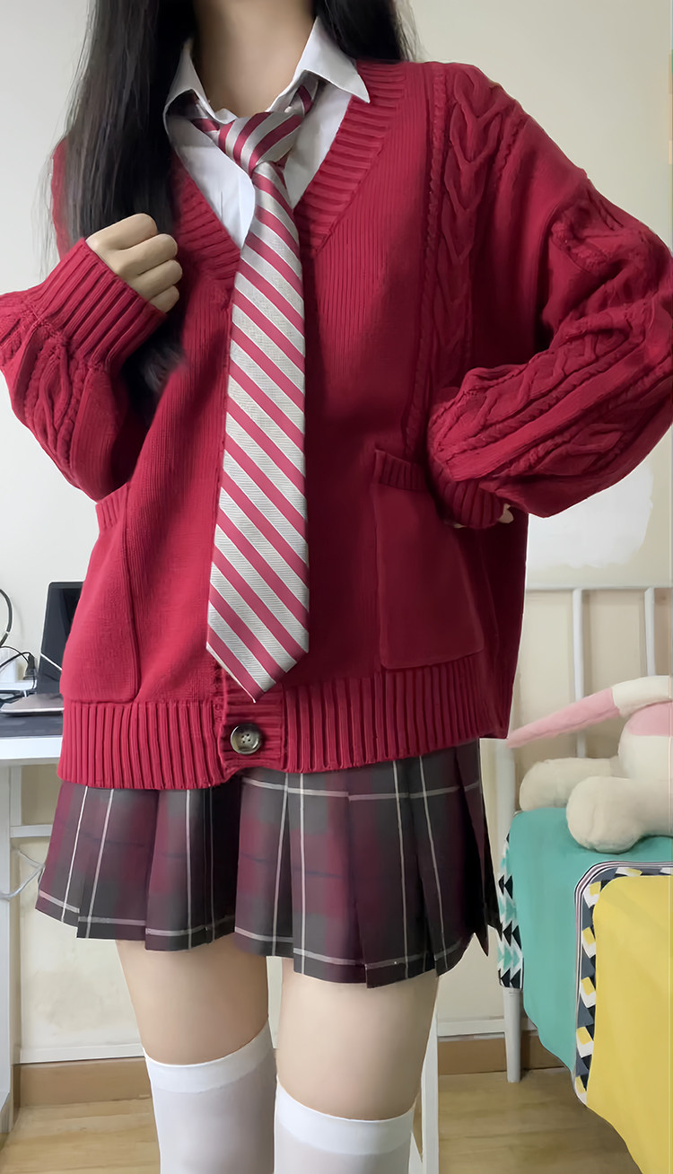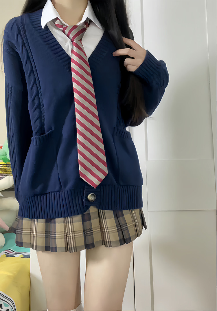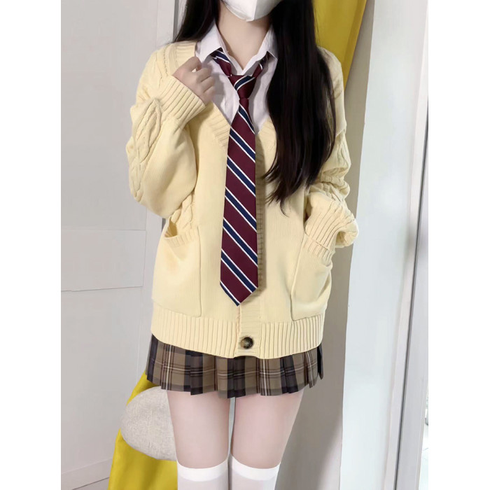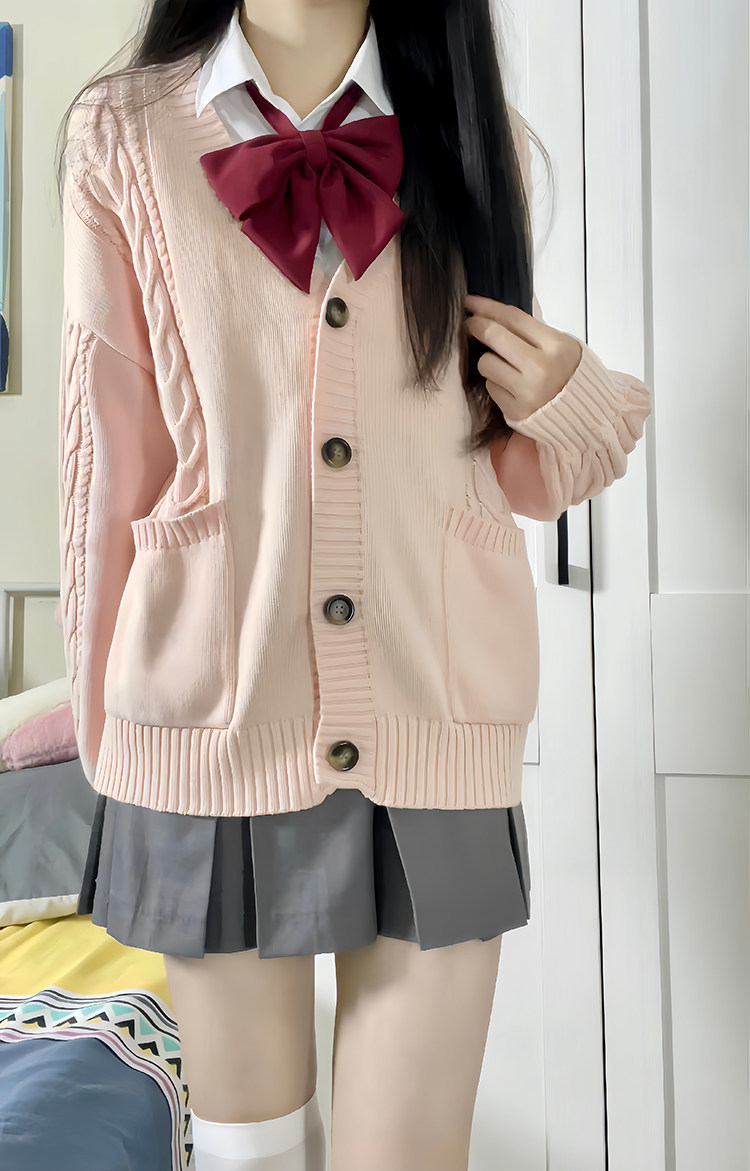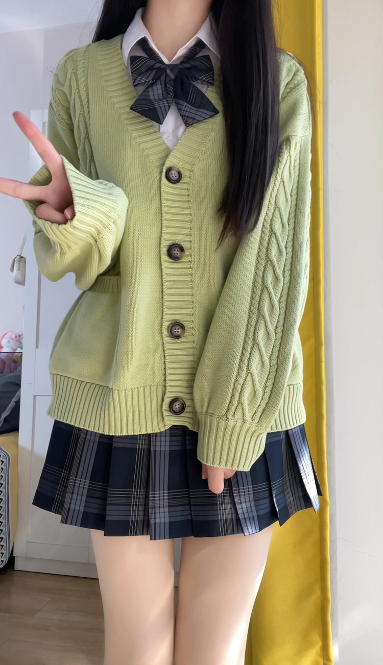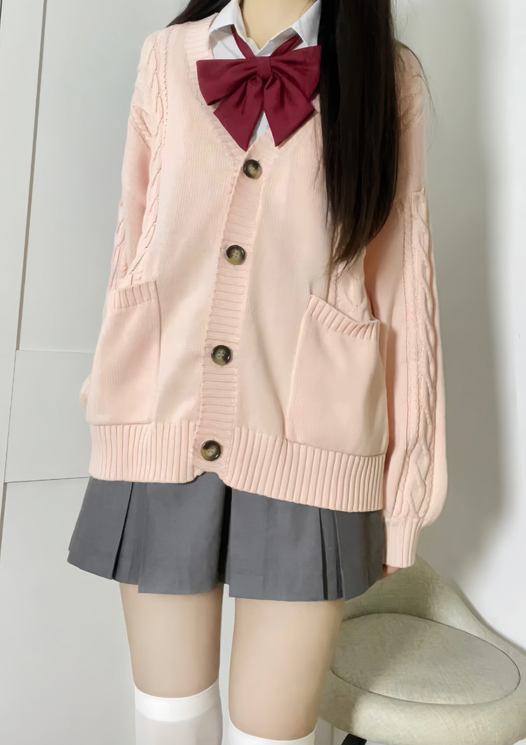 【LF原創開衫】寬松慵懶麻花針織衫日系百搭學院風JK製服軟糯毛衣