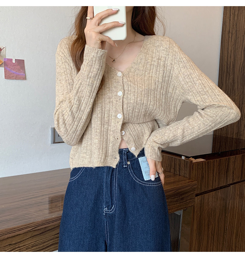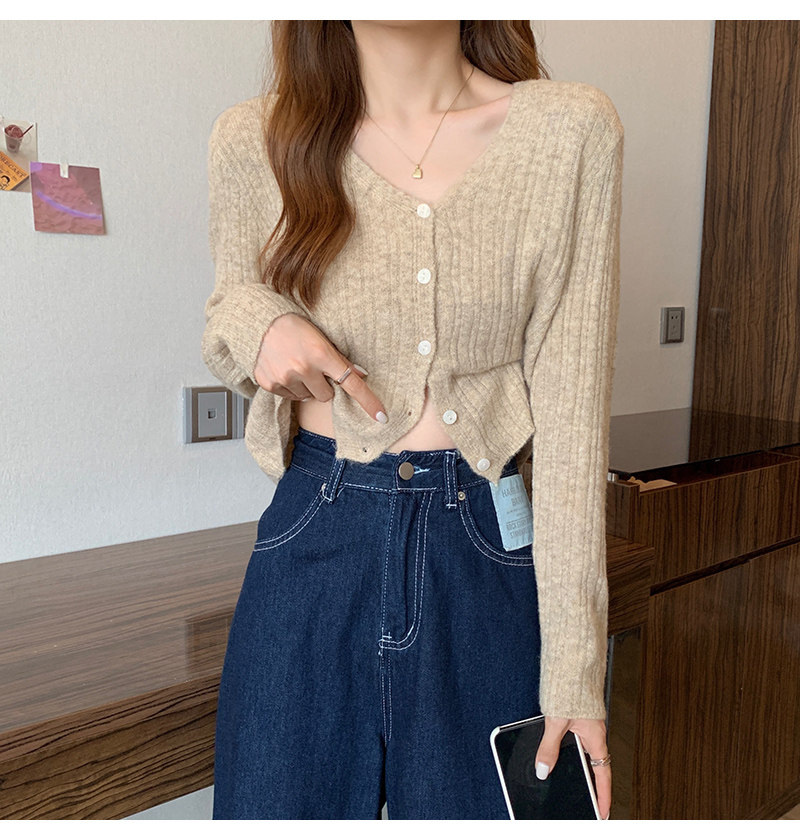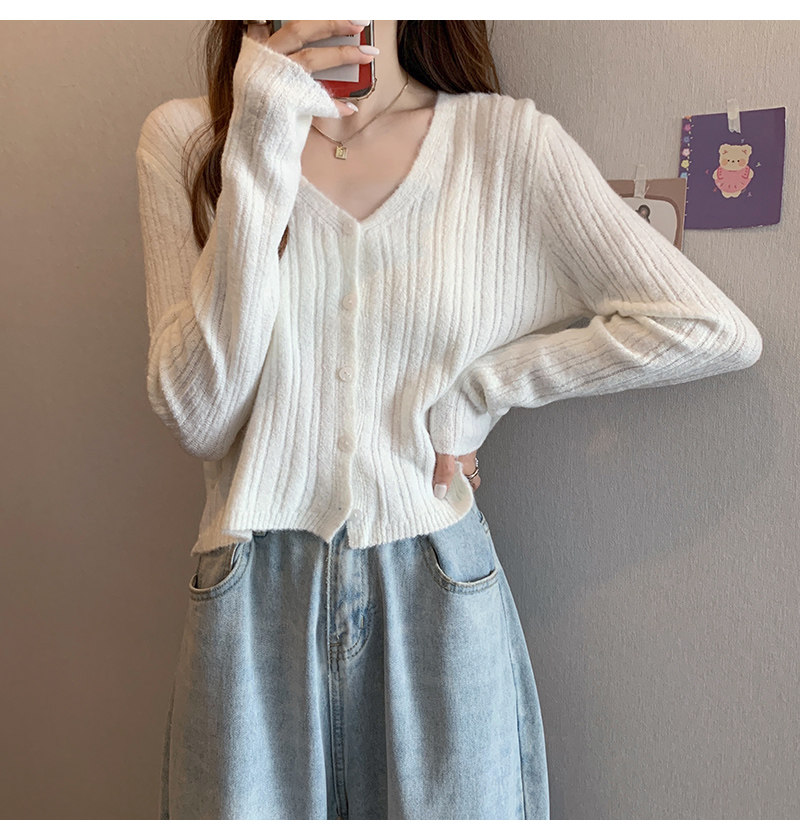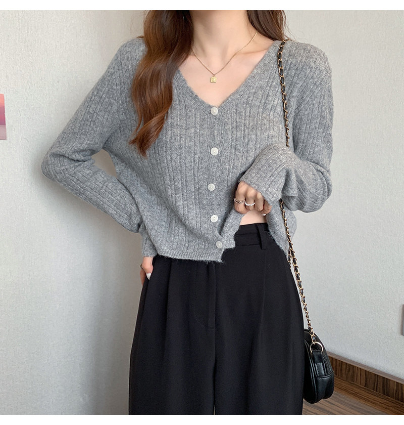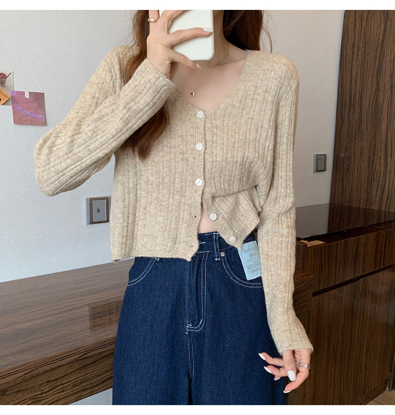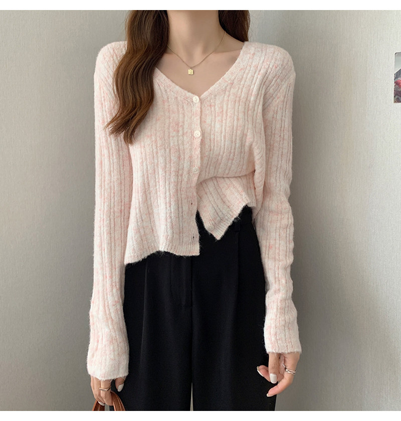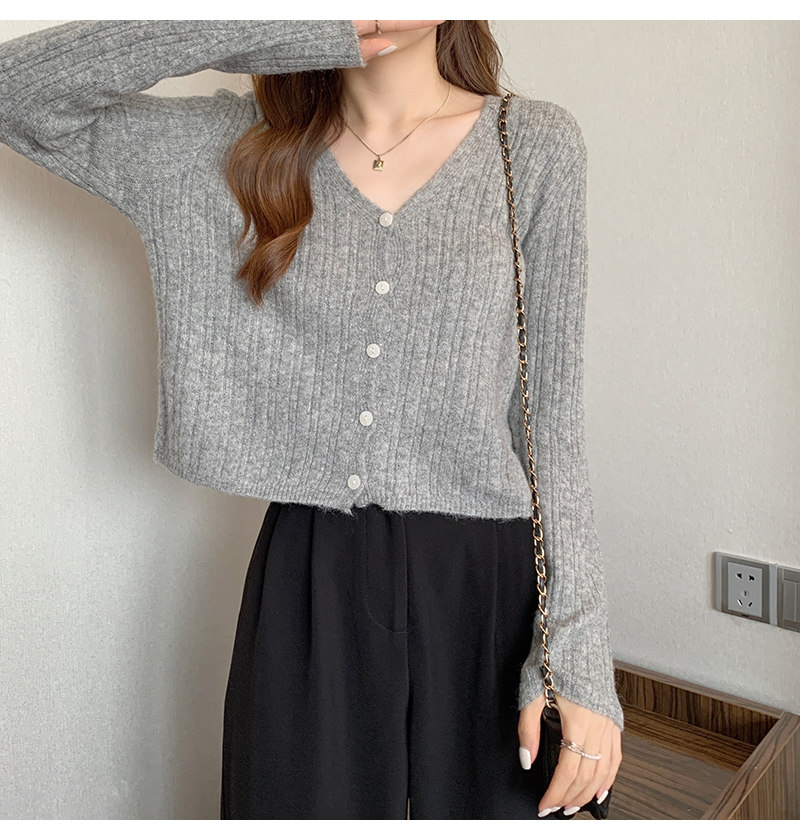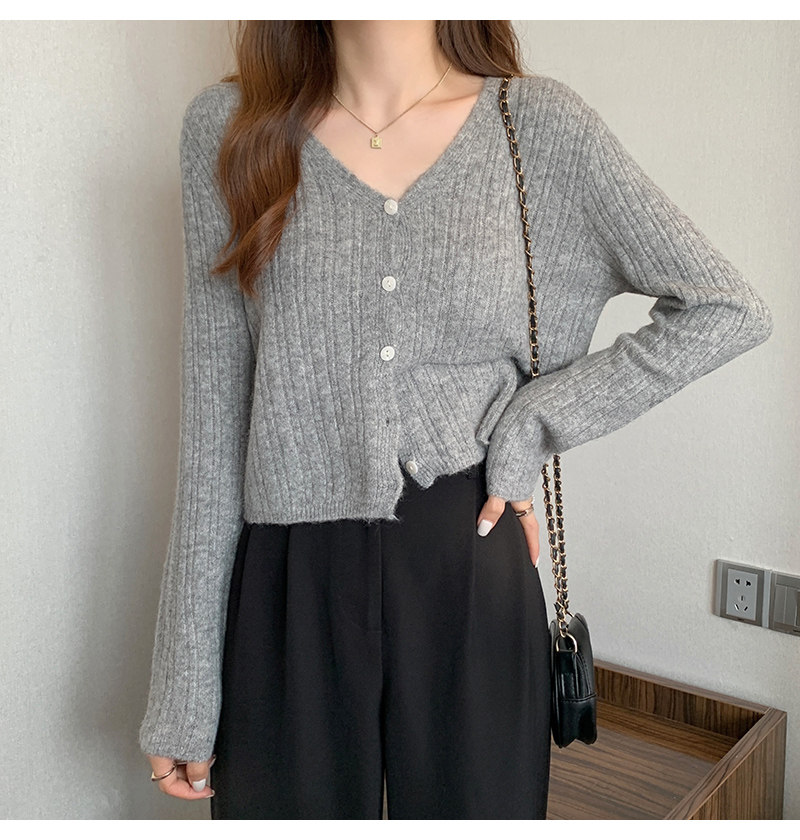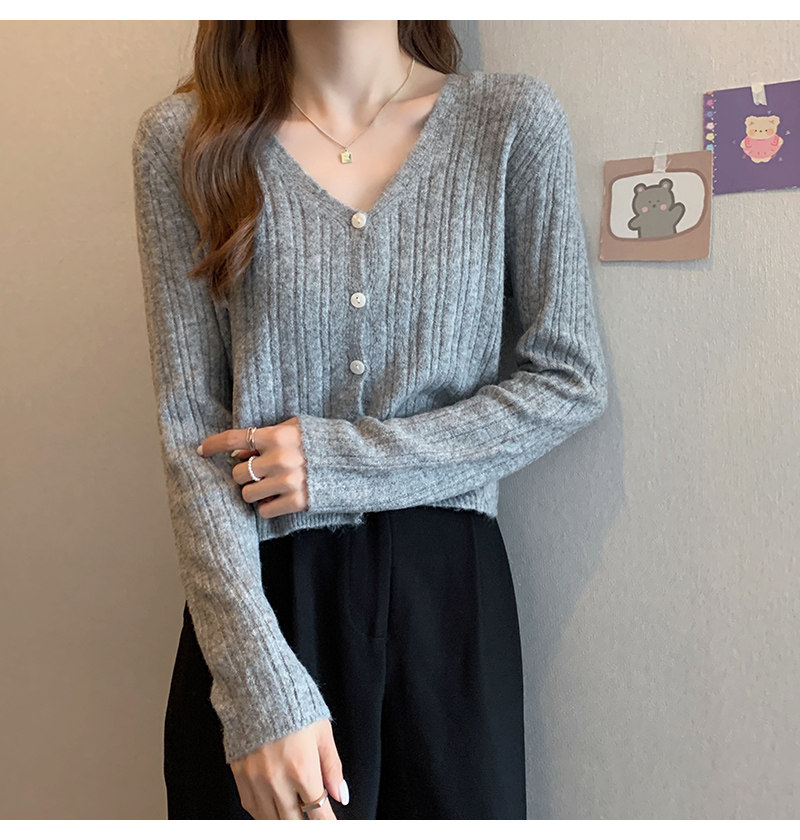 秋冬v領打底衫女內搭設計感小衆針織衫法式別致短款上衣外套開衫