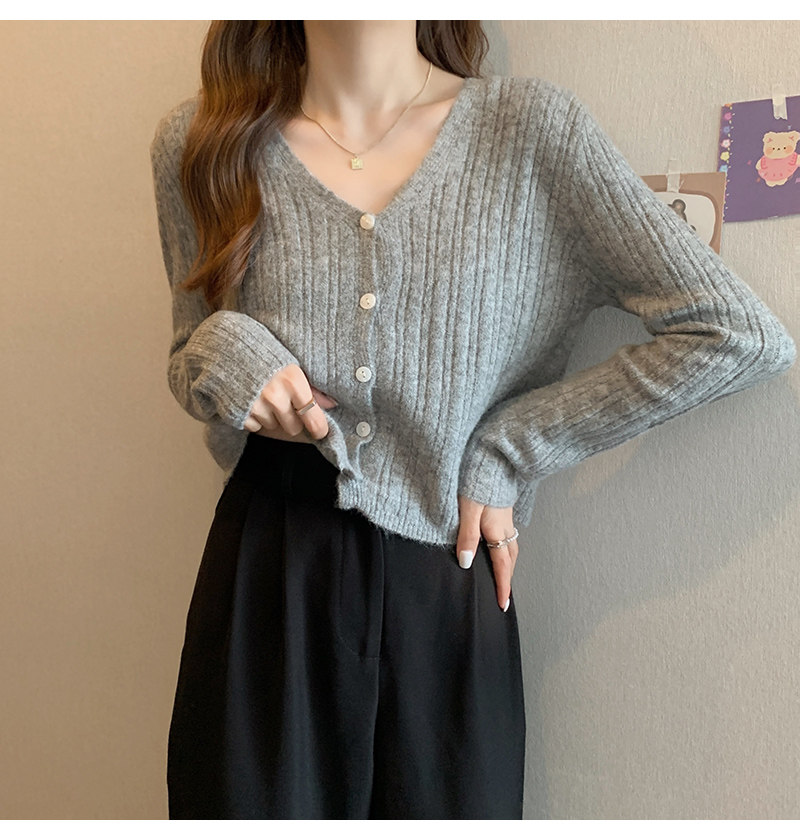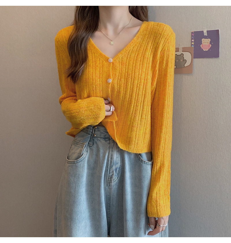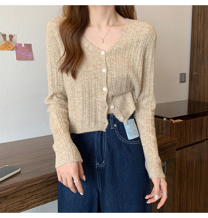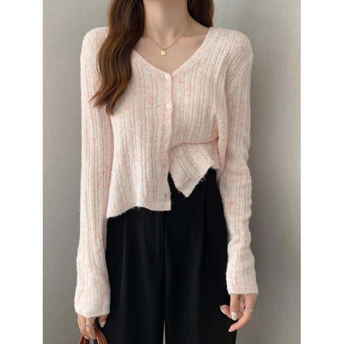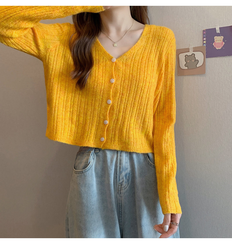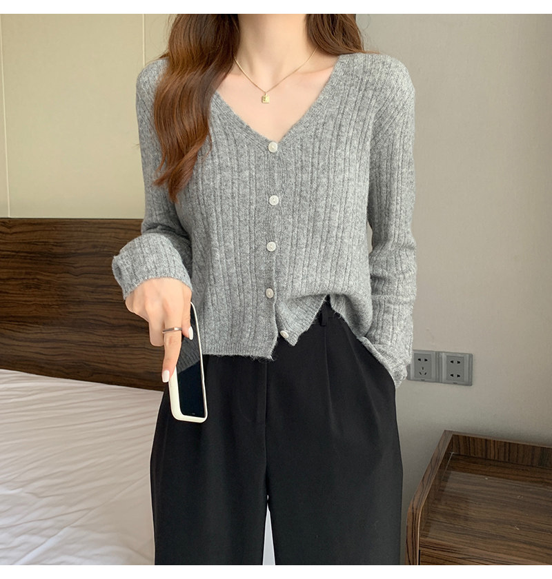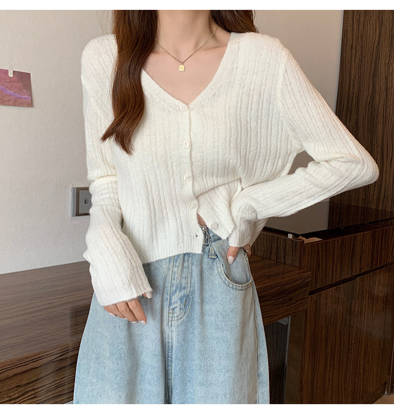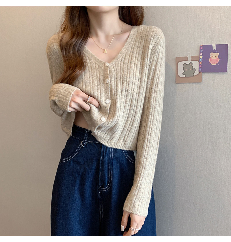 秋冬v領打底衫女內搭設計感小衆針織衫法式別致短款上衣外套開衫