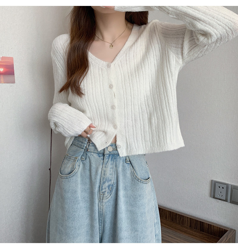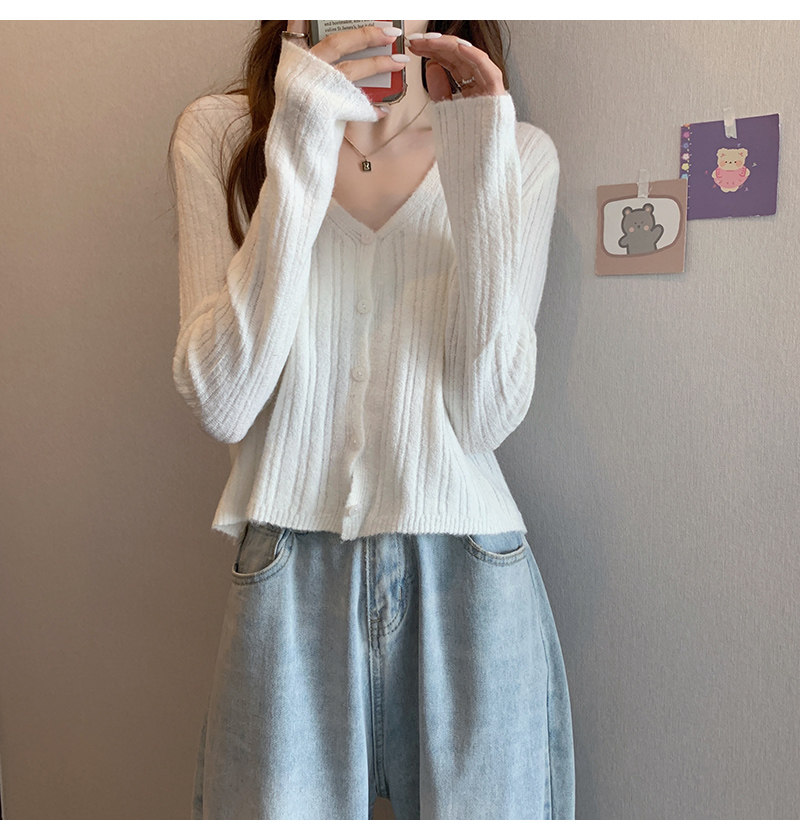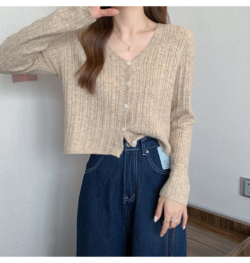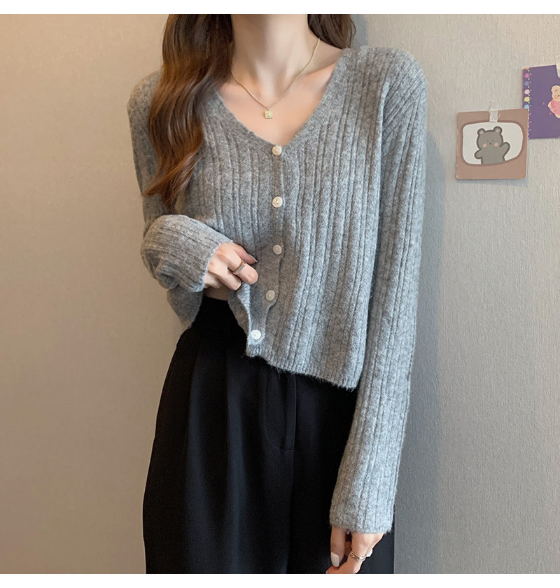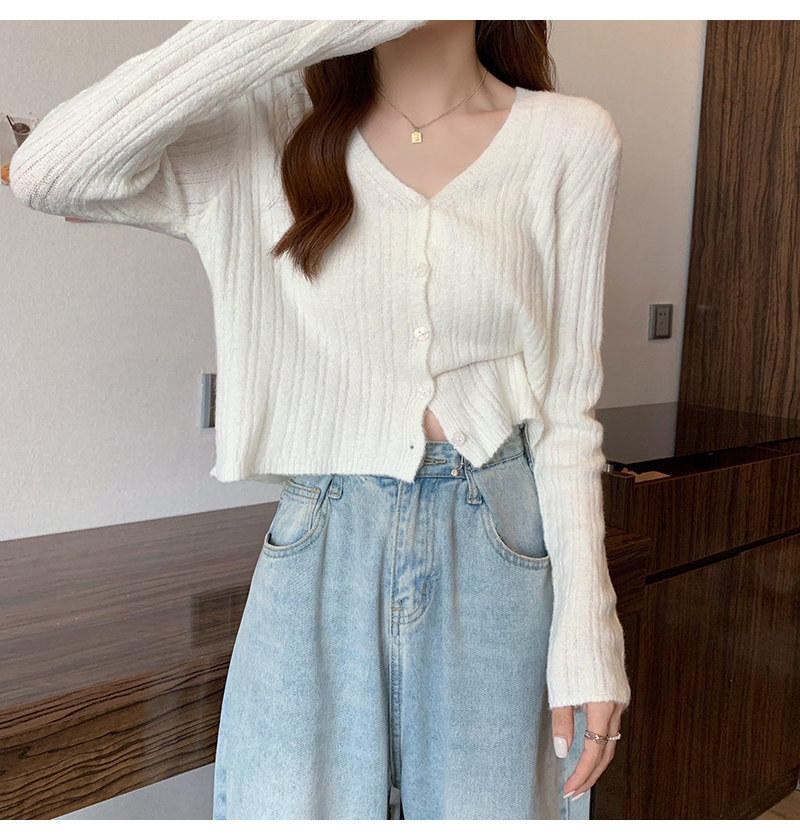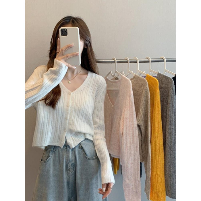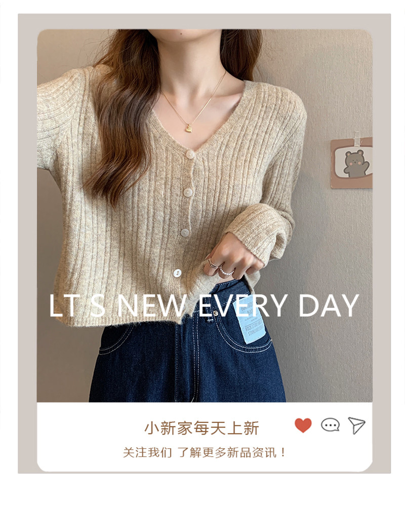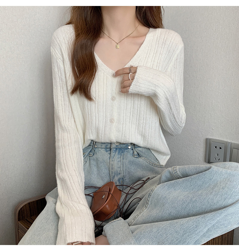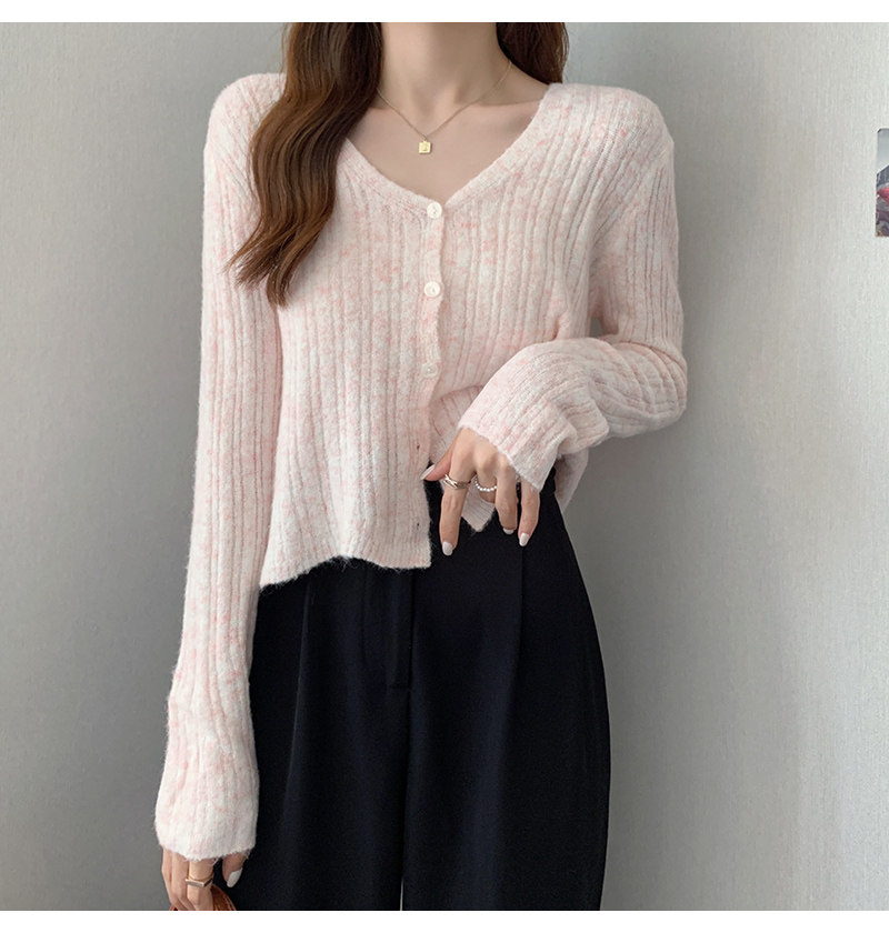 秋冬v領打底衫女內搭設計感小衆針織衫法式別致短款上衣外套開衫