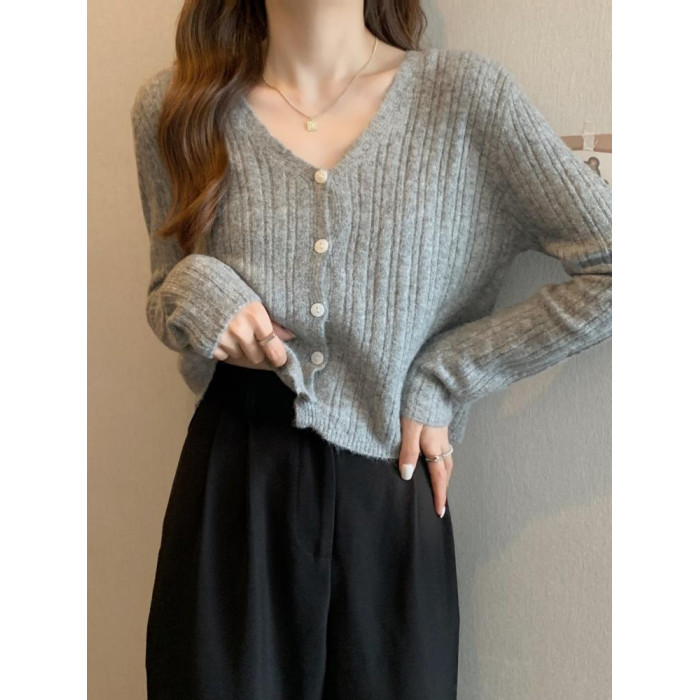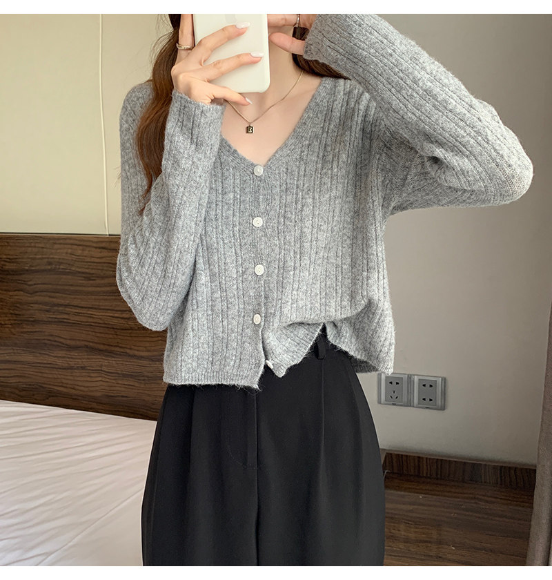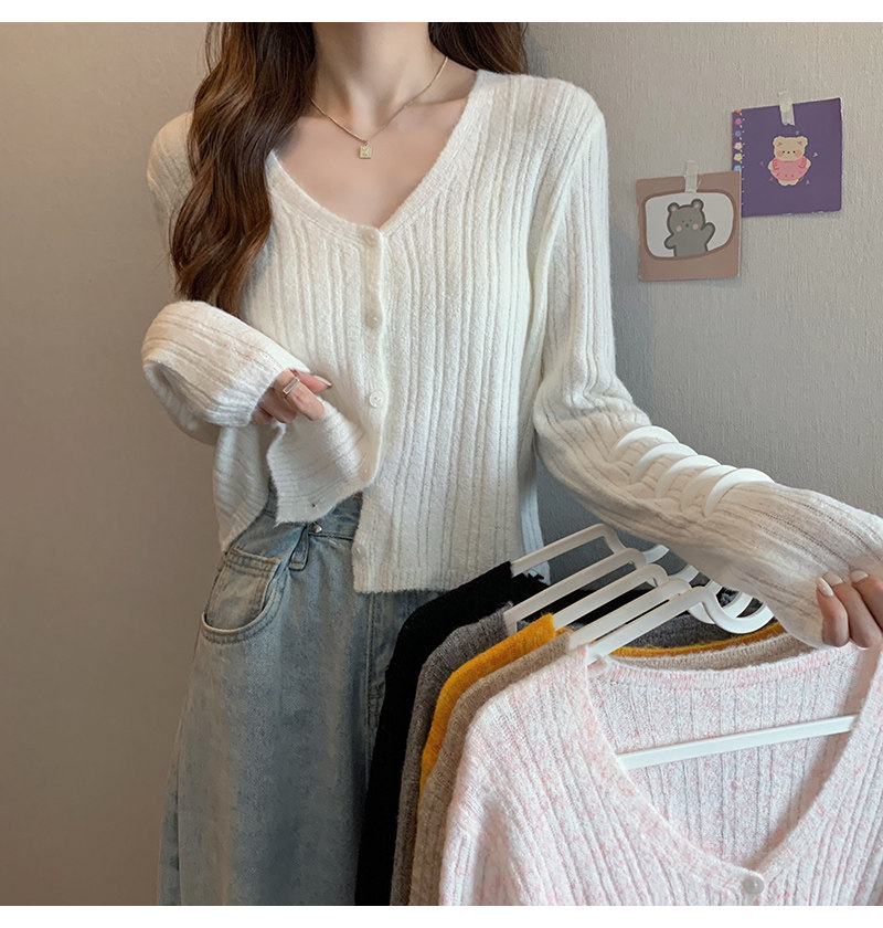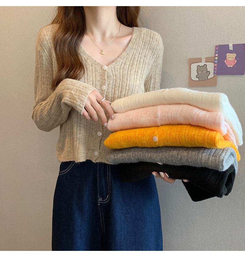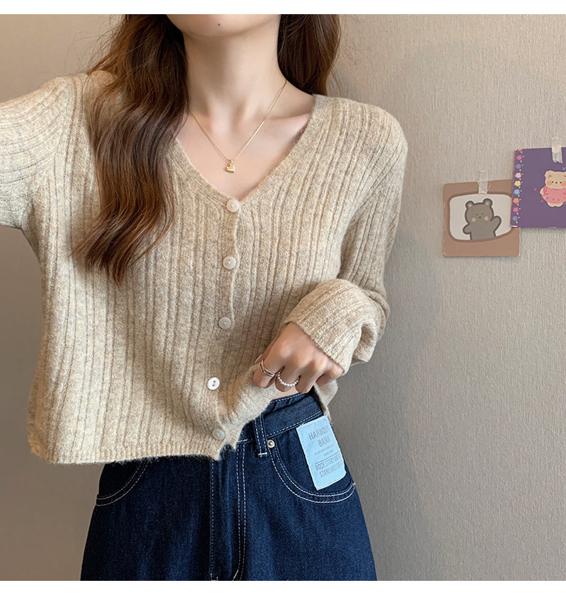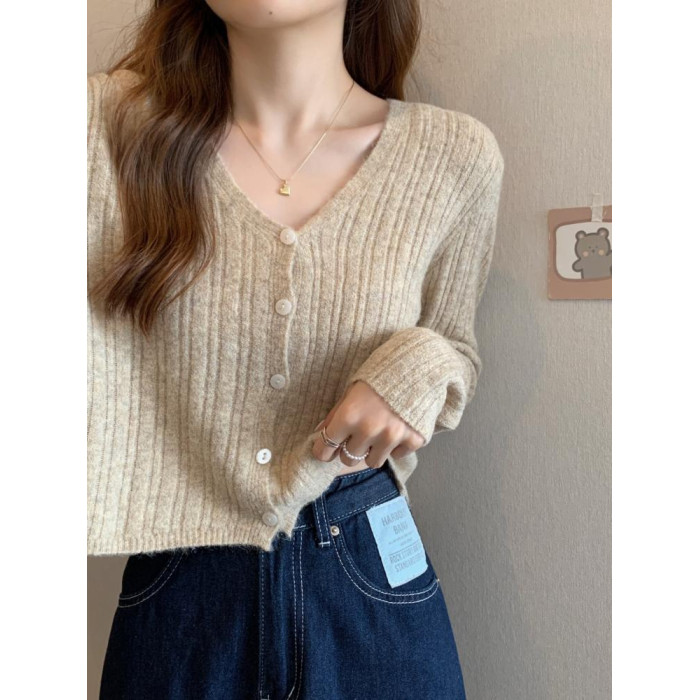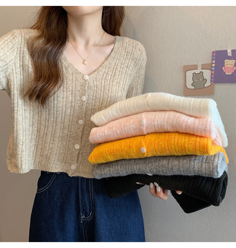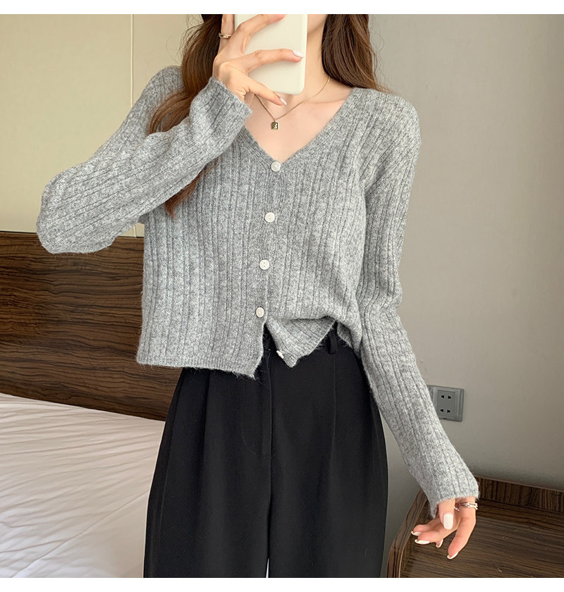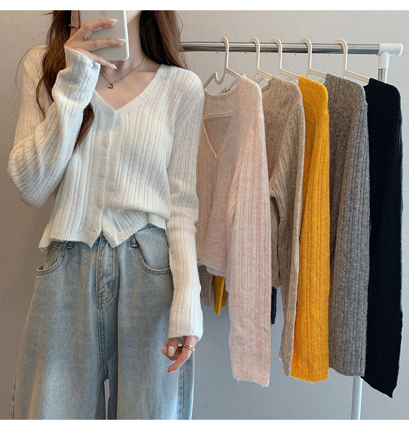 秋冬v領打底衫女內搭設計感小衆針織衫法式別致短款上衣外套開衫