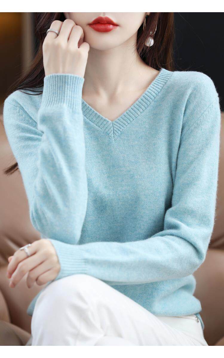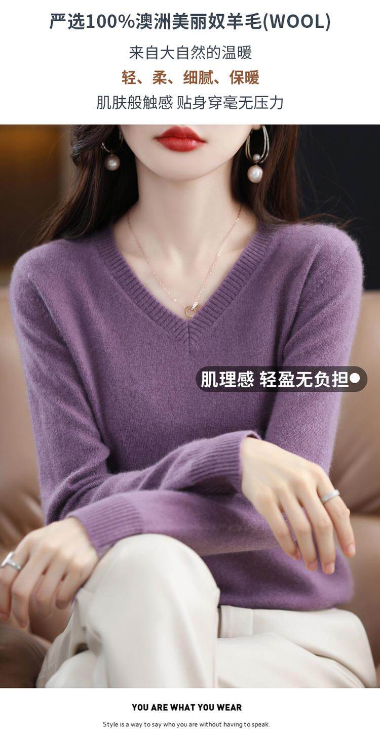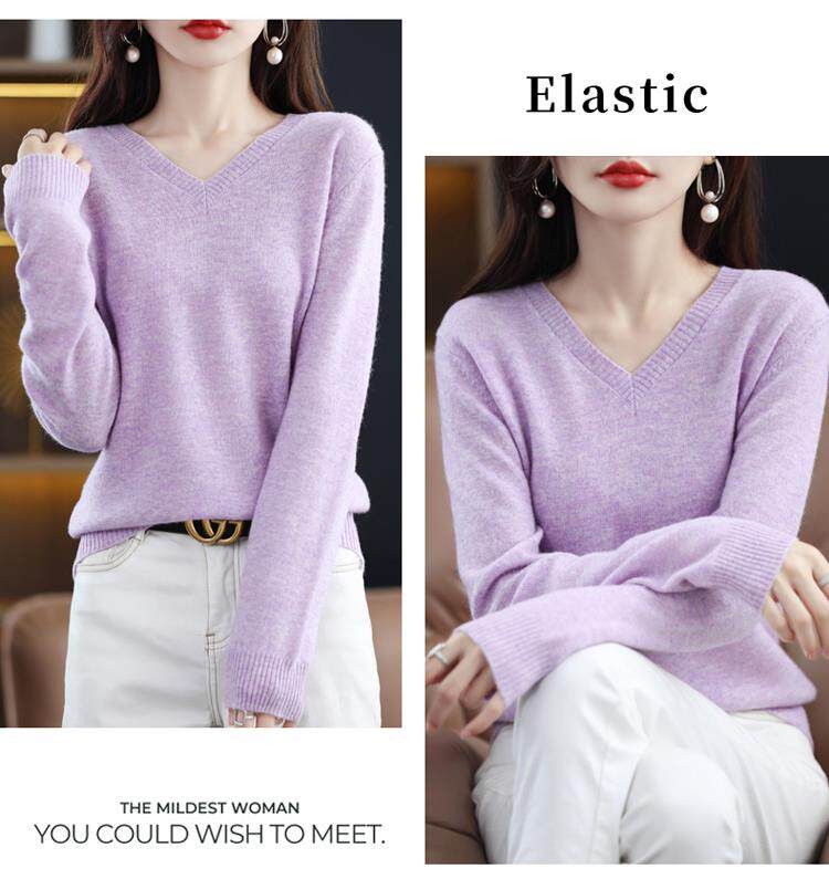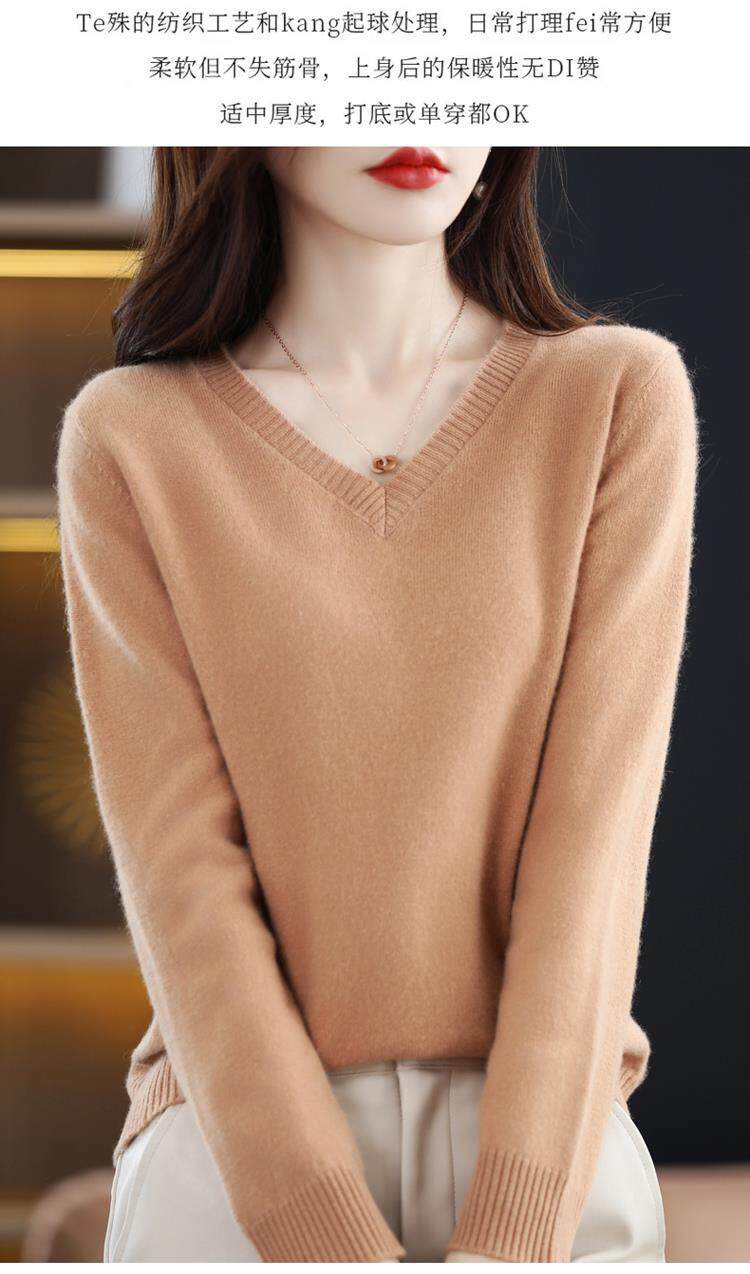 羊毛衫女2025冬季新款V領毛衣寬松套頭長袖純色羊絨針織打底衫
