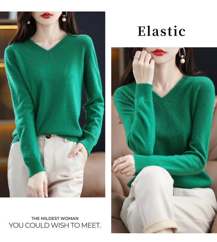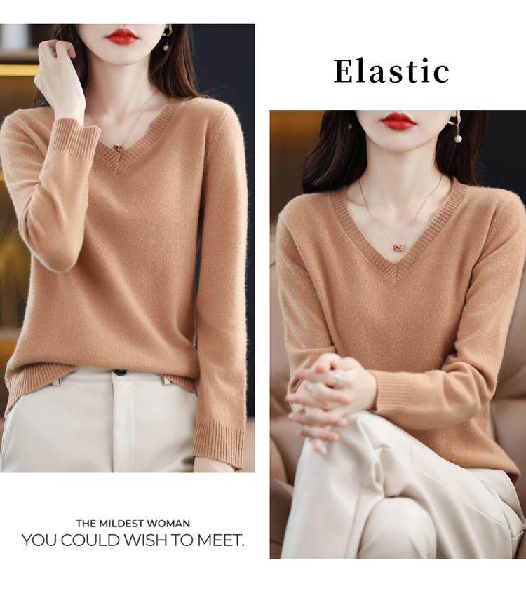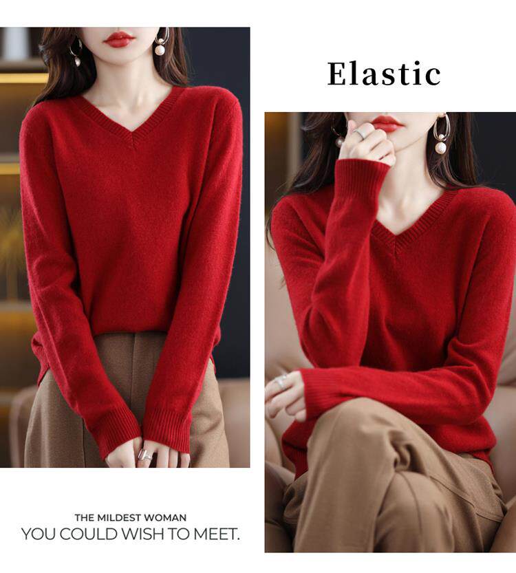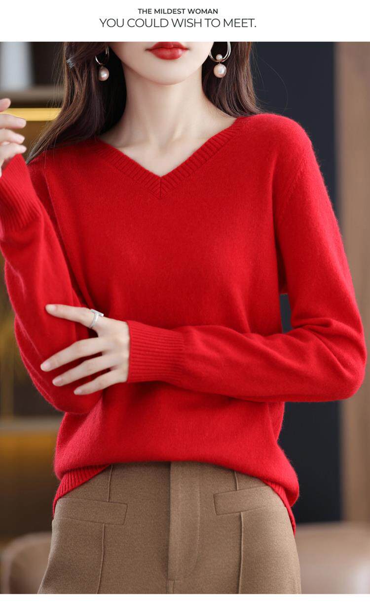 羊毛衫女2025冬季新款V領毛衣寬松套頭長袖純色羊絨針織打底衫