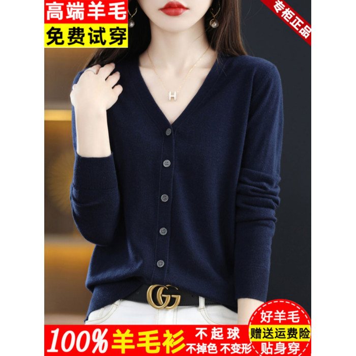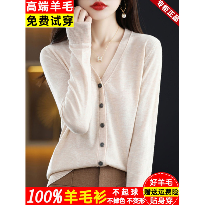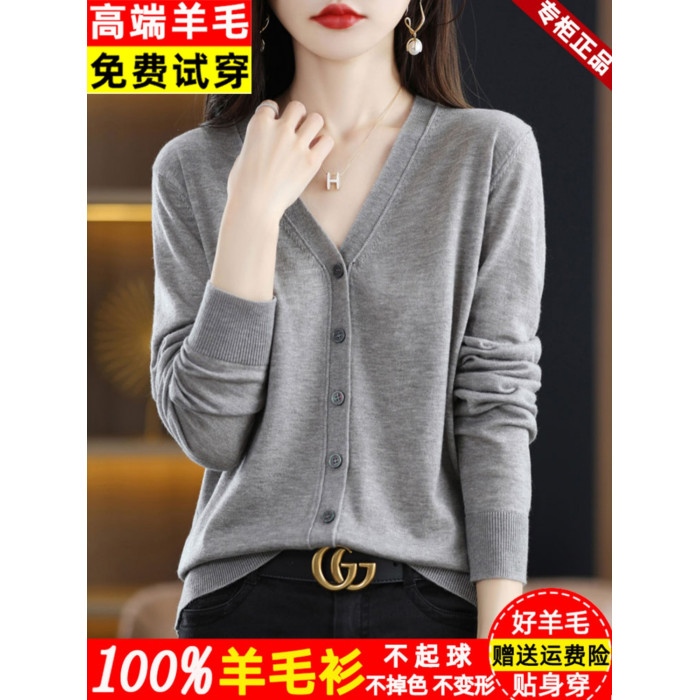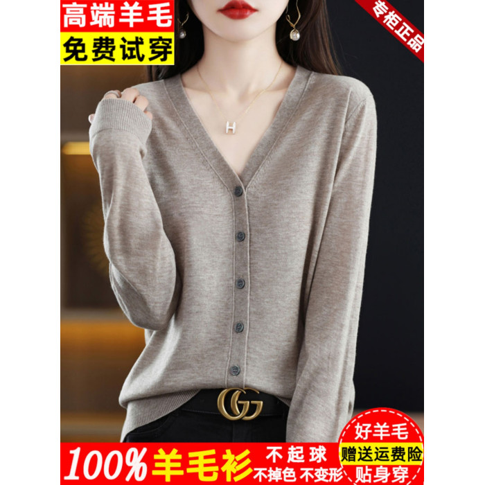 恒源祥集團彩羊新款外搭羊毛針織開衫短外套女寬松薄款秋季上衣女